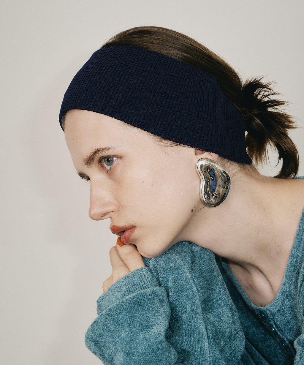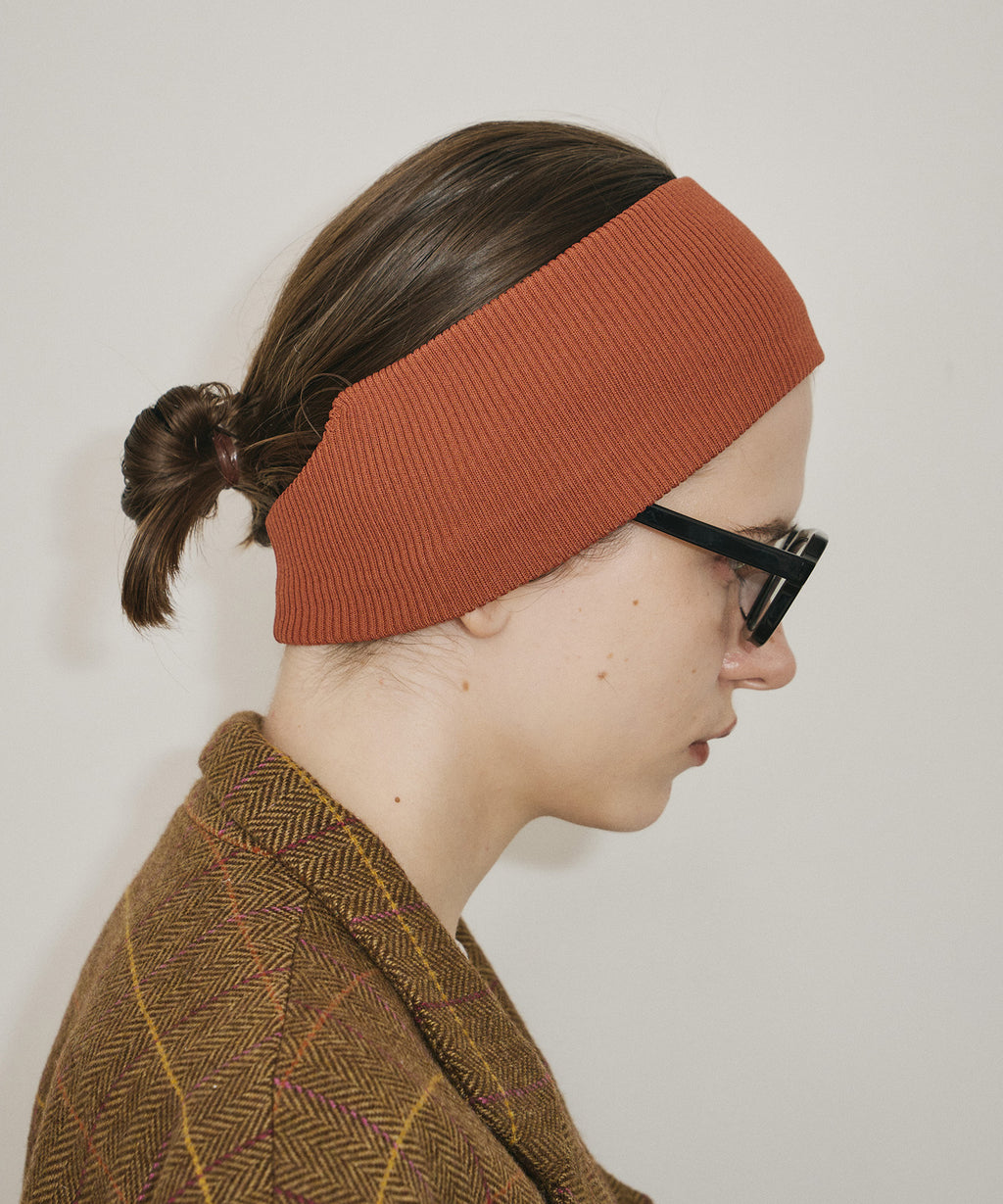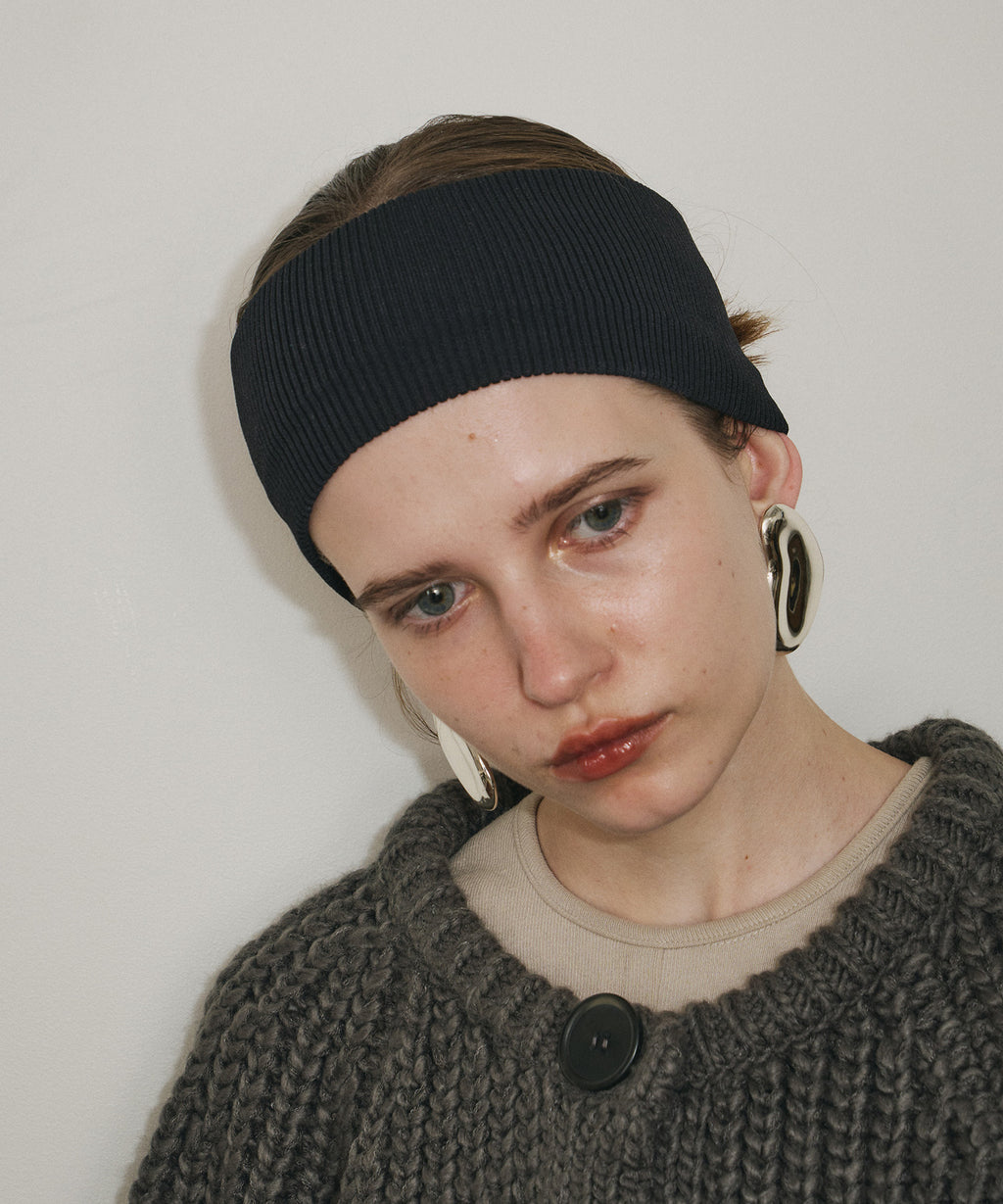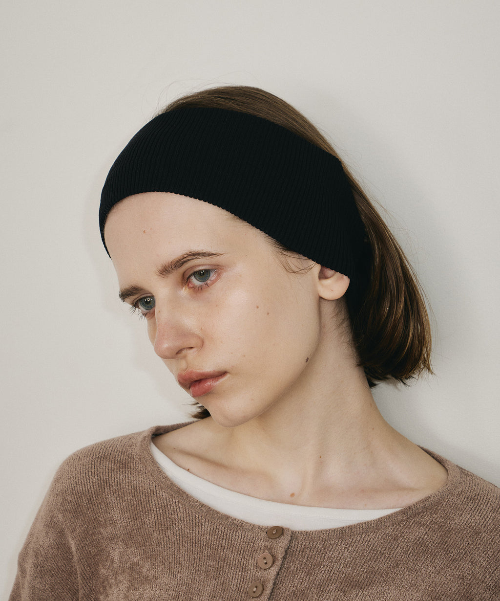 頭の丸みにフィットする、ニット素材のヘアバンド。