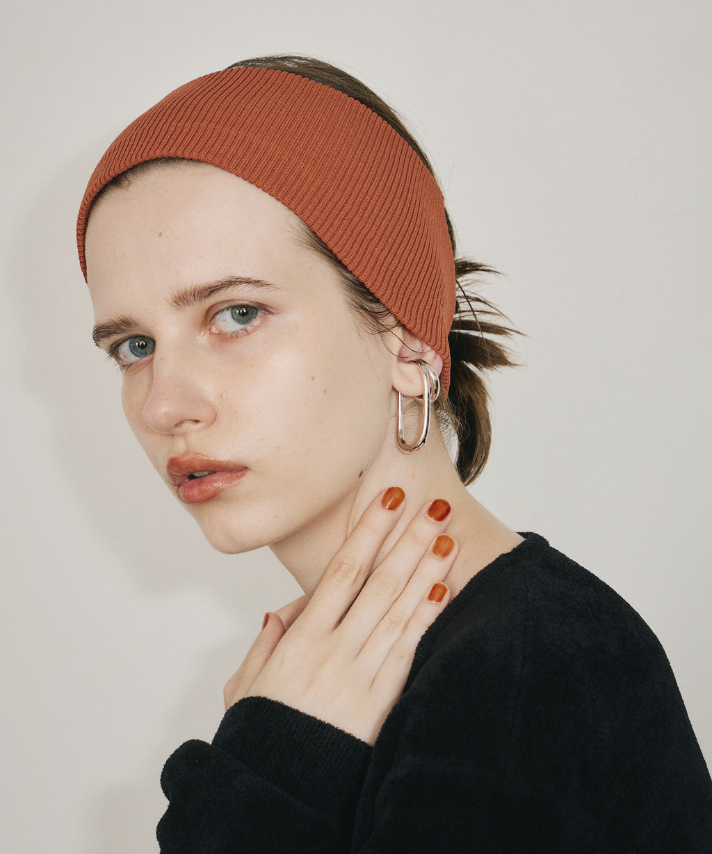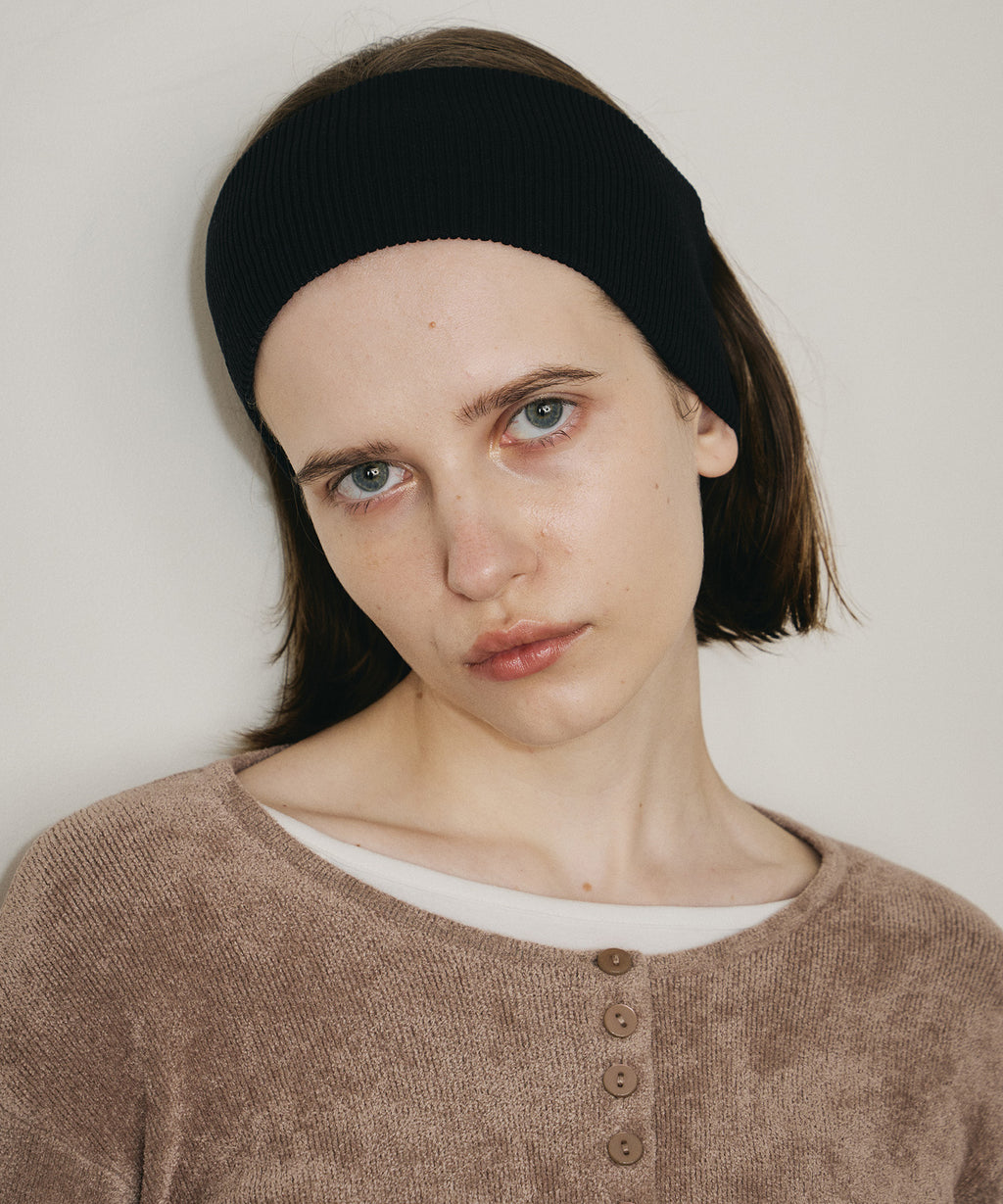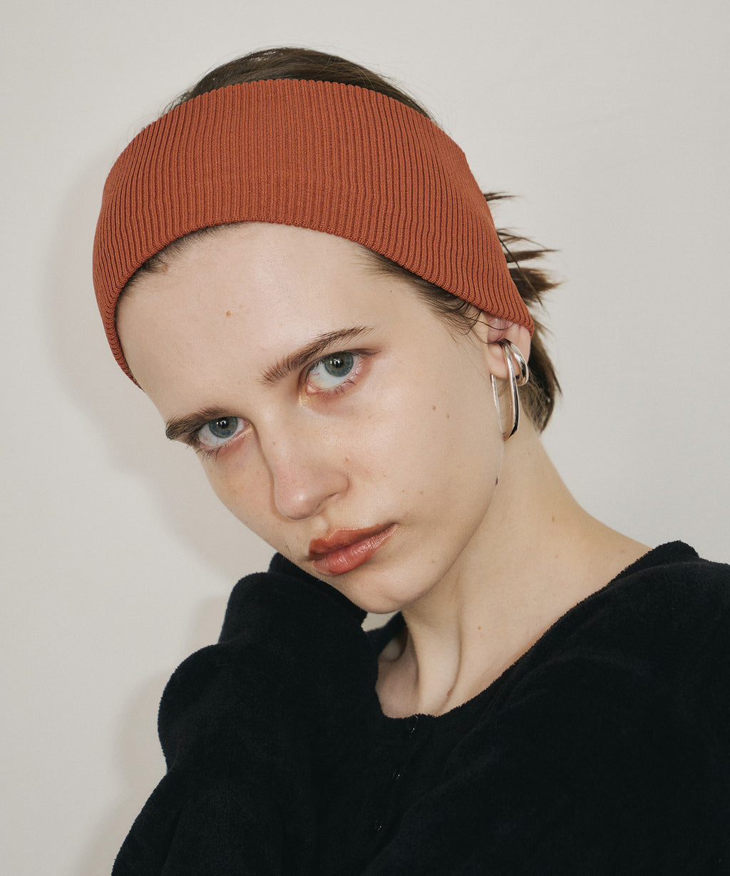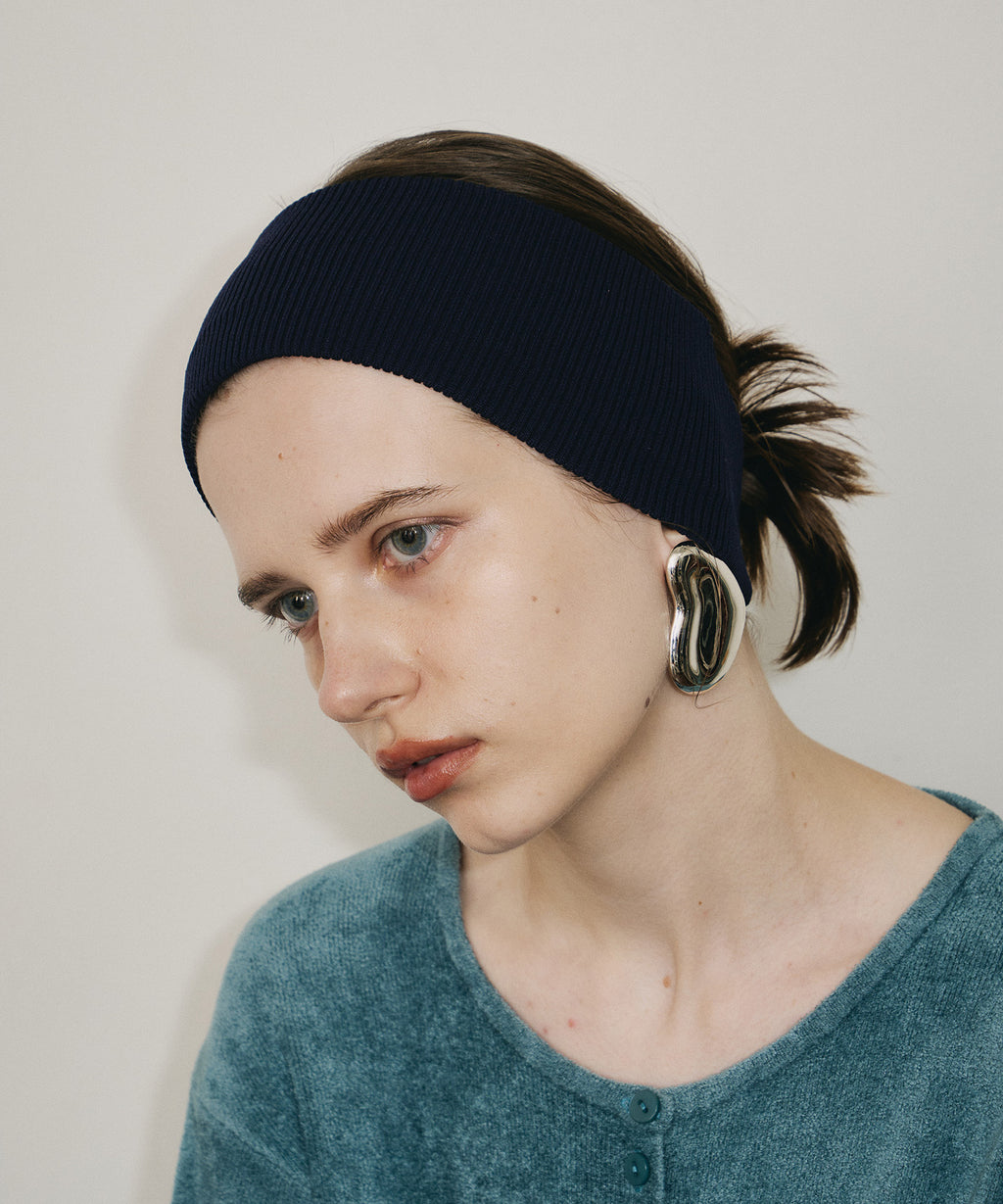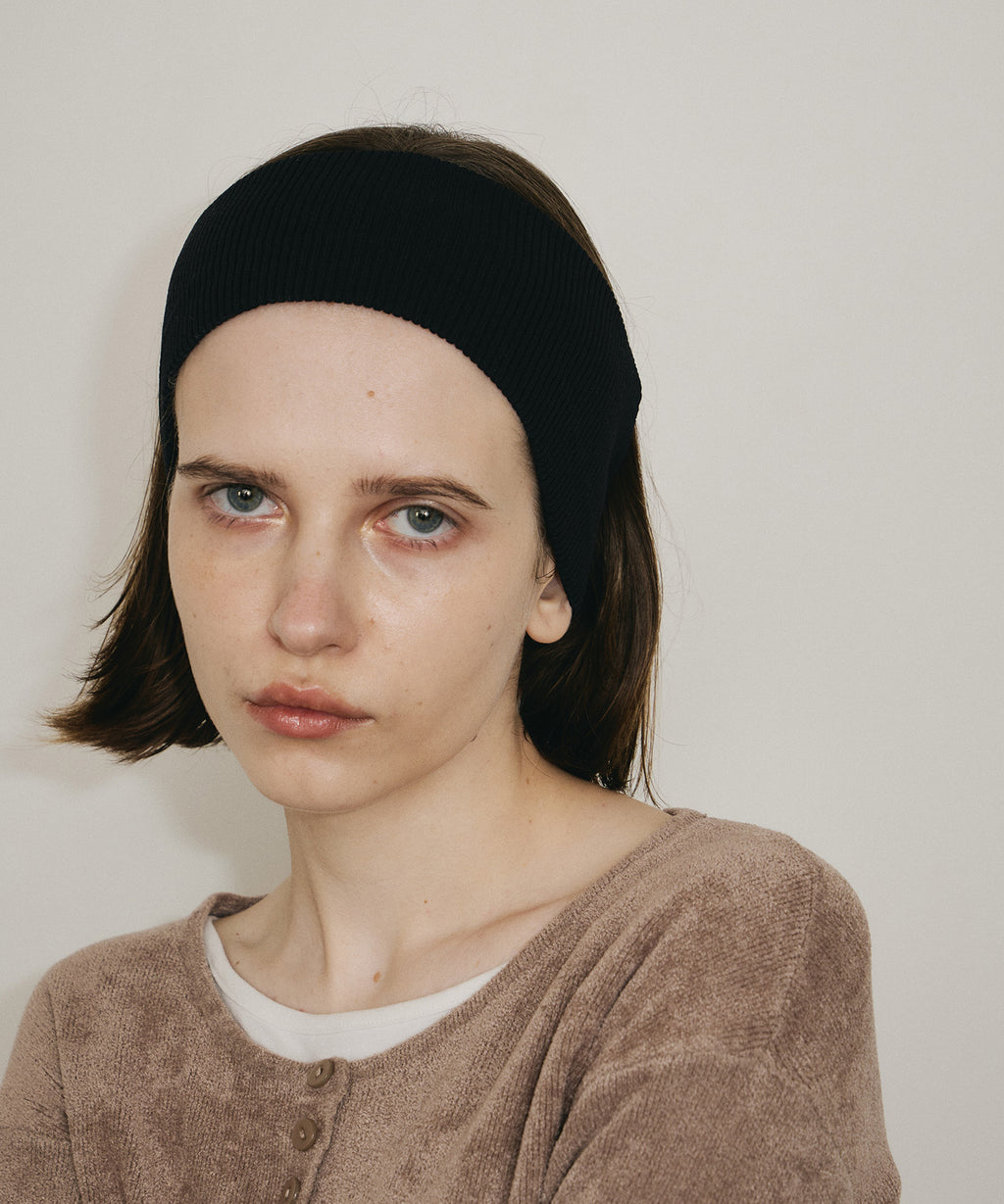 頭の丸みにフィットする、ニット素材のヘアバンド。
