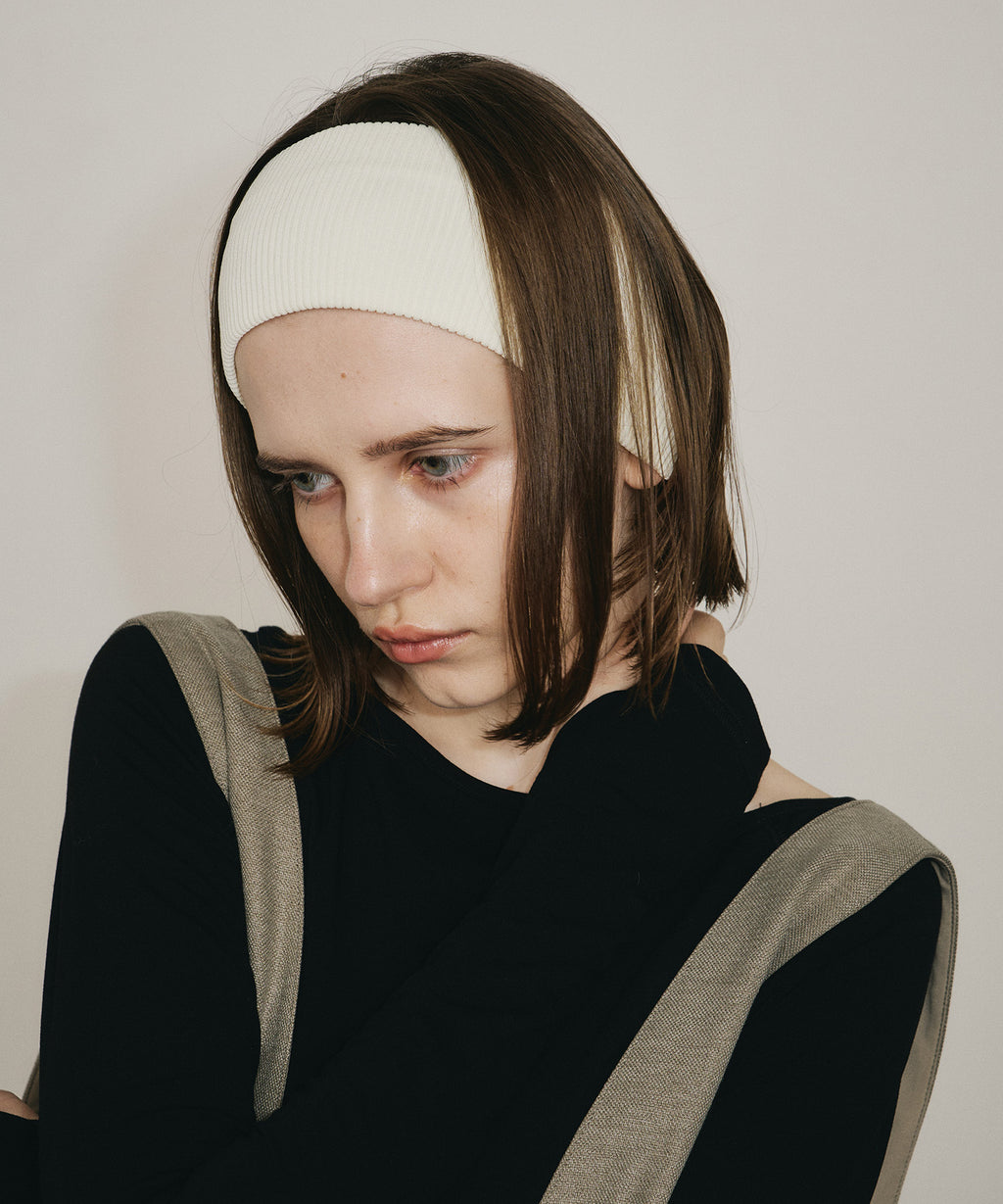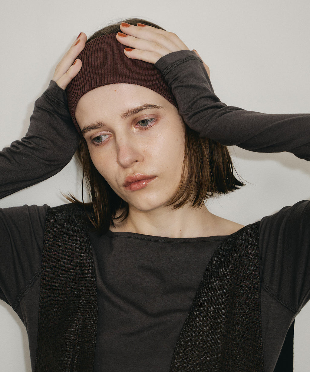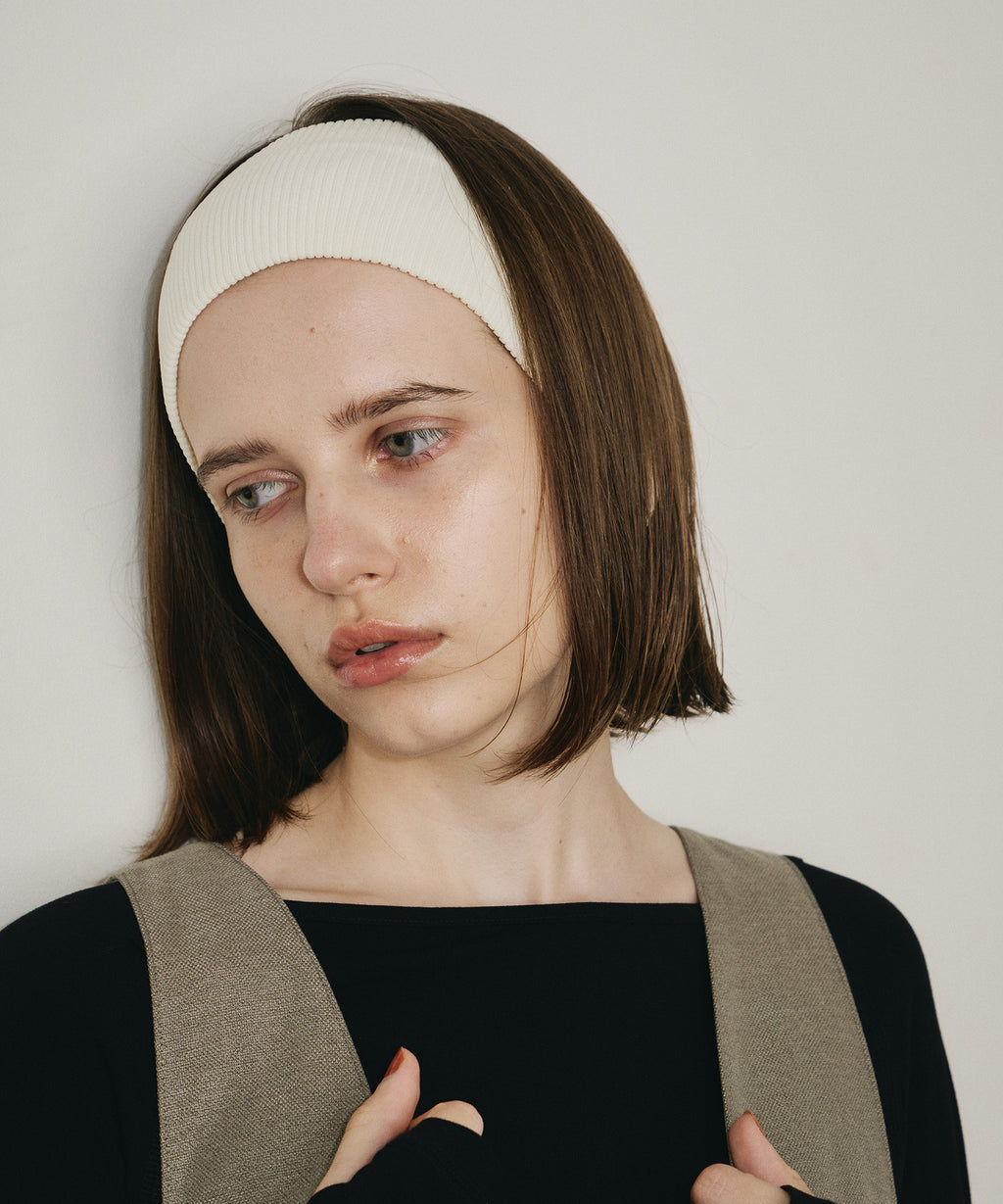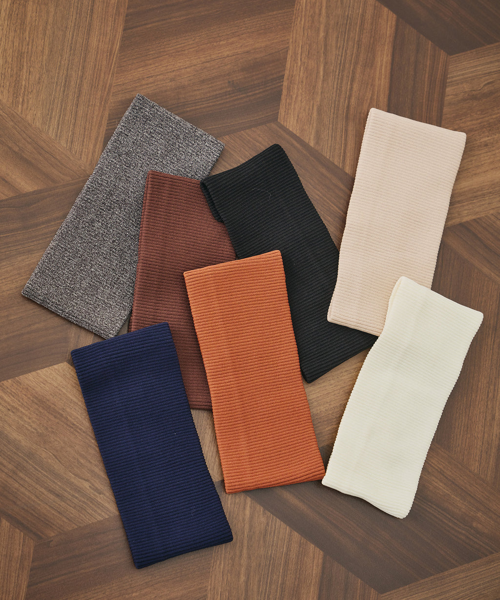 頭の丸みにフィットする、ニット素材のヘアバンド。
