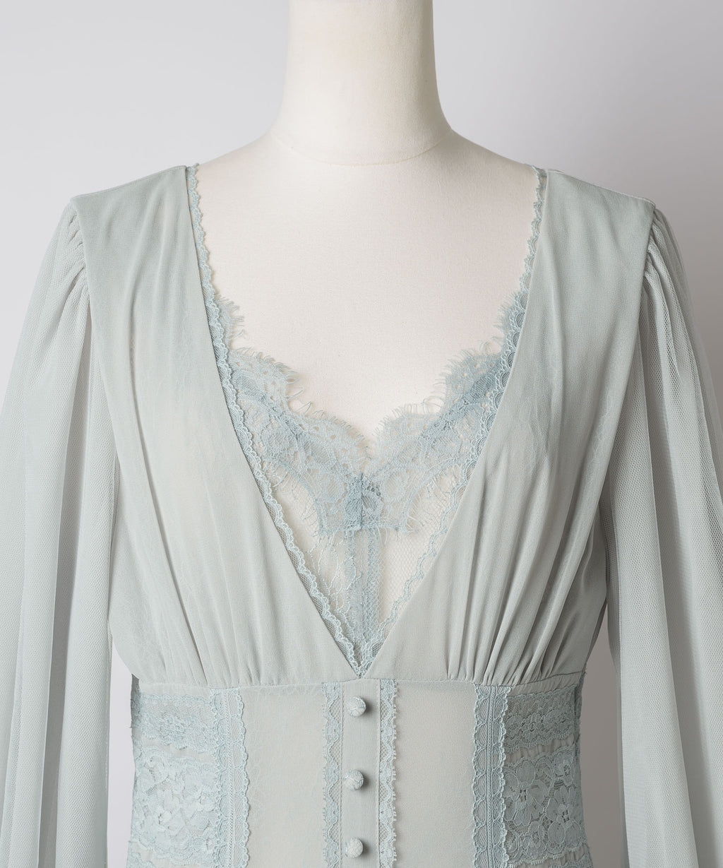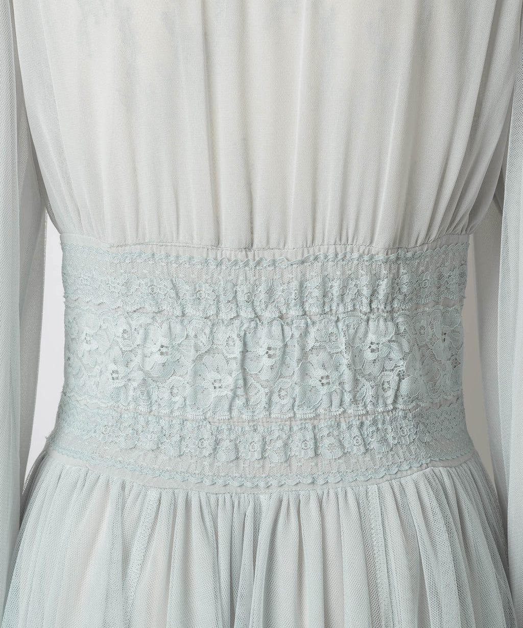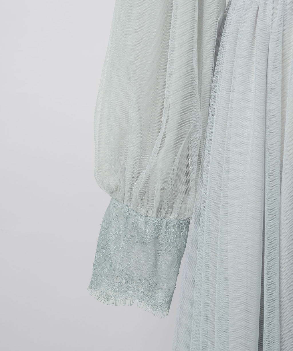 スカート部分はシフォンの上に二枚のチュールを重ね、軽やかな着心地と見え方に。