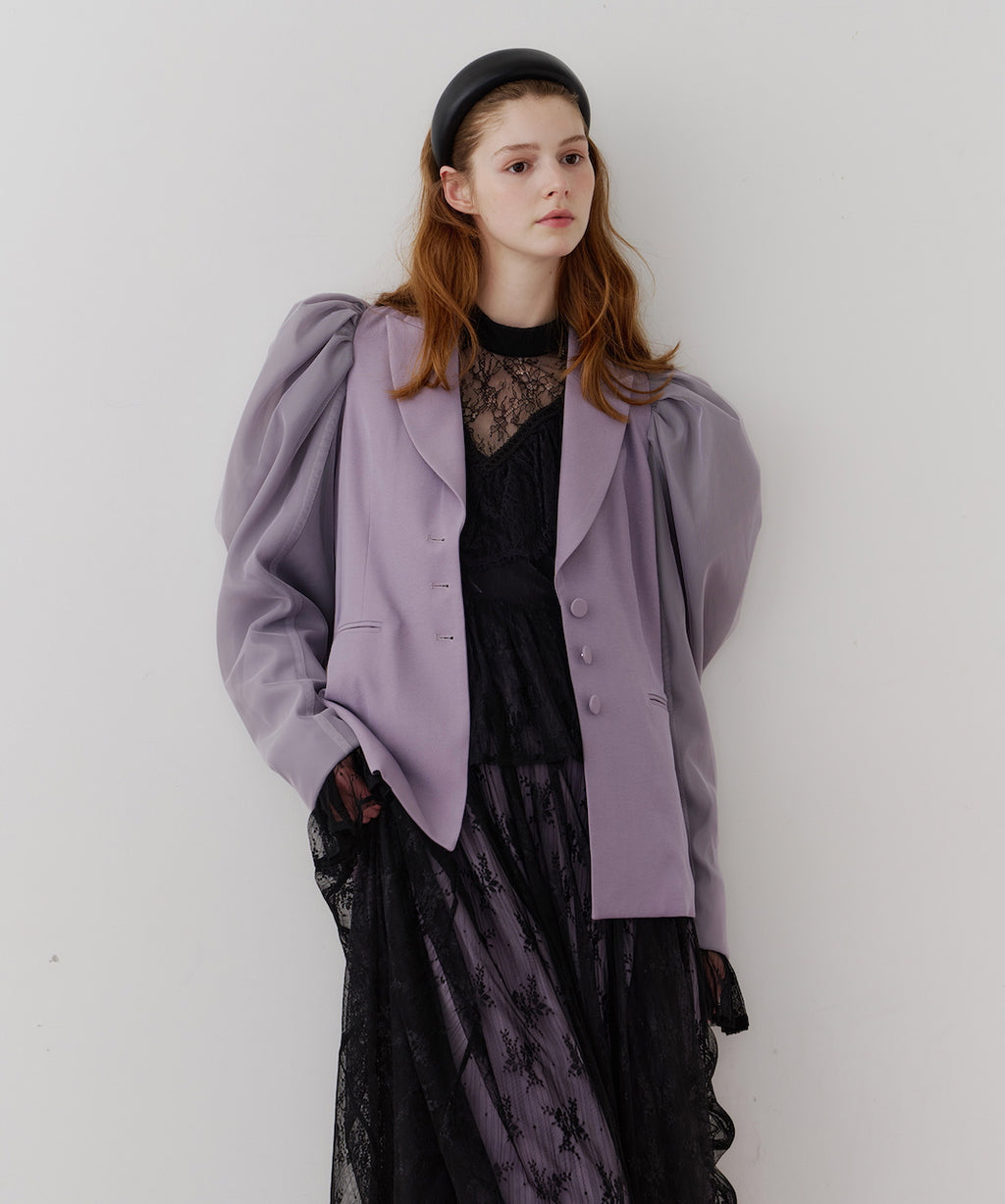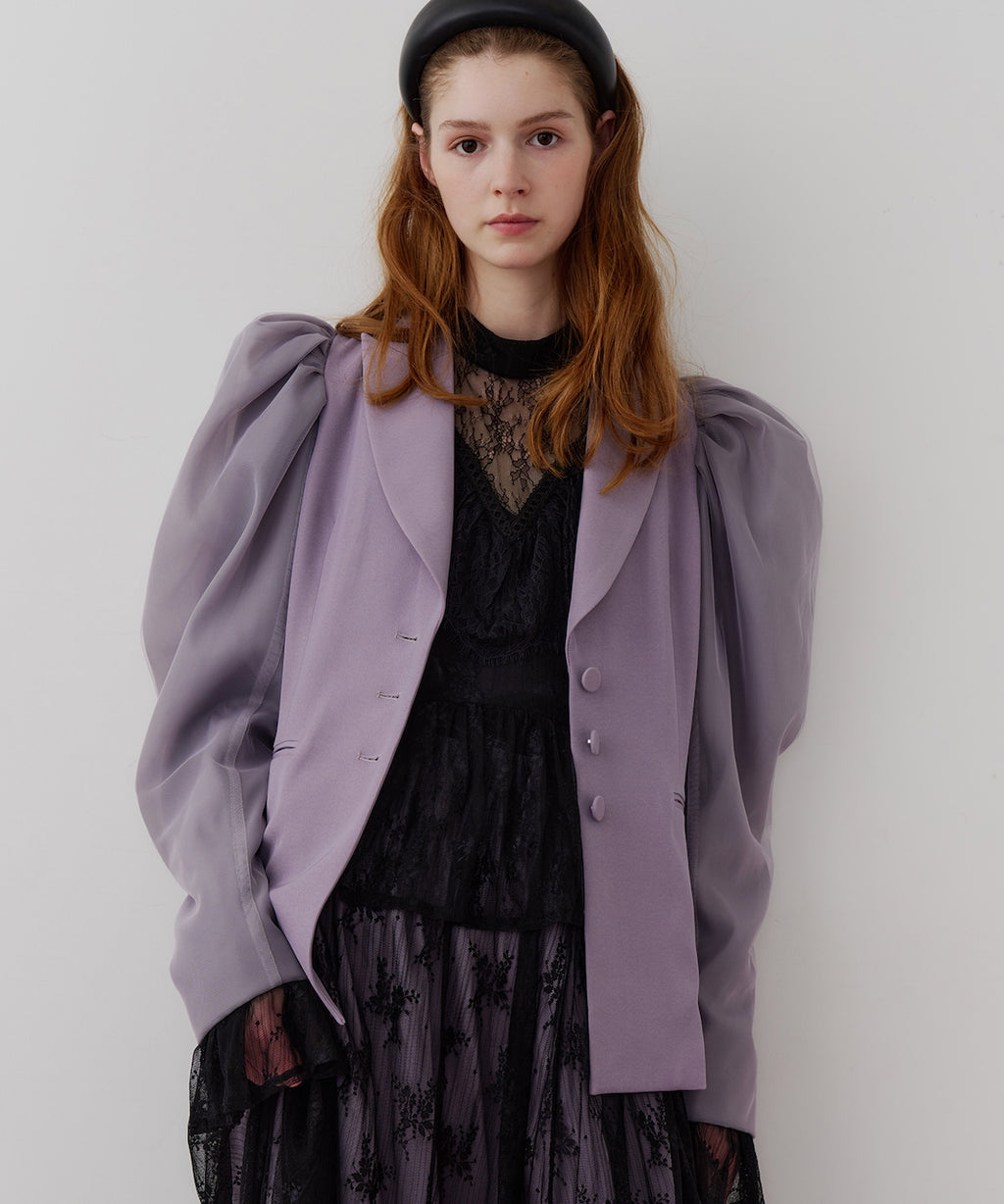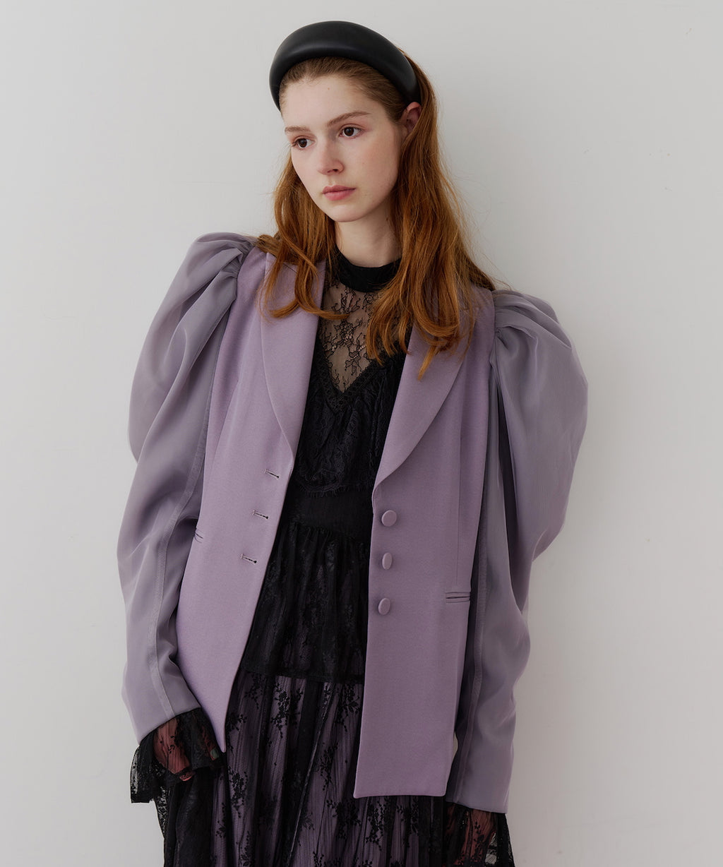 手元にかけて細身になり、メリハリのあるアームシルエットがポイント。ボリュームのある袖に相反して、