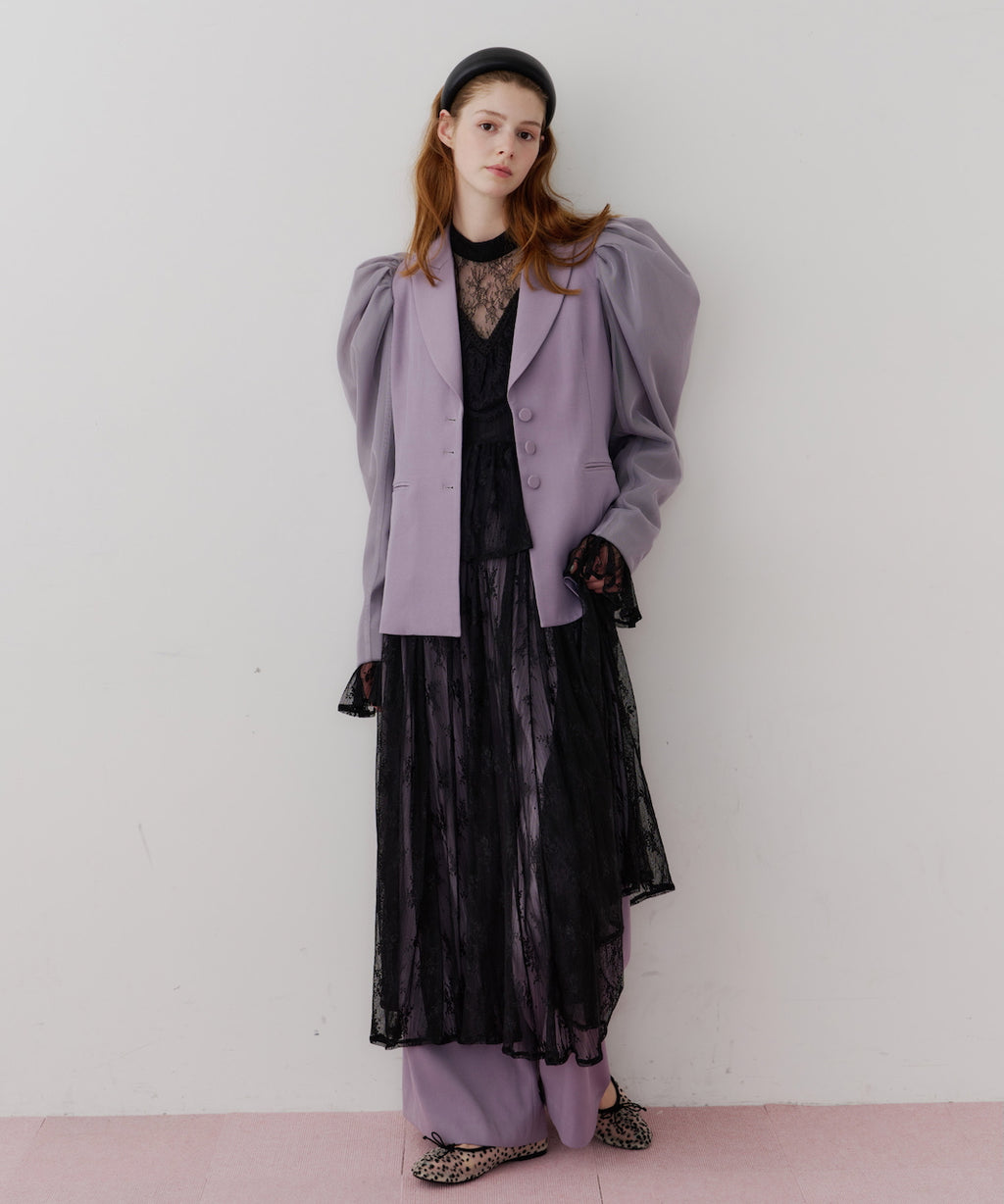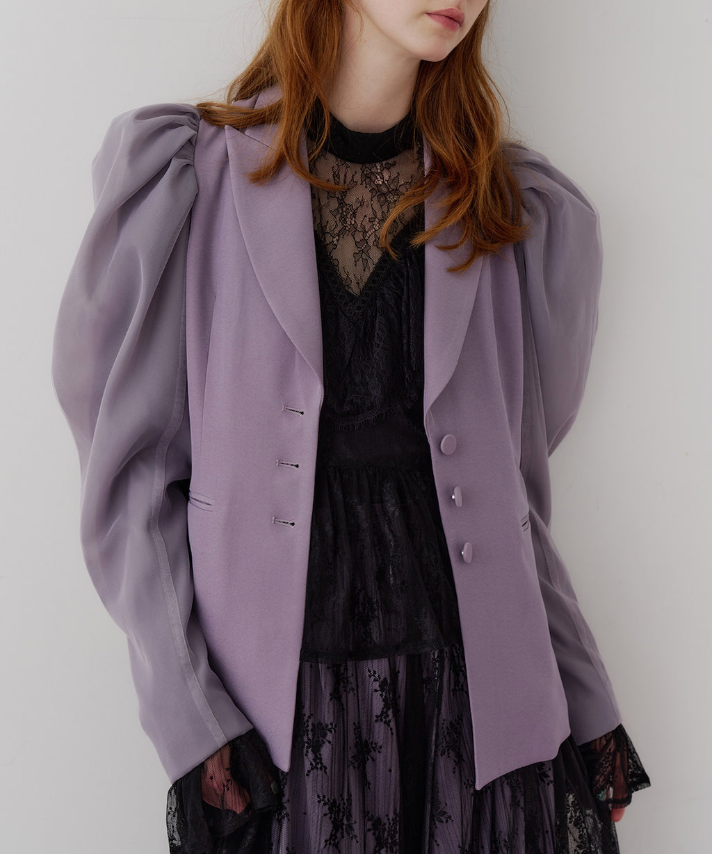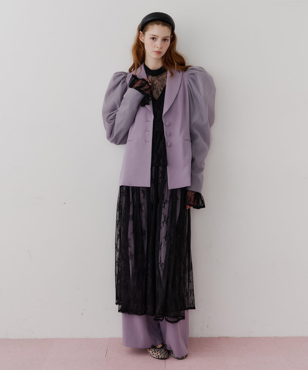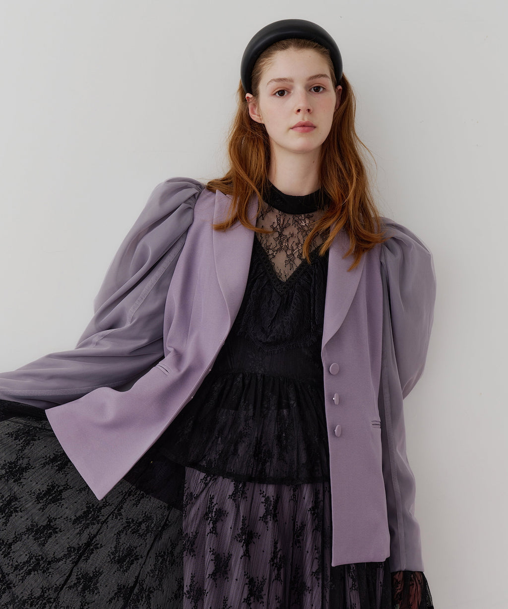手元にかけて細身になり、メリハリのあるアームシルエットがポイント。ボリュームのある袖に相反して、