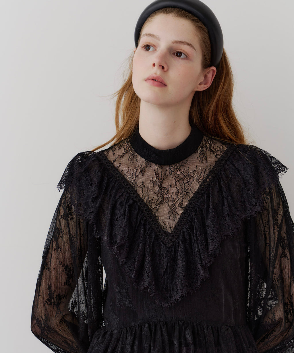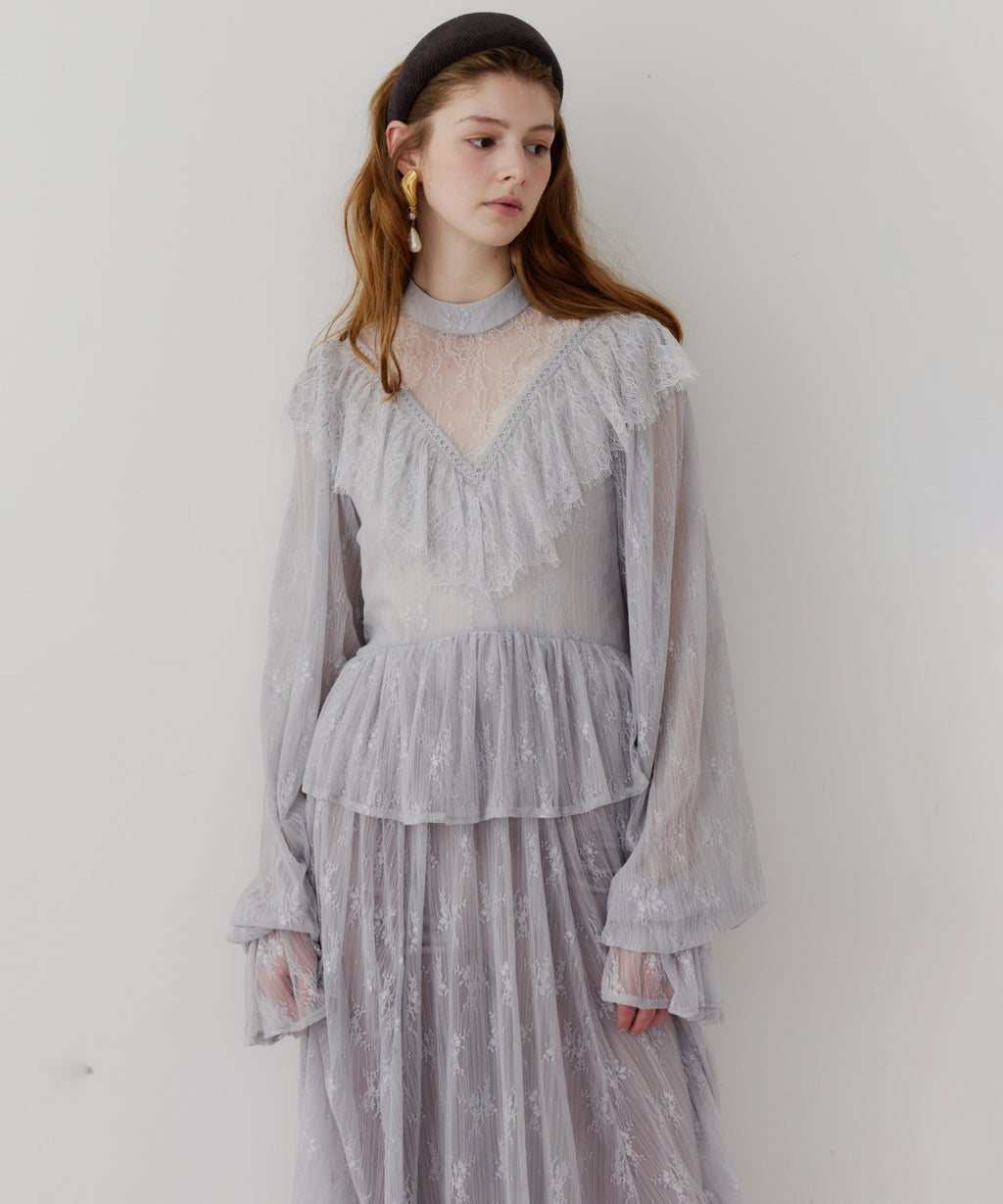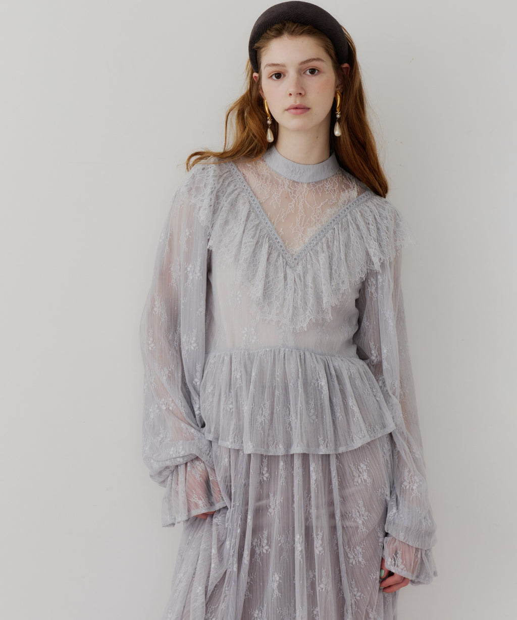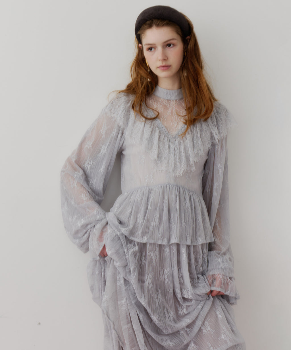 身頃から袖まで全てレースで仕立て、軽やかな着心地ながら存在感のある一着に仕上げました。