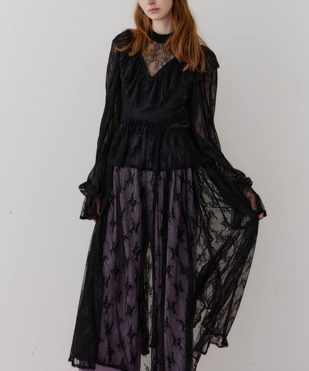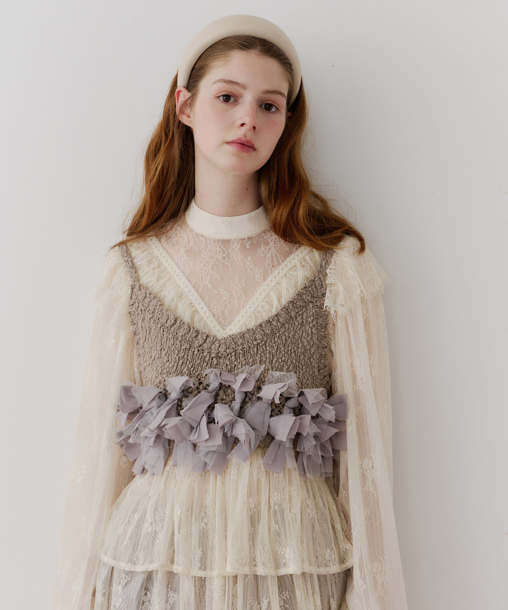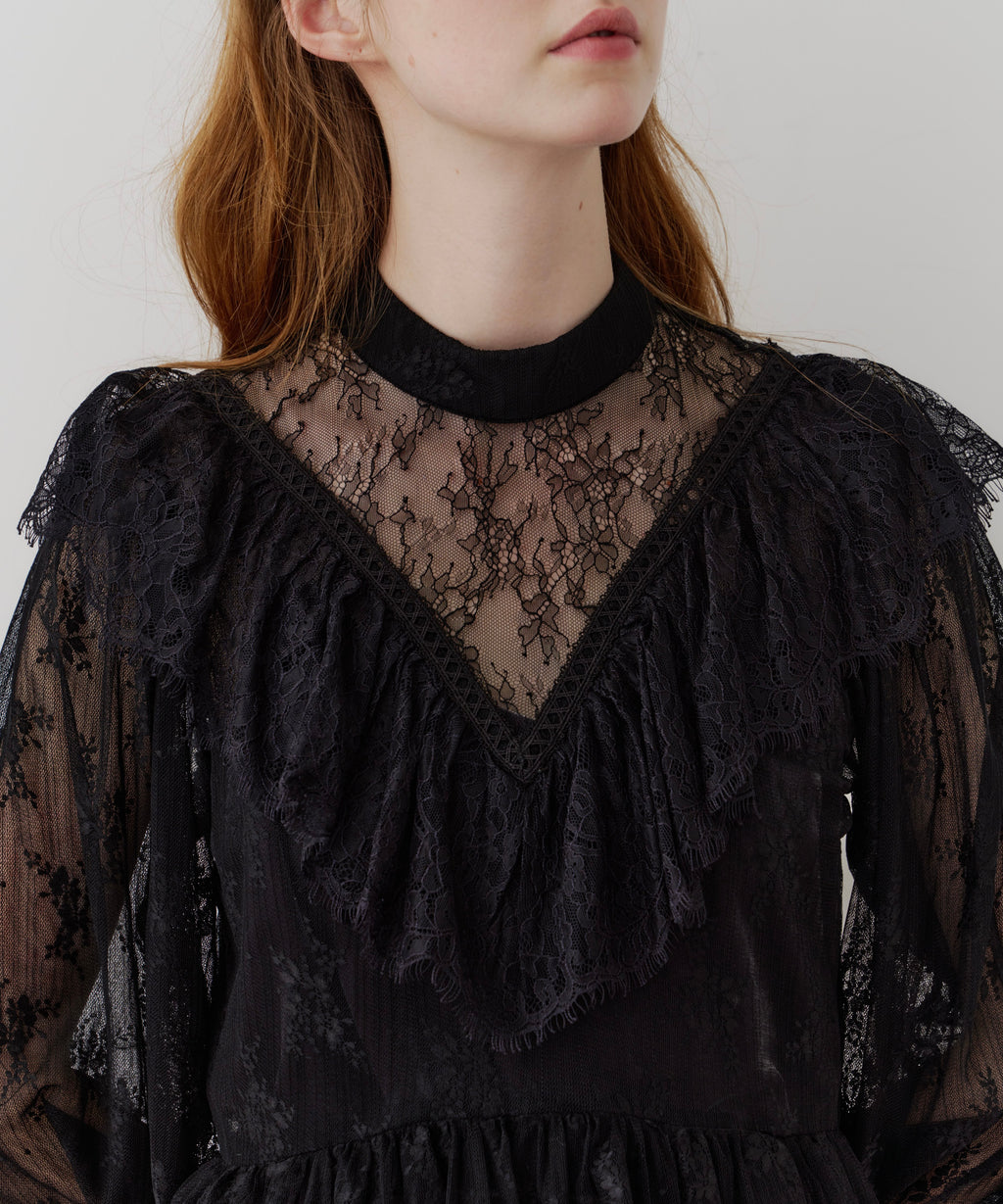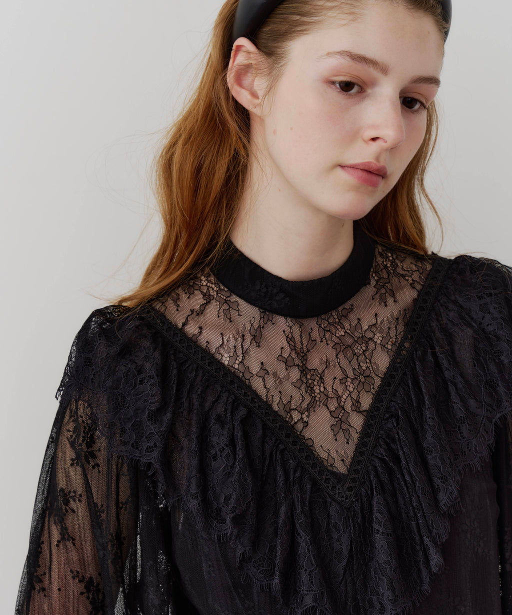 身頃から袖まで全てレースで仕立て、軽やかな着心地ながら存在感のある一着に仕上げました。