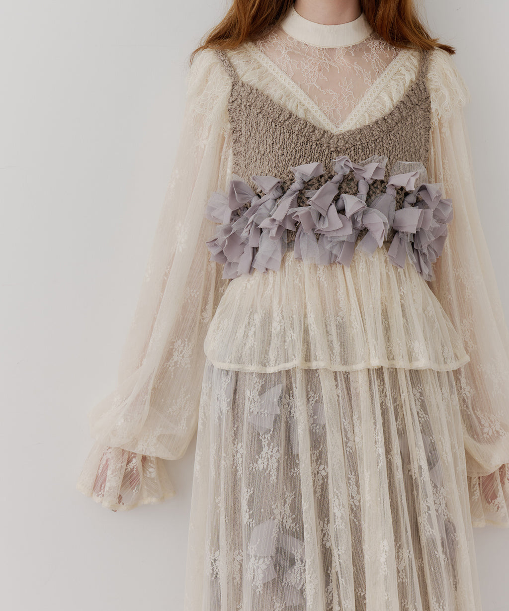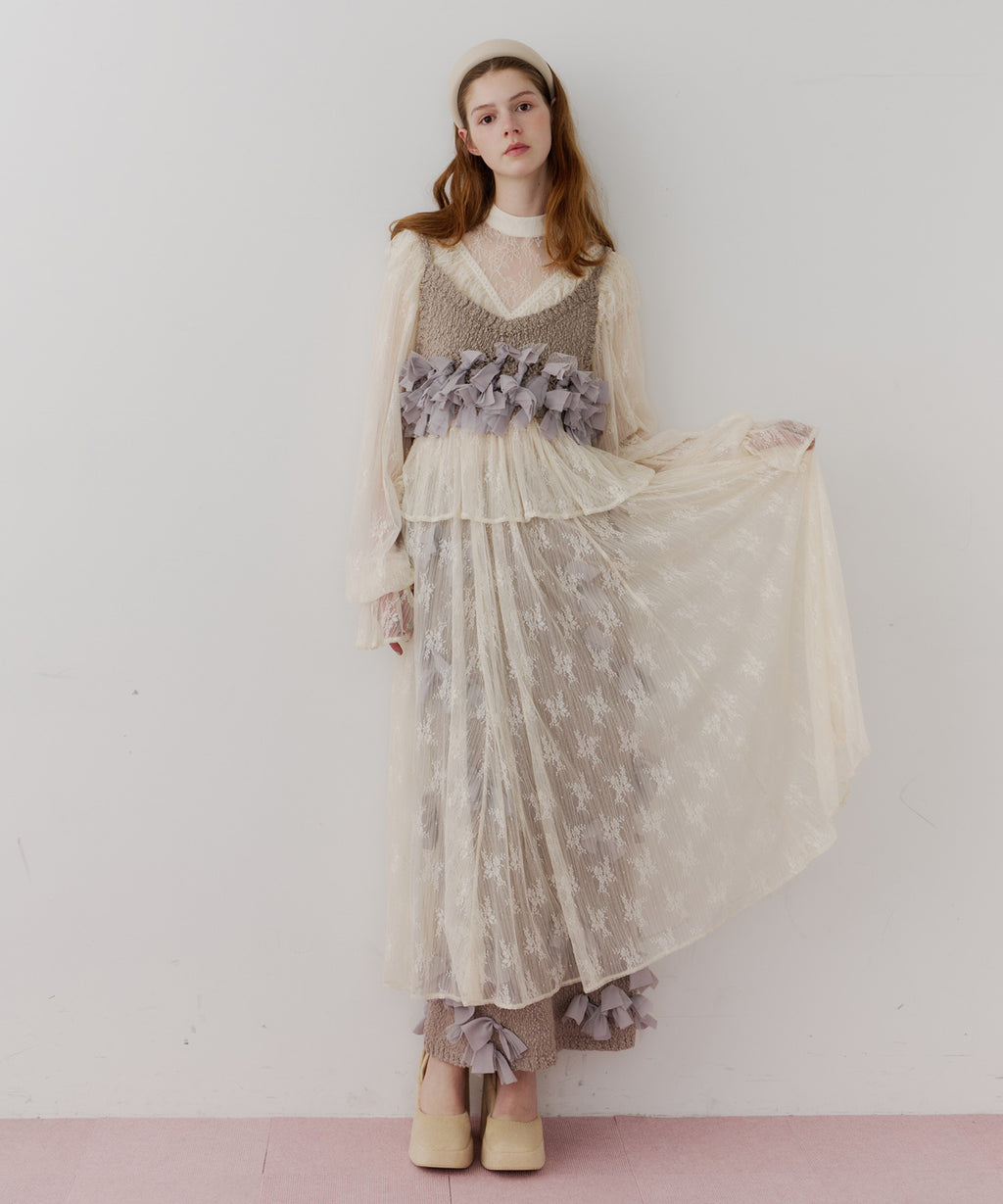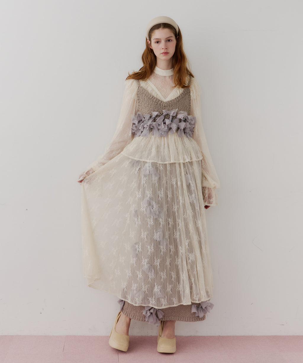 ヴィンテージムード漂う、華やかなフラワーレースドレス。