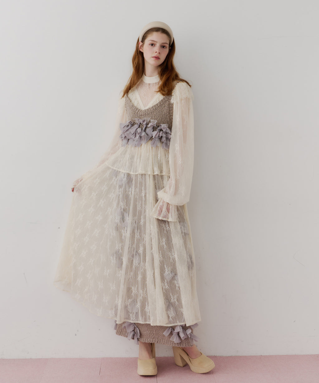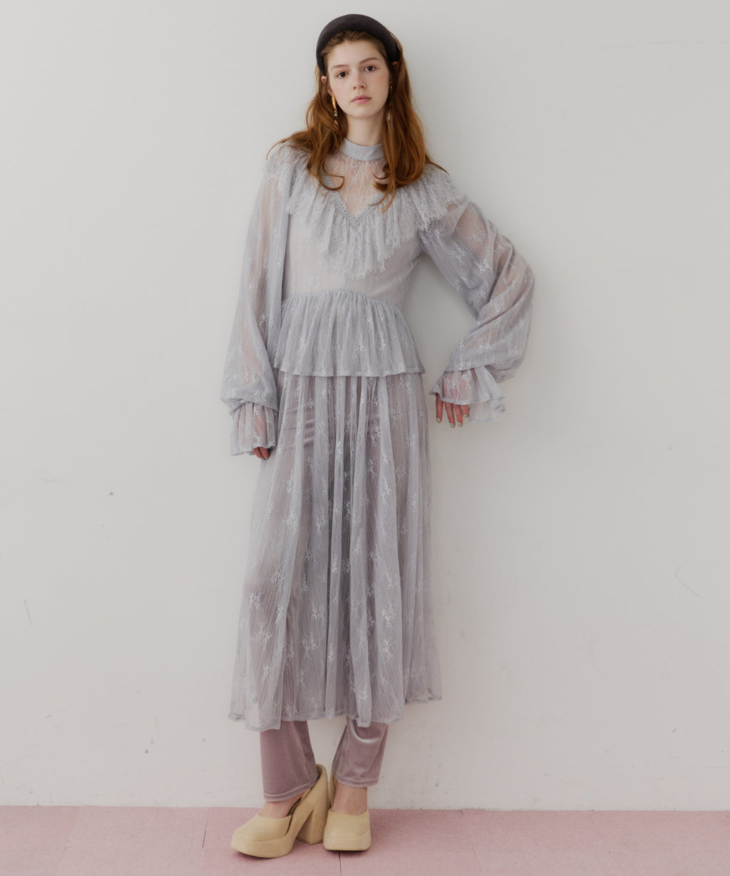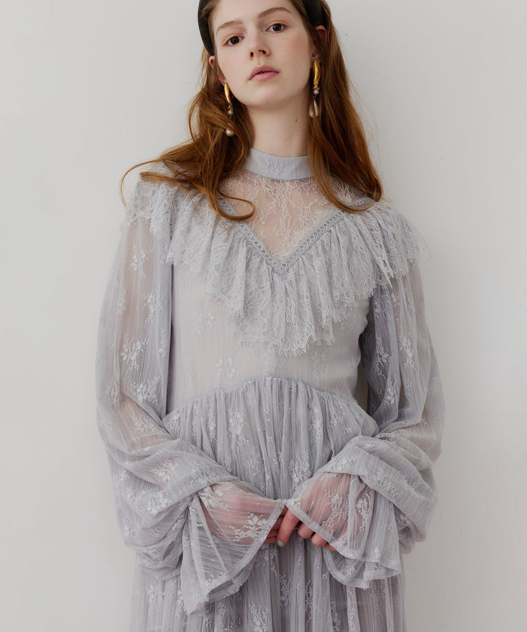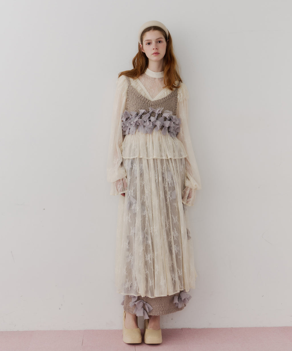 ヴィンテージムード漂う、華やかなフラワーレースドレス。