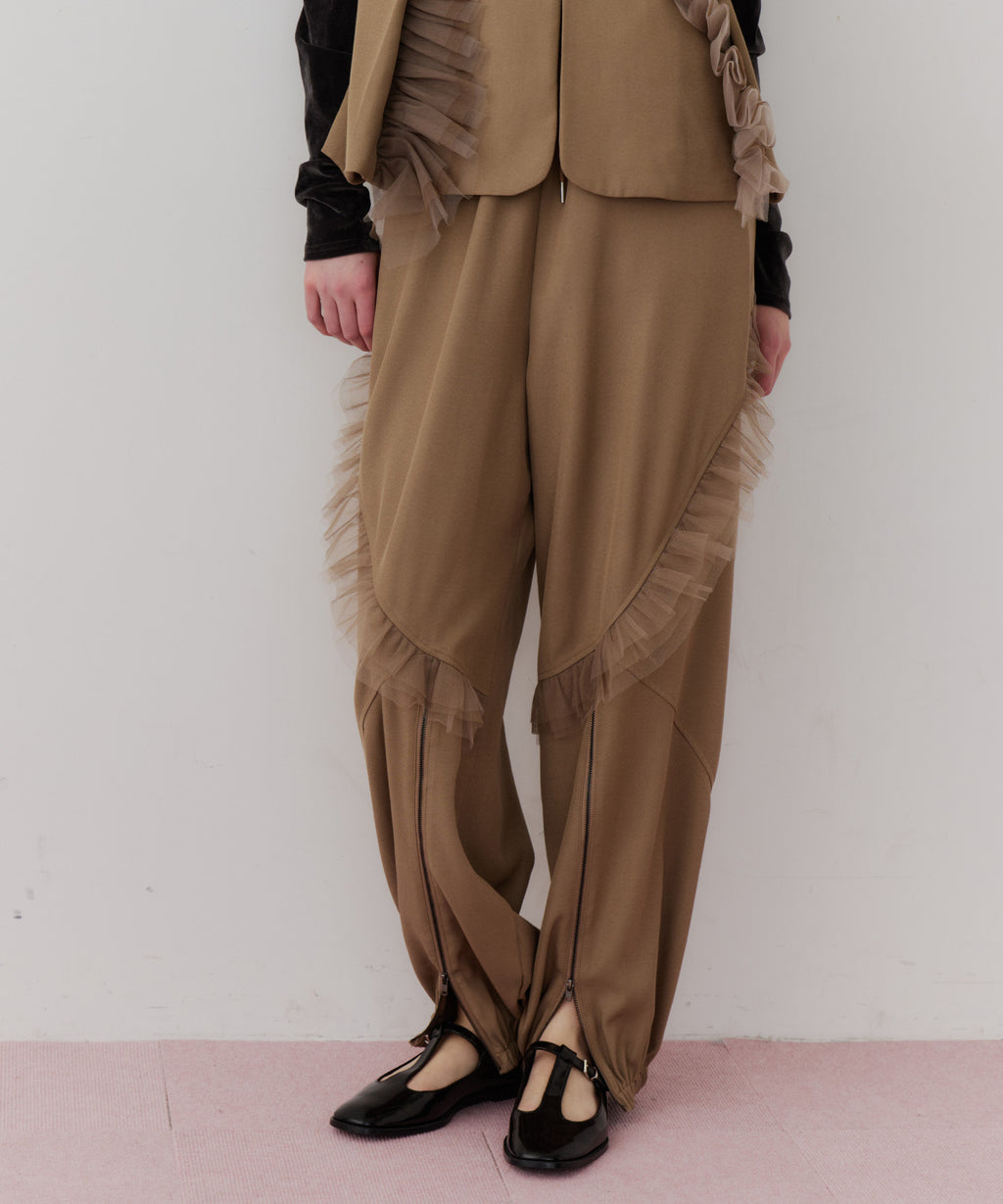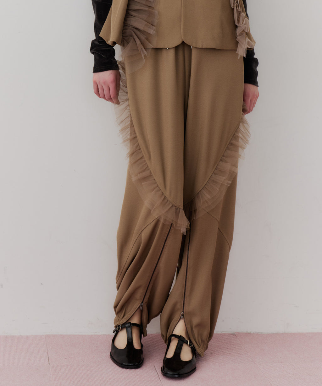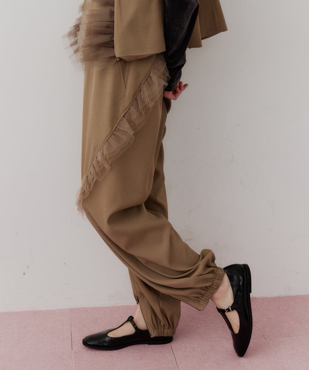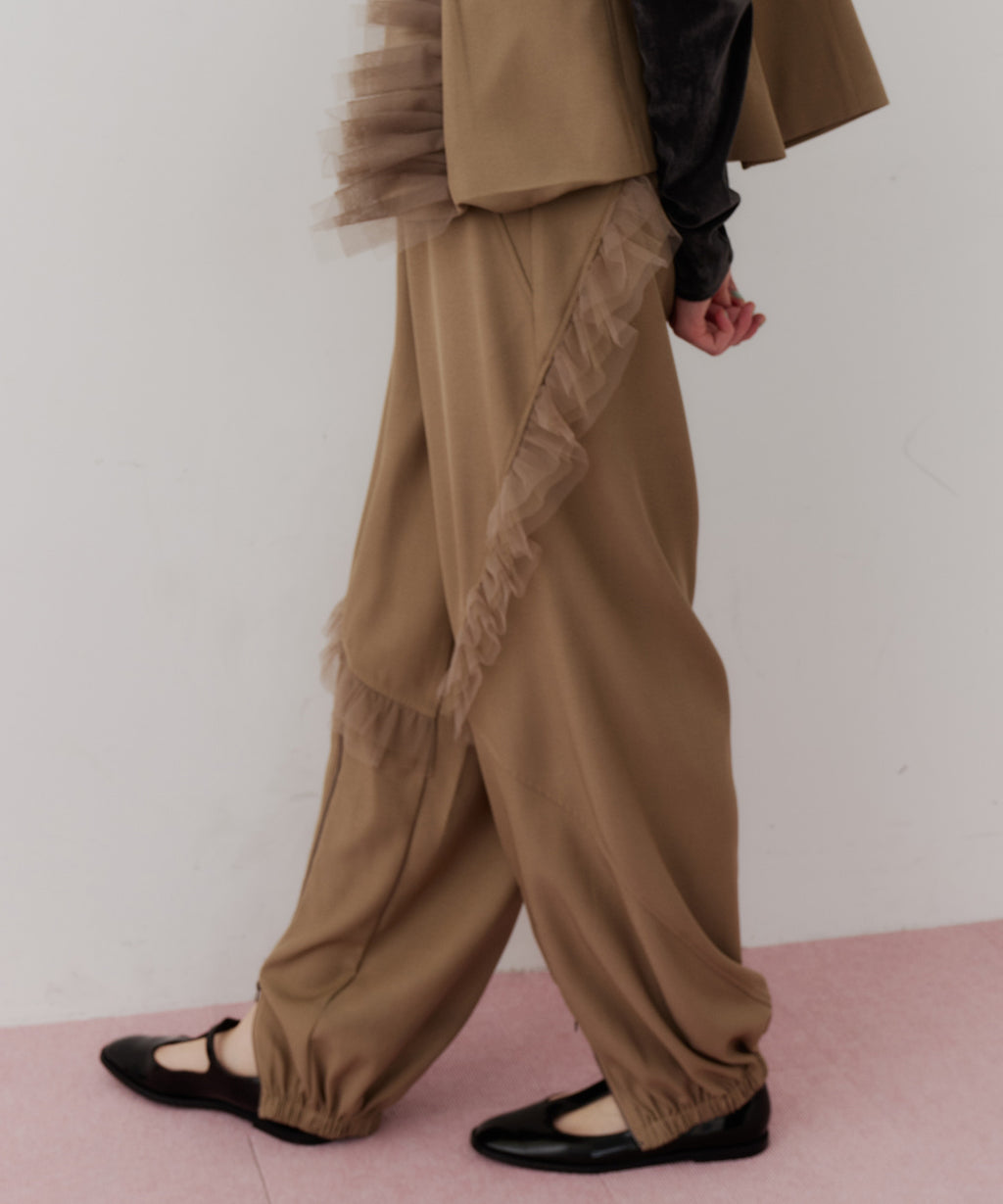 切り替え線にフリルを挟み込んだデザインパンツ。