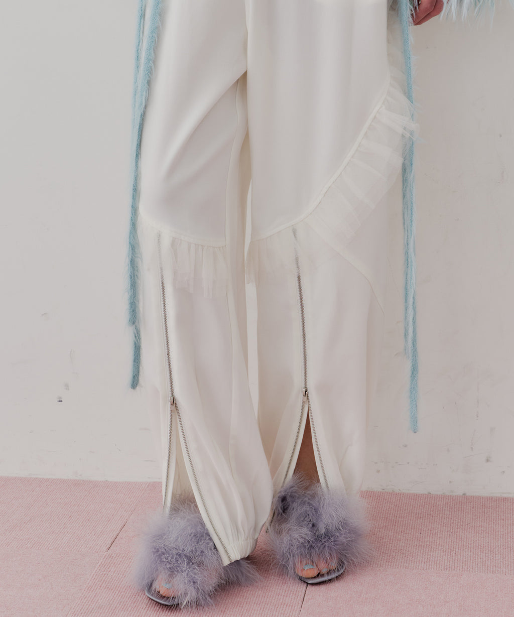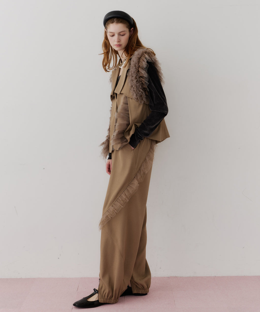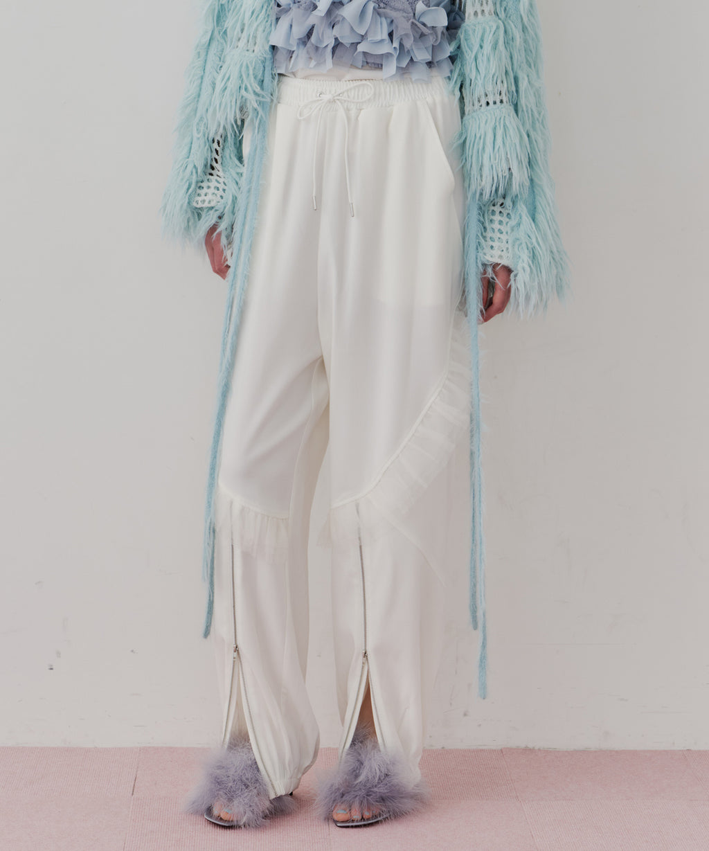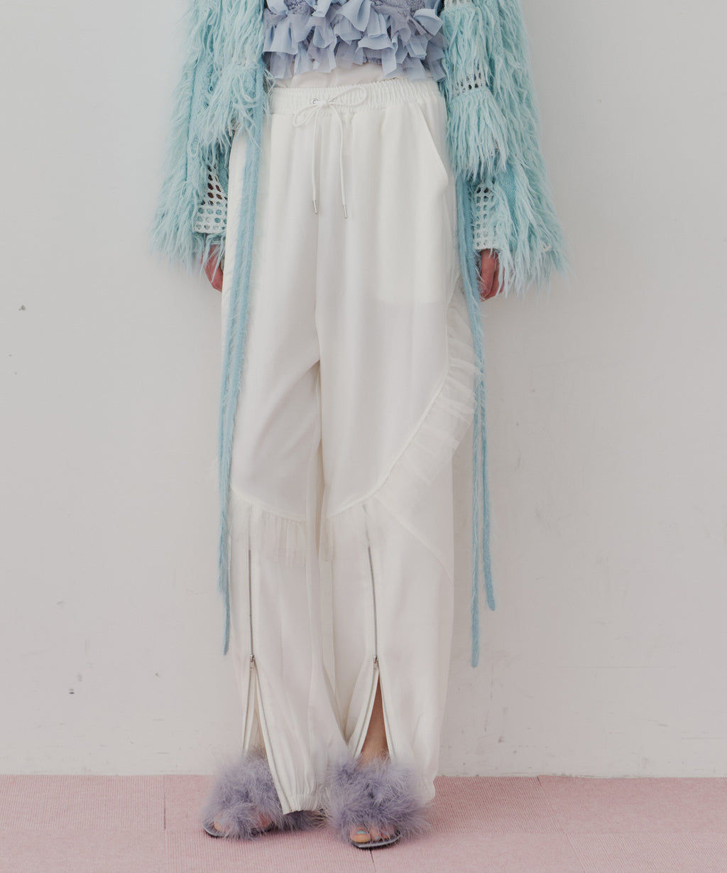 切り替え線にフリルを挟み込んだデザインパンツ。