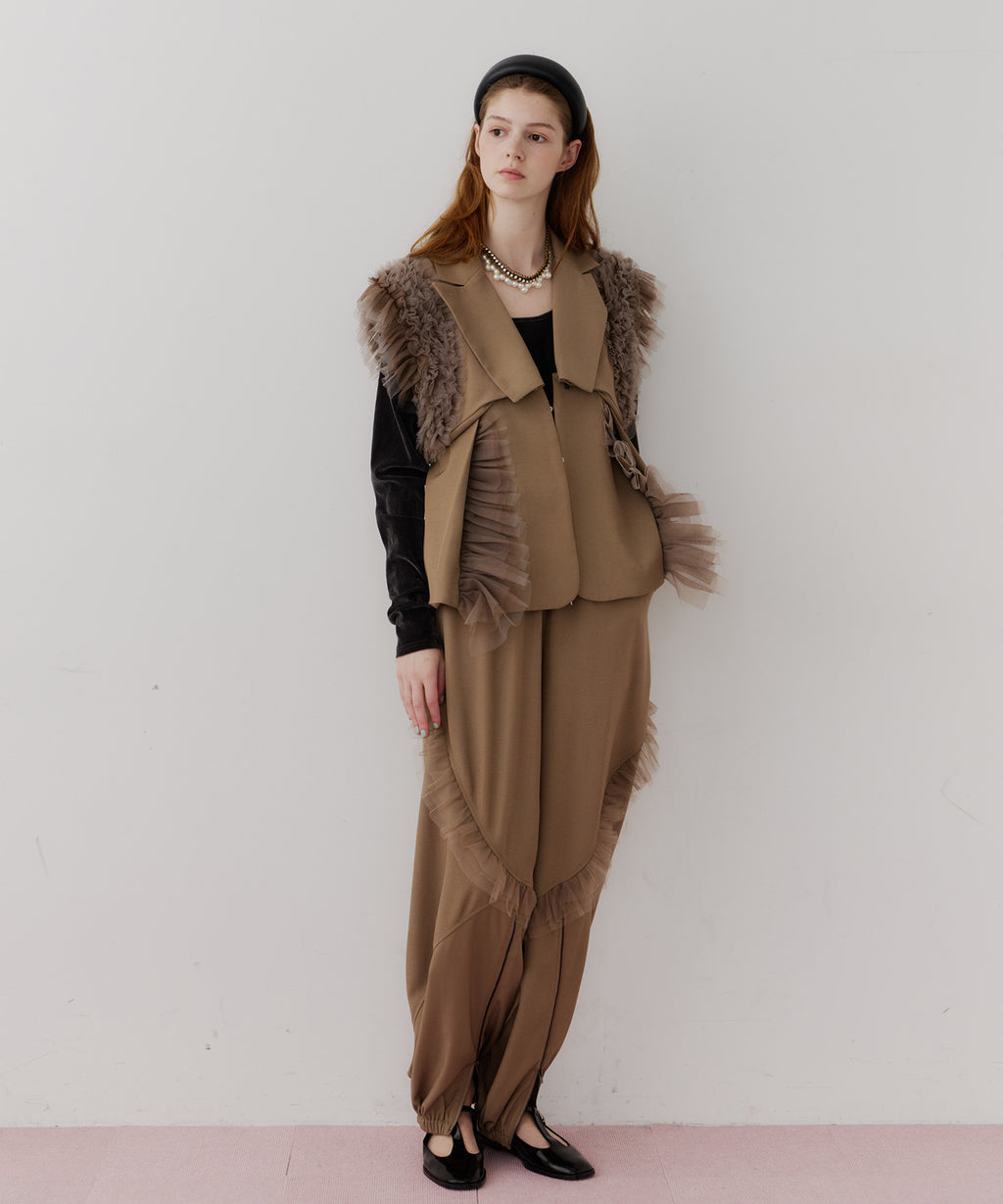 2WAYボリュームギャザーチュールノースリーブジャケット