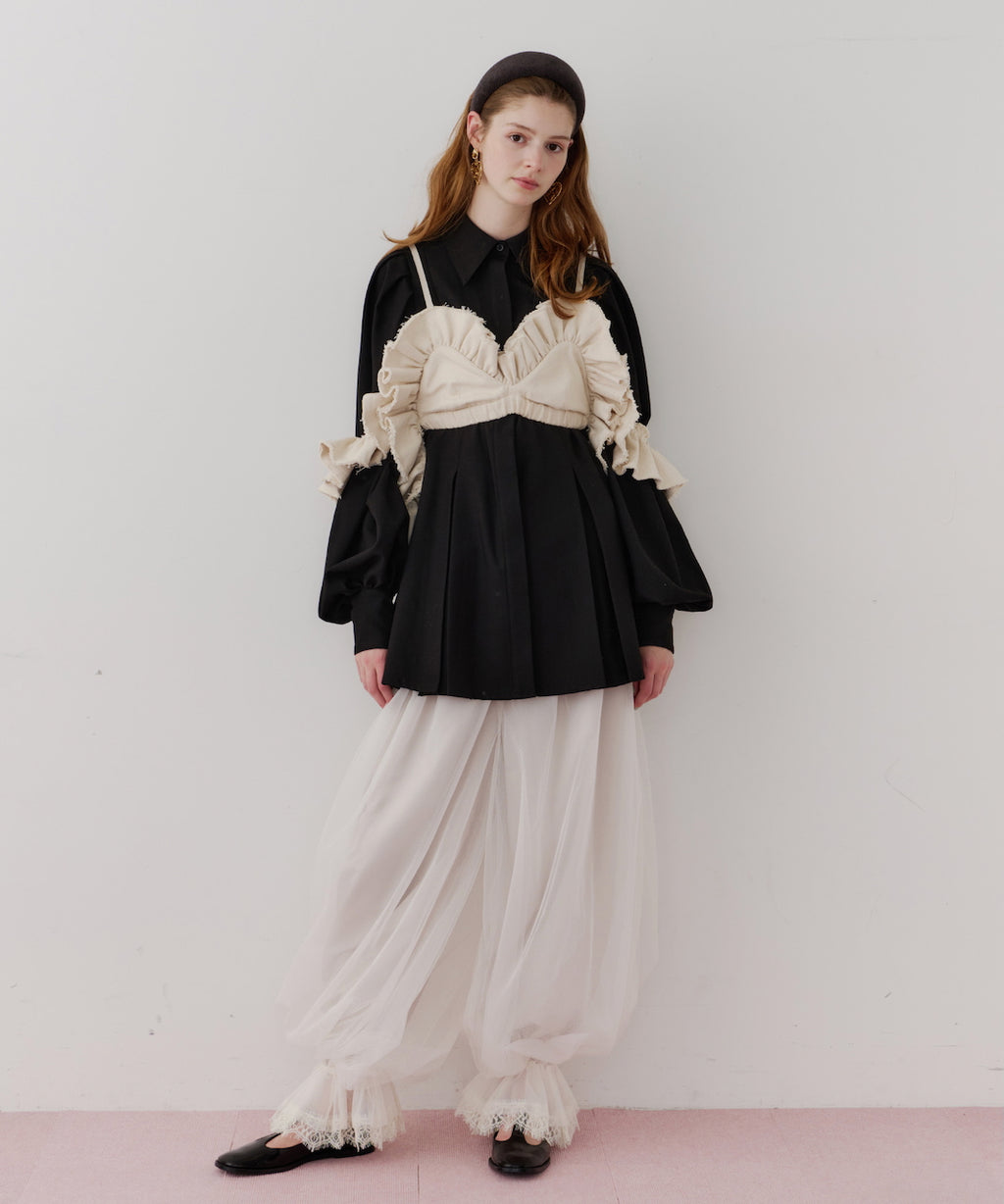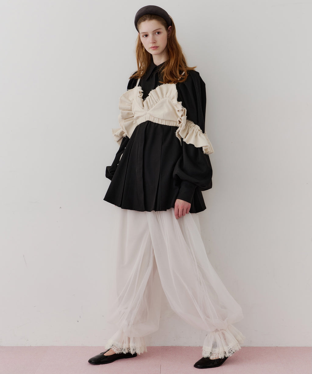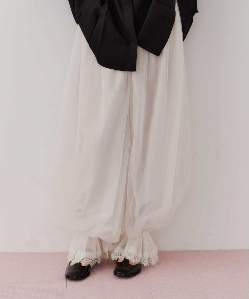 J1Uらしいチュール使いが目を惹くバルーンパンツ。