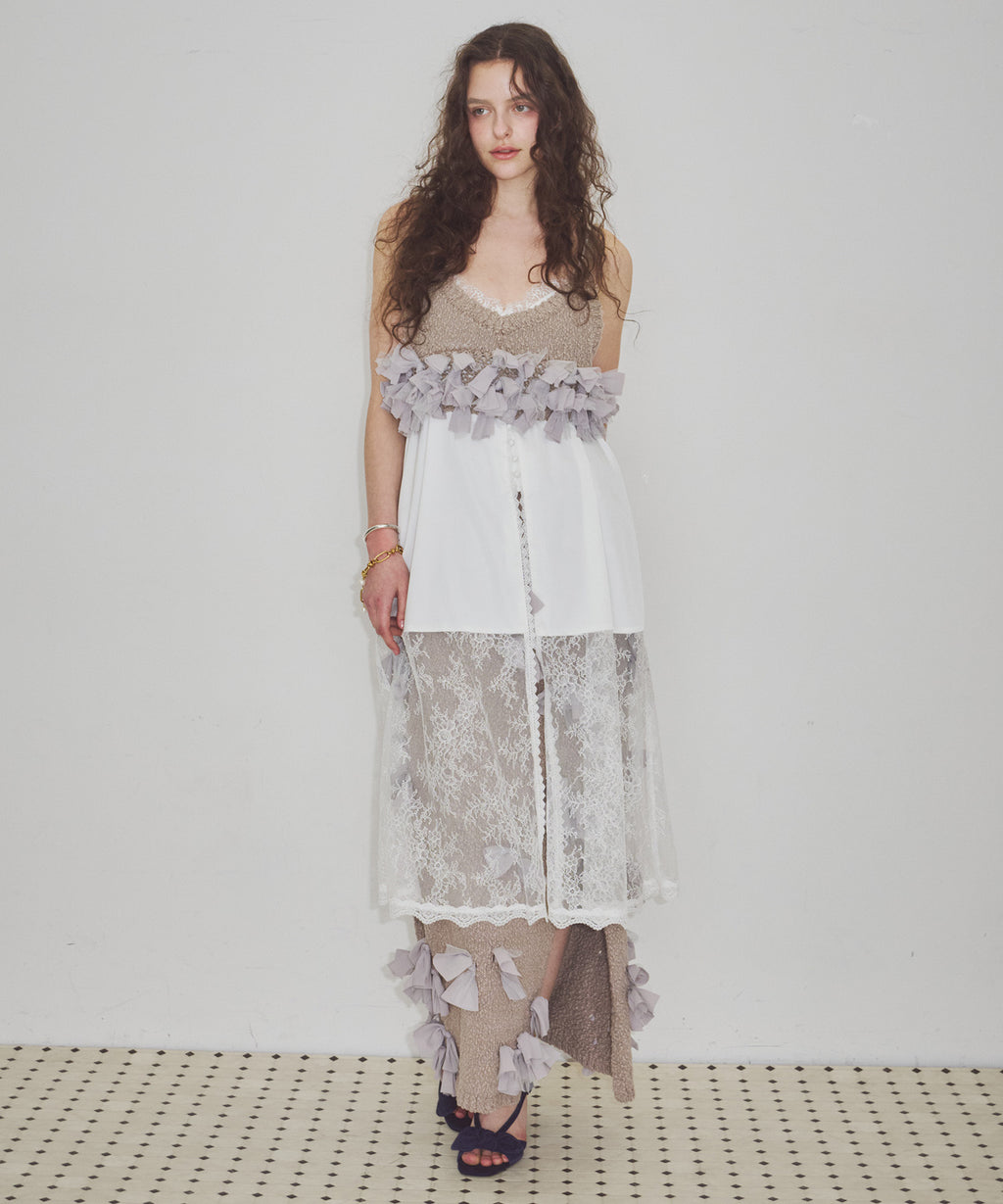 膝下〜レースを組み合わせることで、ライトな透け感と奥行きをプラス◎