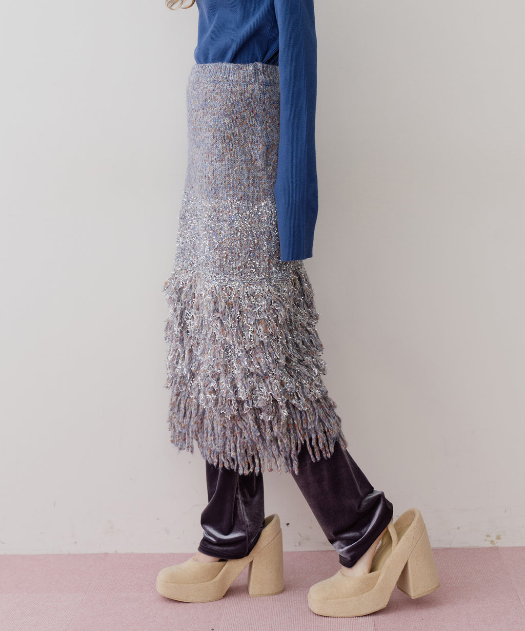 【ファンシーヤーンループフリンジMIXスカート by J1U by LA BELLE ETUDE】