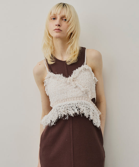 ネック周りはループ編みでニュアンスな雰囲気もプラスしました。