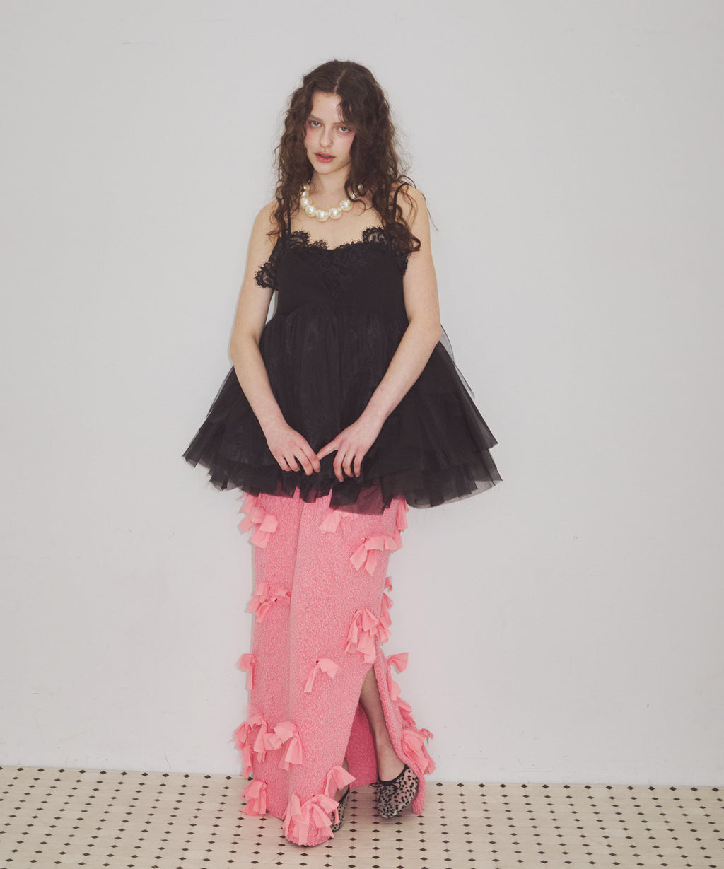 ビスチェと違って不規則にちりばめられたリボンはボリュームがありながら