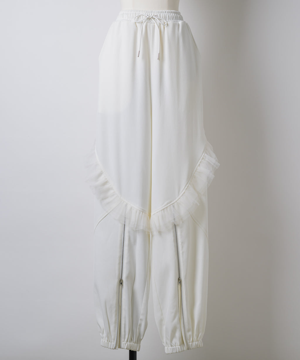 切り替え線にフリルを挟み込んだデザインパンツ。