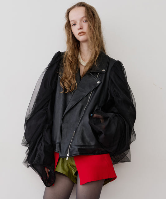 アーム周りにボリュームのあるチュールフリルをドッキング。