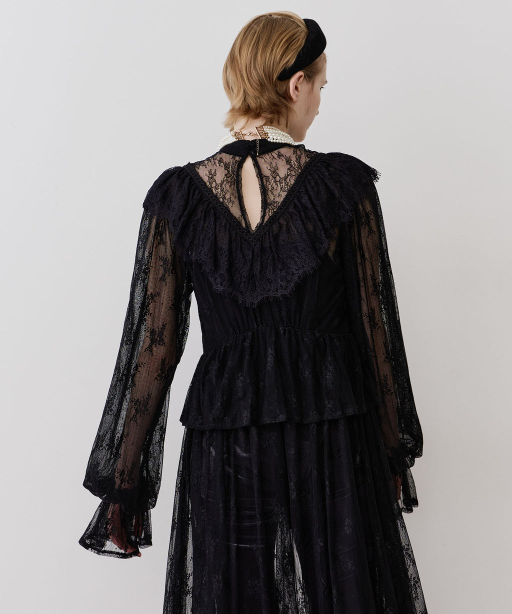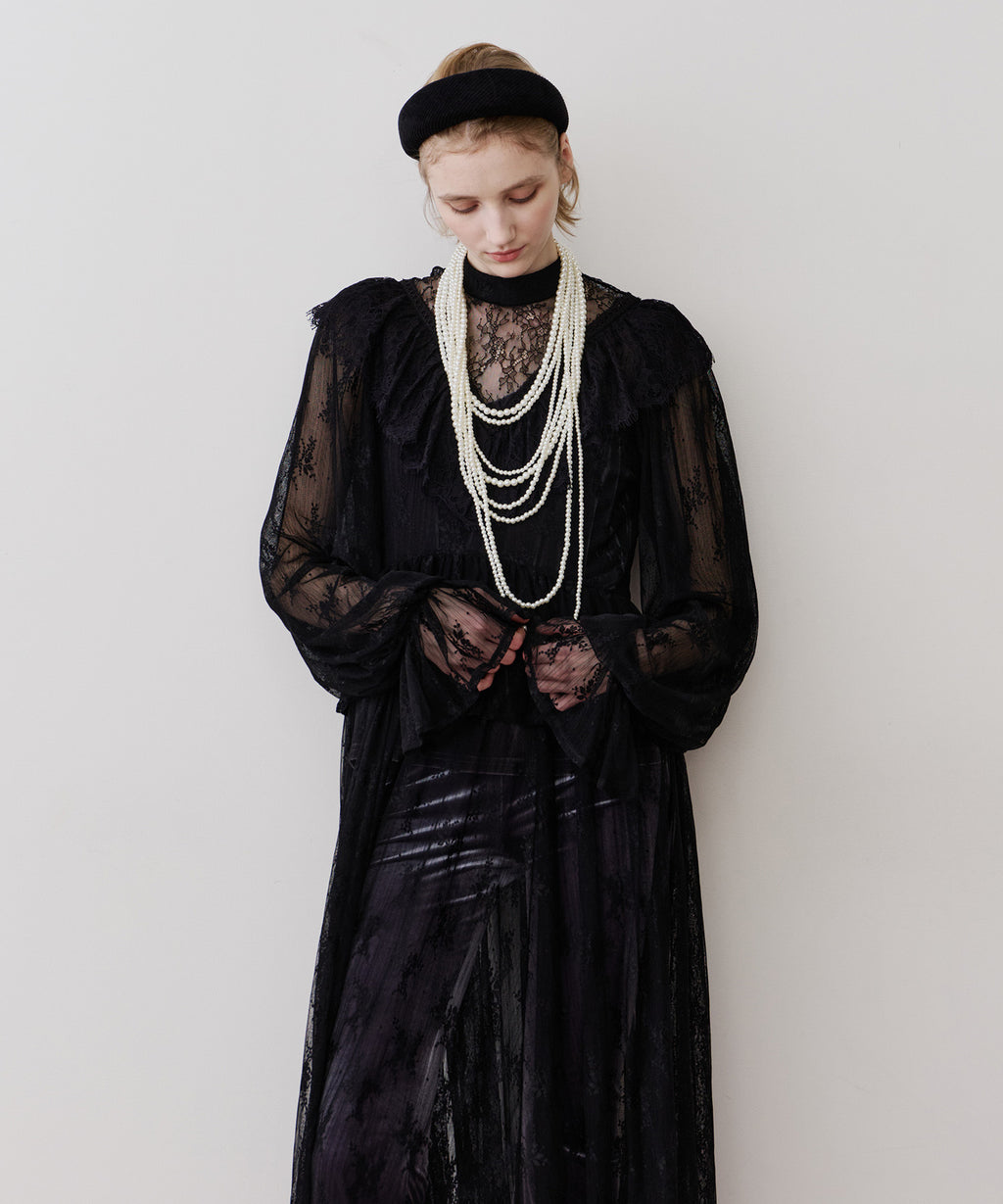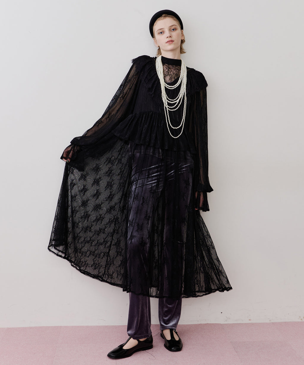 身頃から袖まで全てレースで仕立て、軽やかな着心地ながら存在感のある一着に仕上げました。