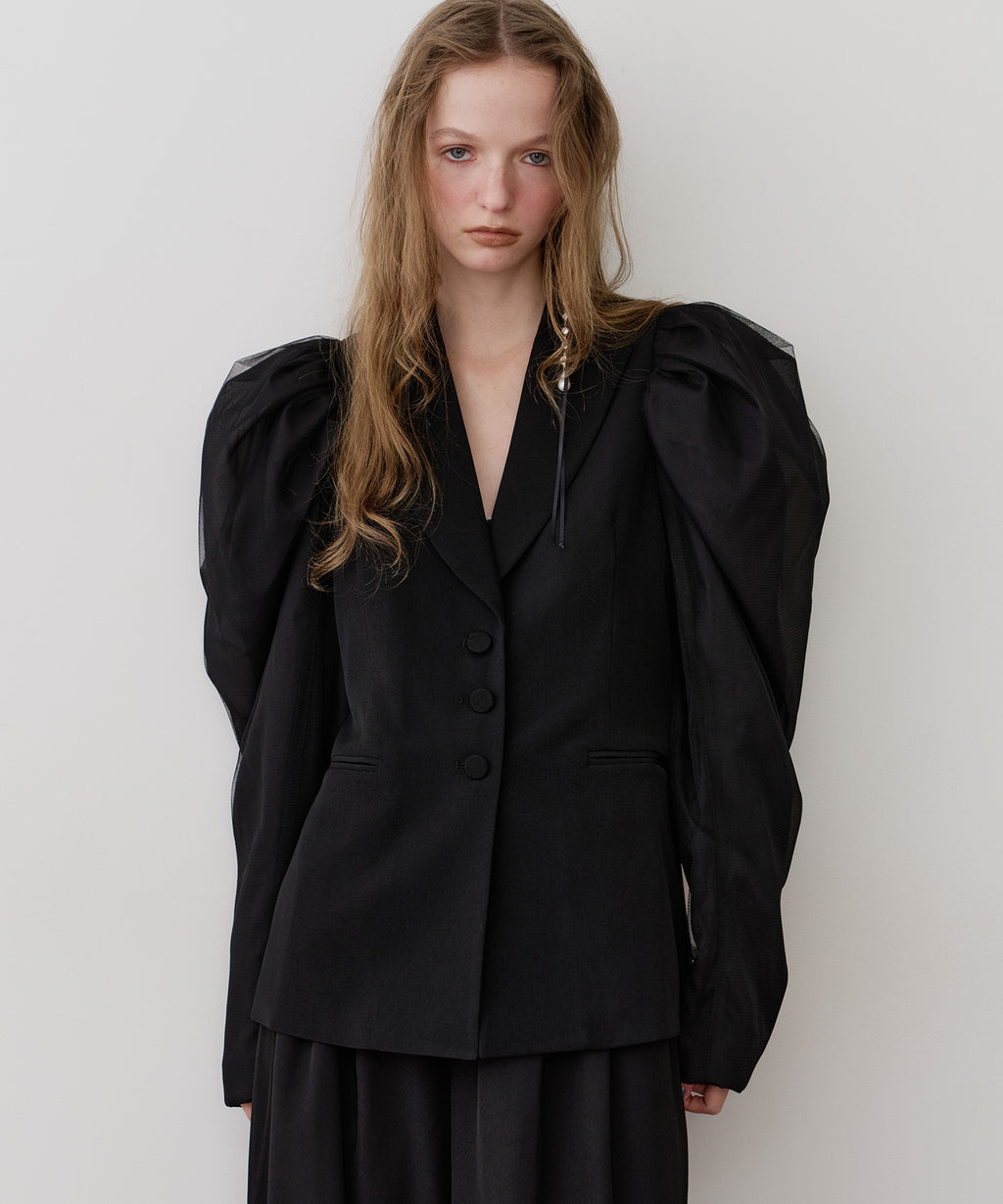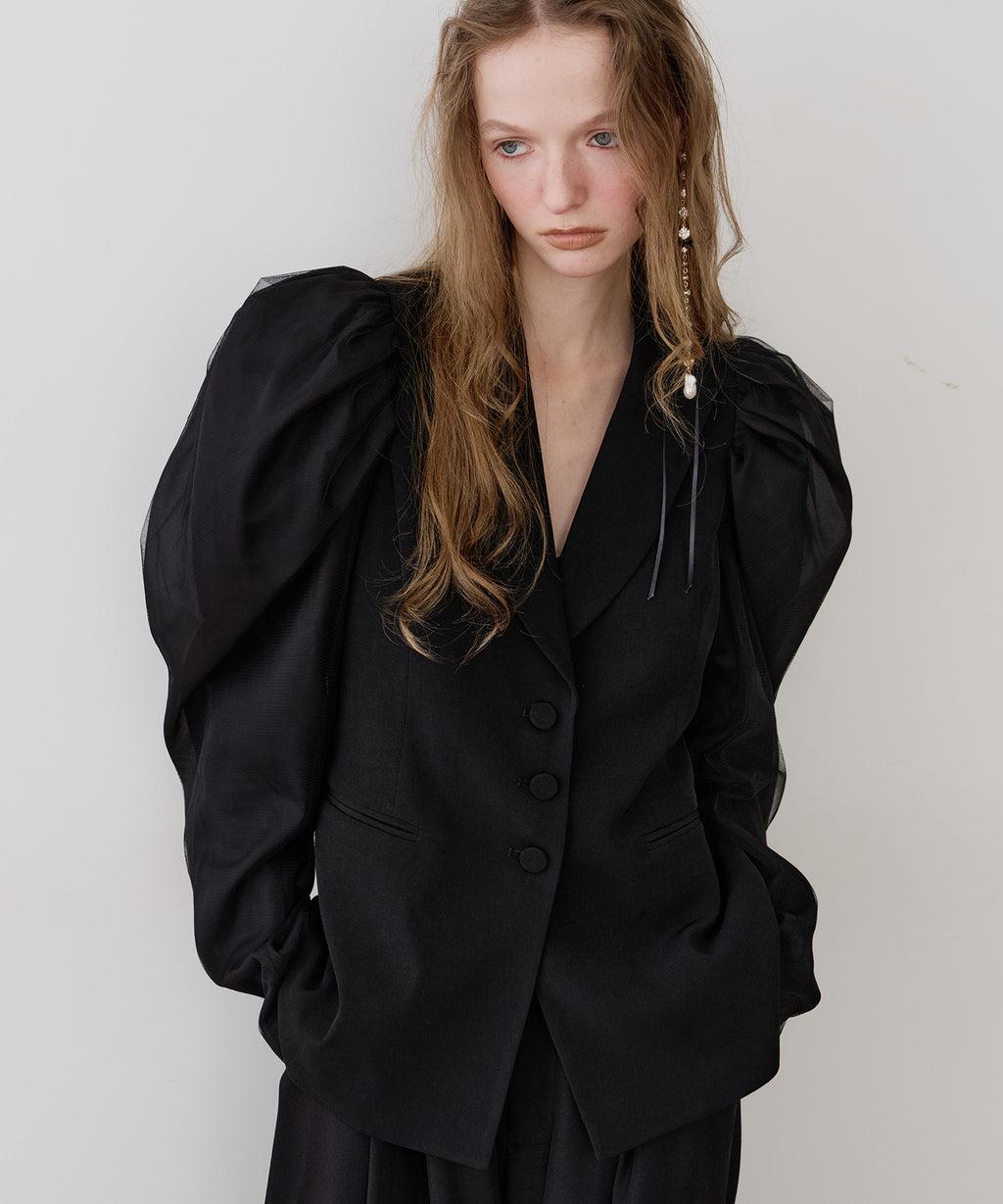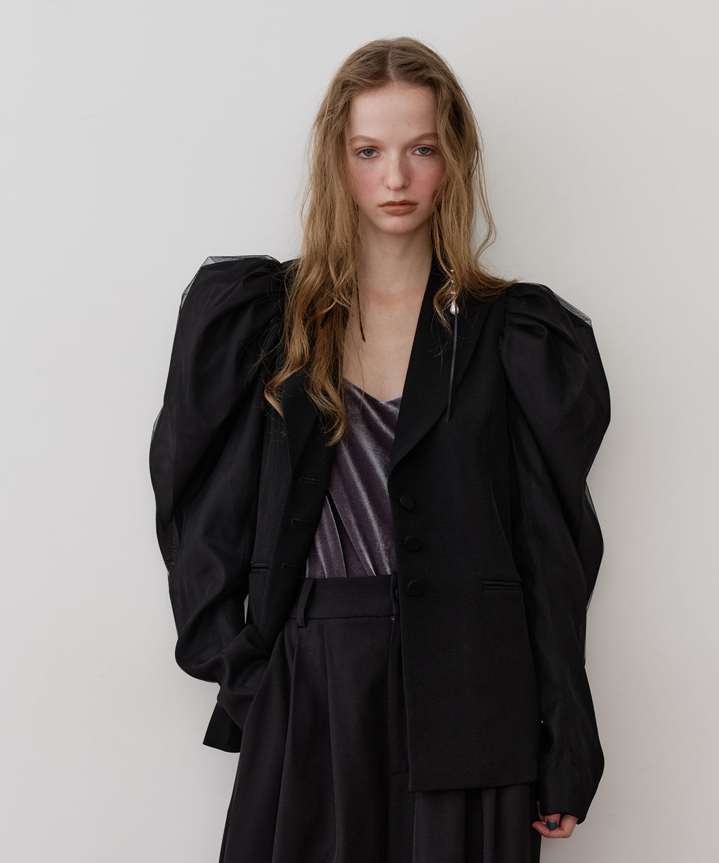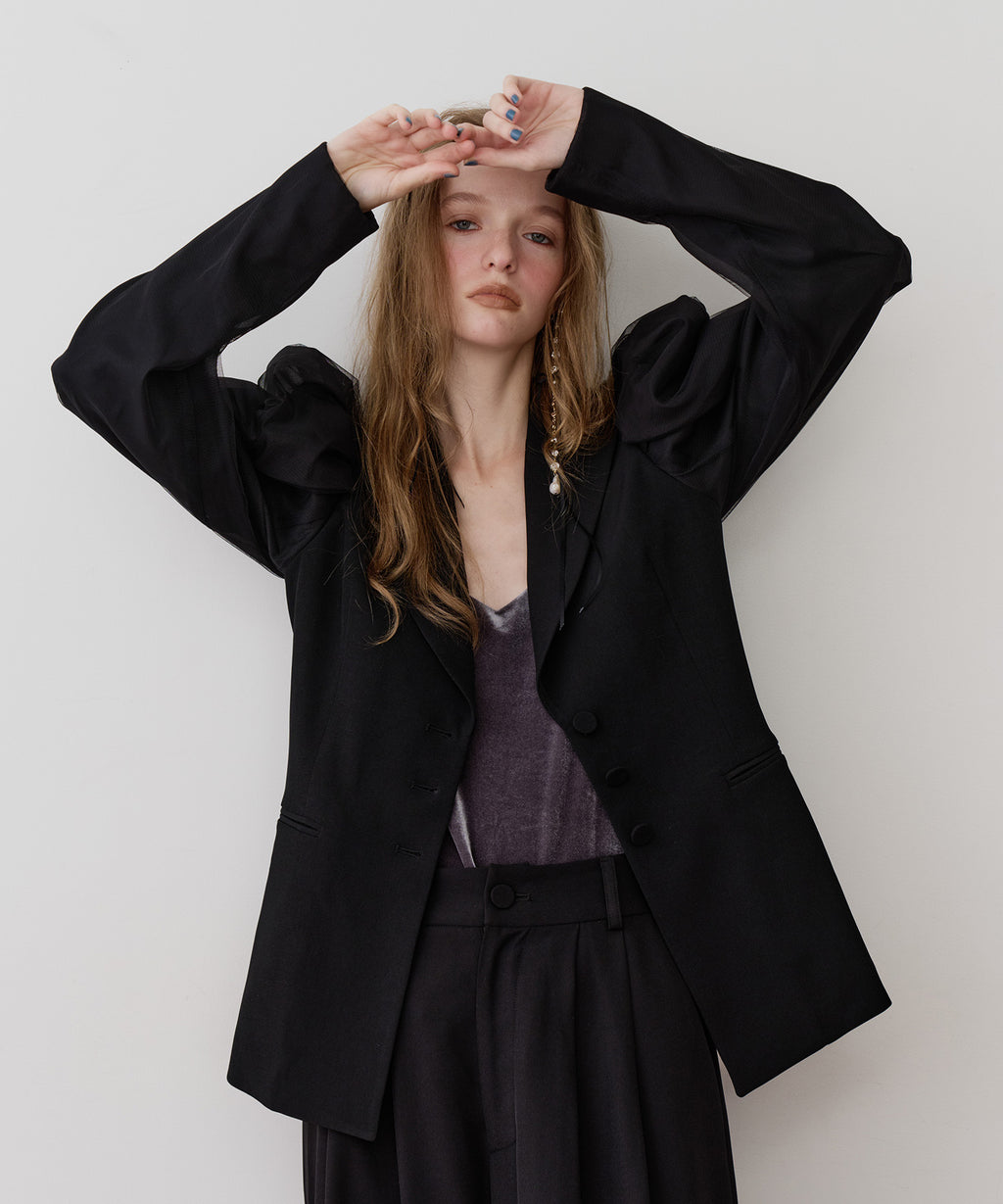 手元にかけて細身になり、メリハリのあるアームシルエットがポイント。ボリュームのある袖に相反して、