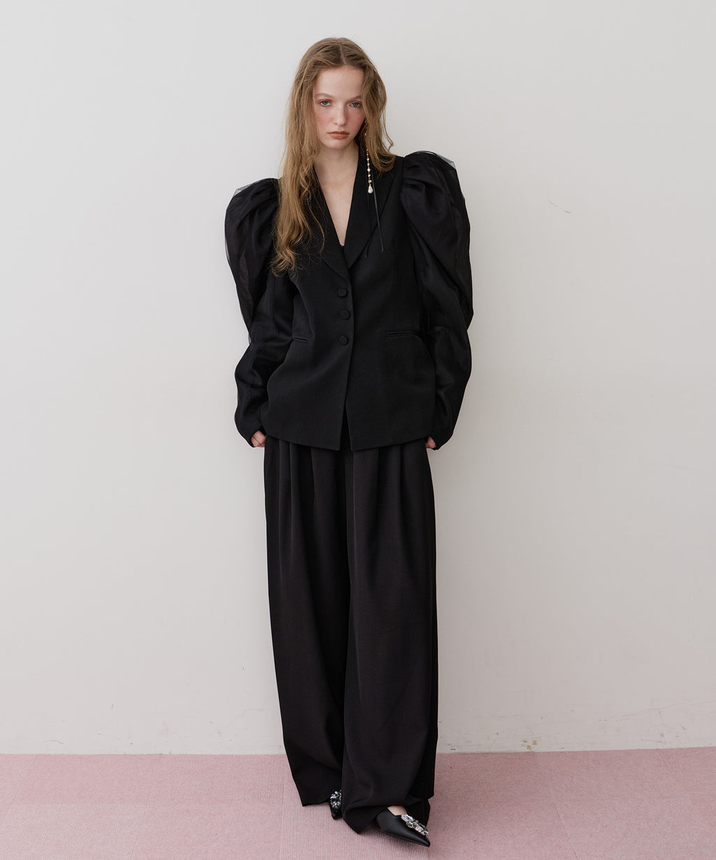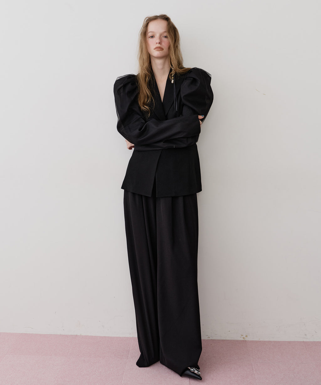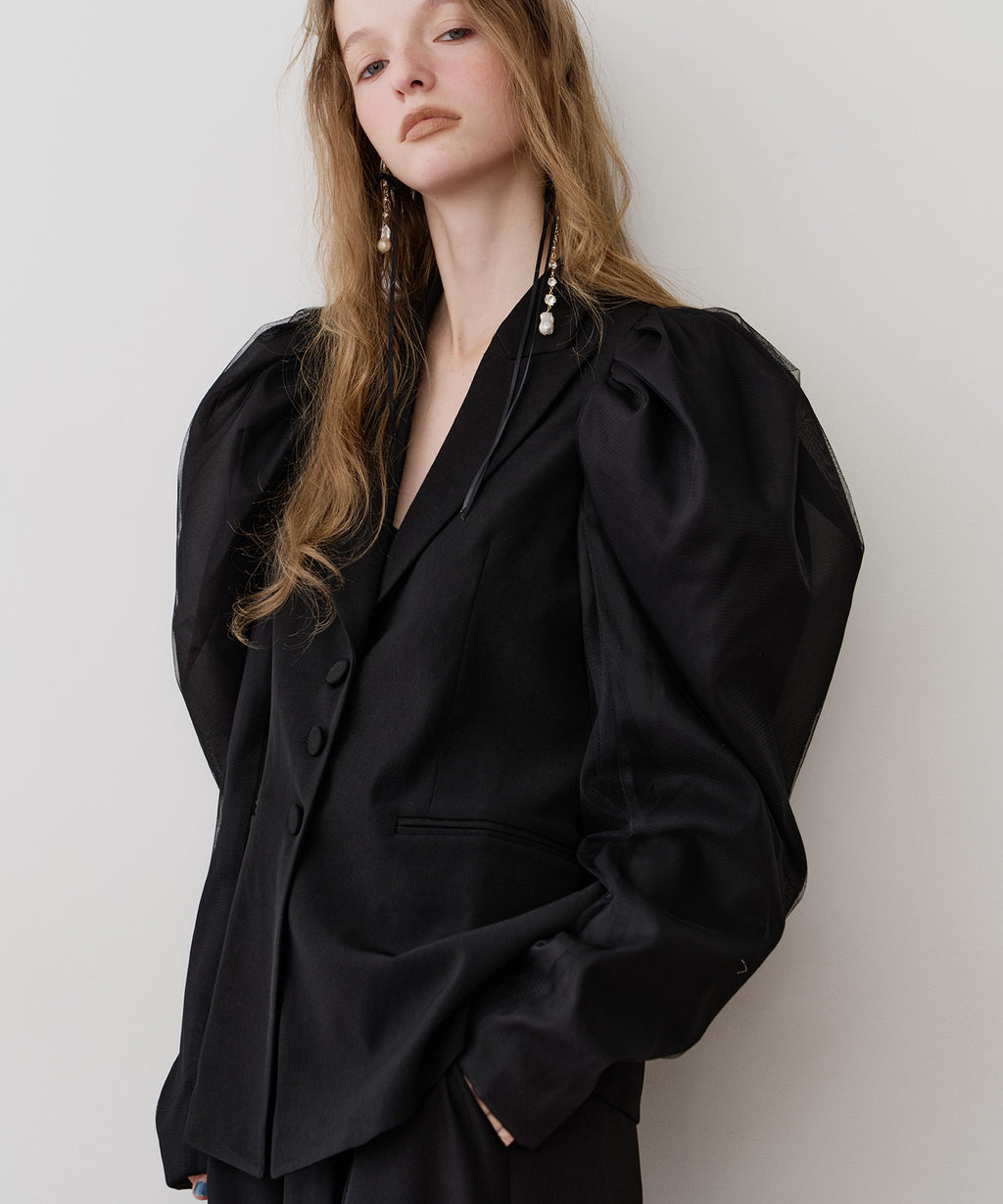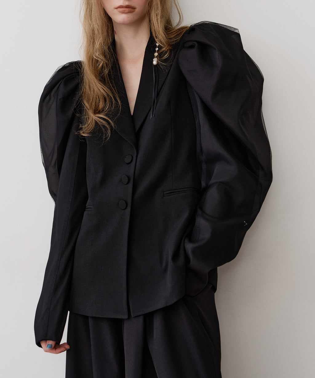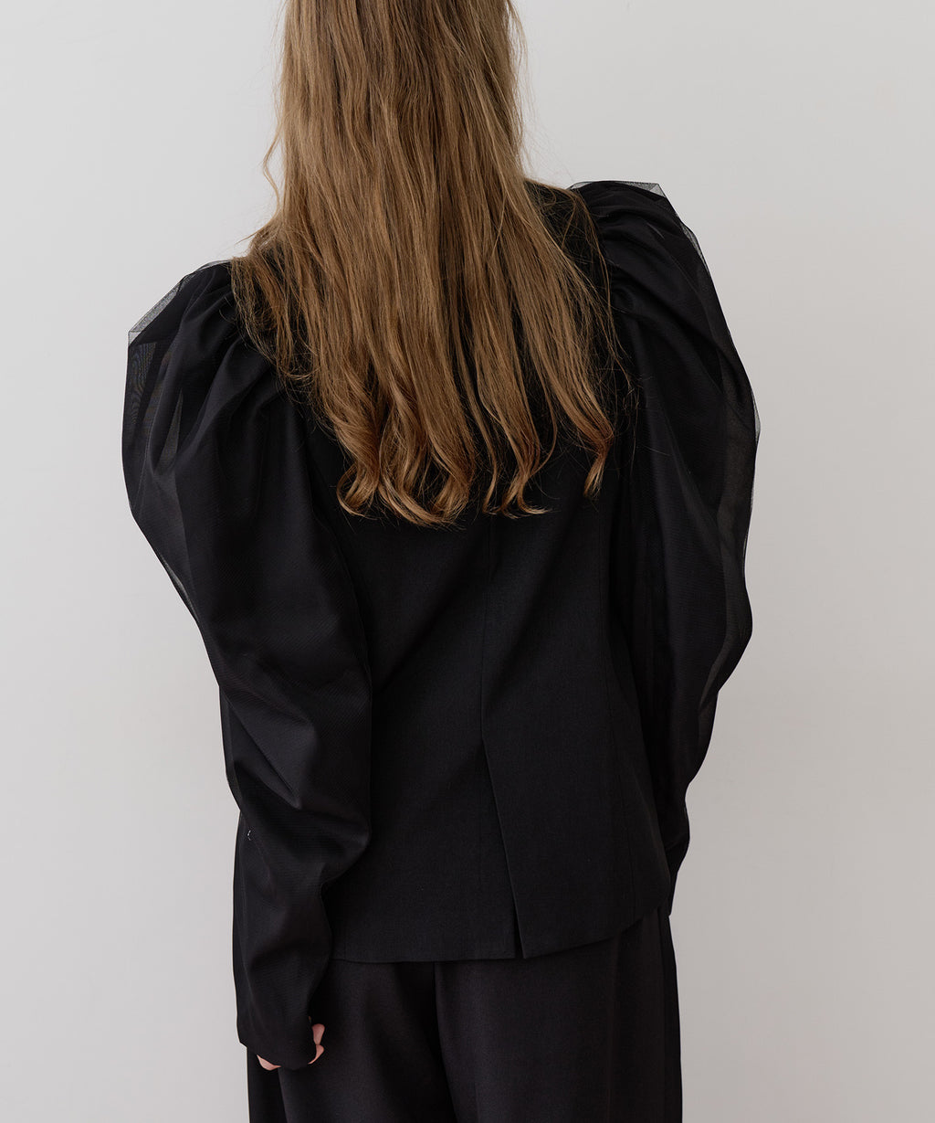 手元にかけて細身になり、メリハリのあるアームシルエットがポイント。ボリュームのある袖に相反して、