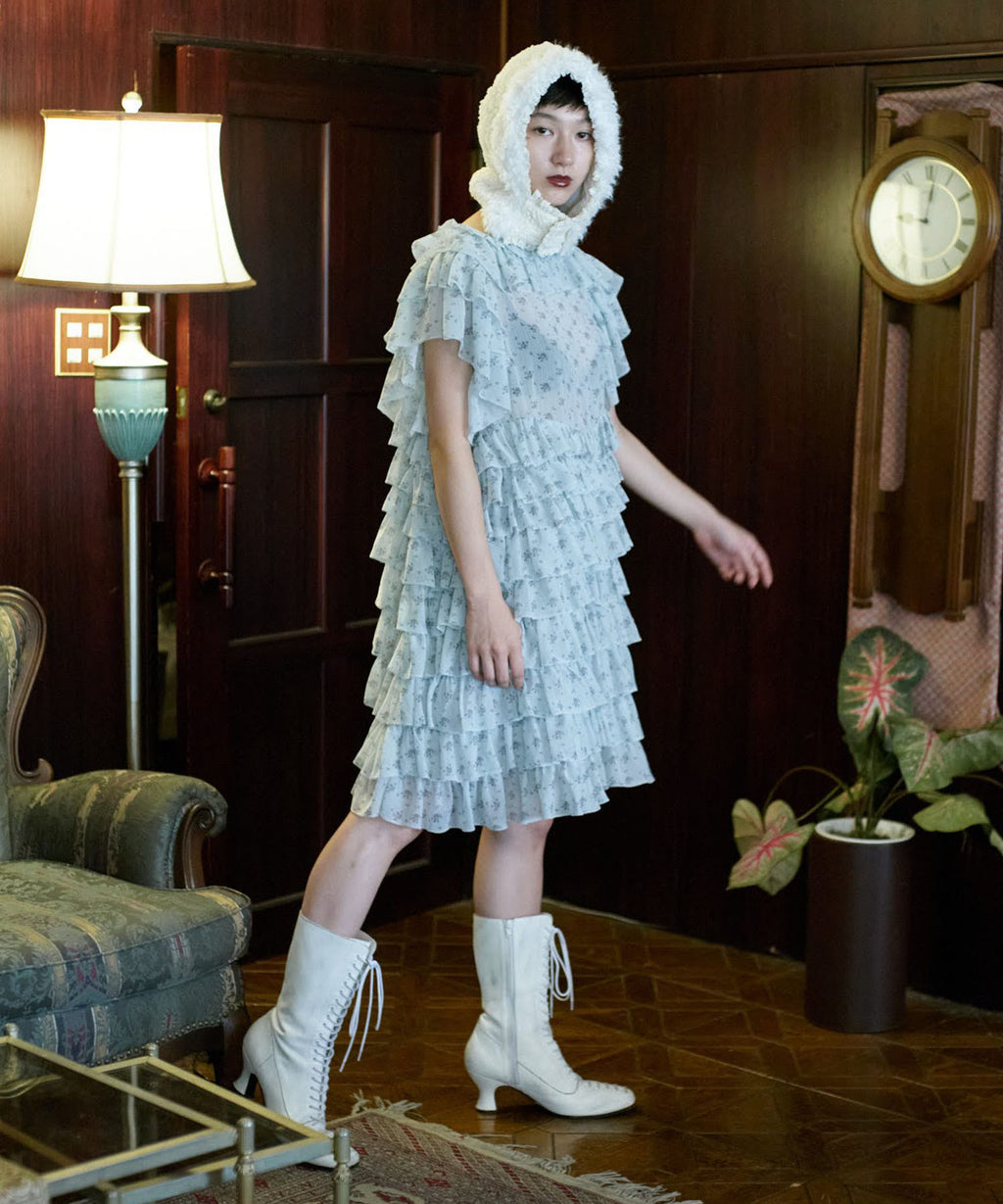【Lam Balm】アンティークライクボリュームティアードワンピース