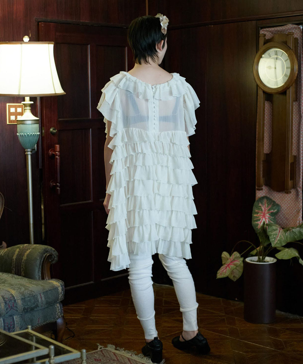 ボリュームのあるティーアードが目をひくチュニックワンピース。