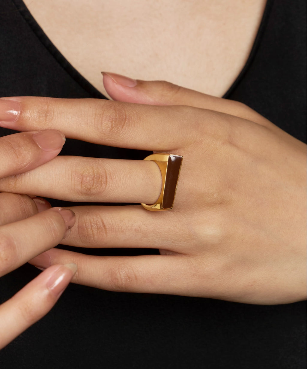 左右アシンメトリーでオリジナリティあるカッティングが特徴のリングです。