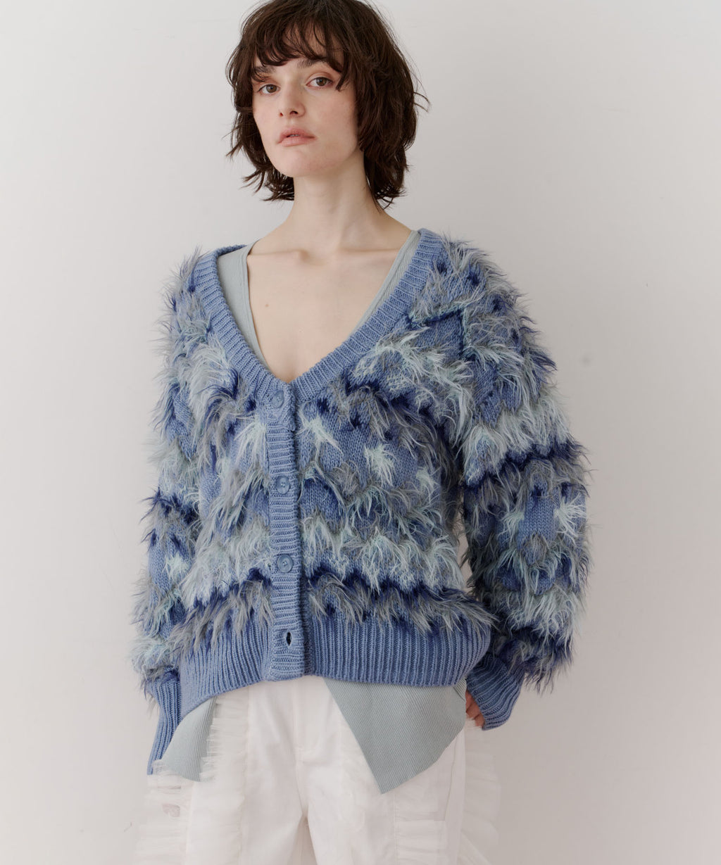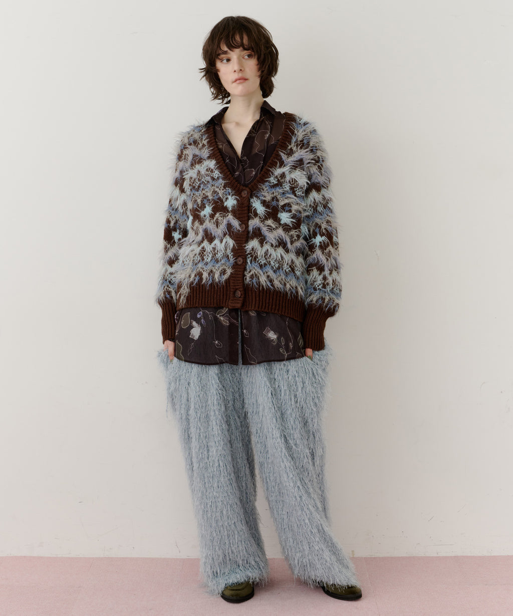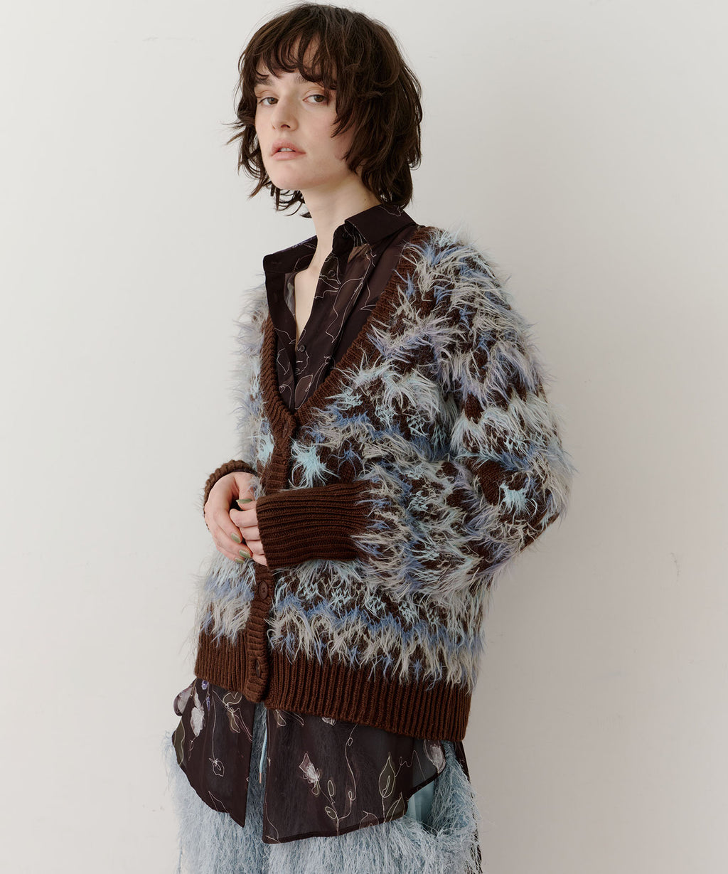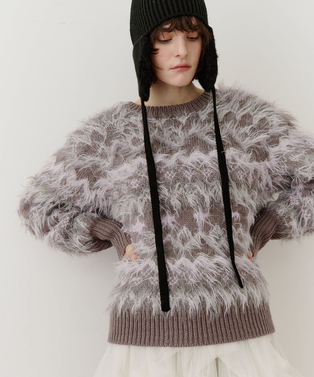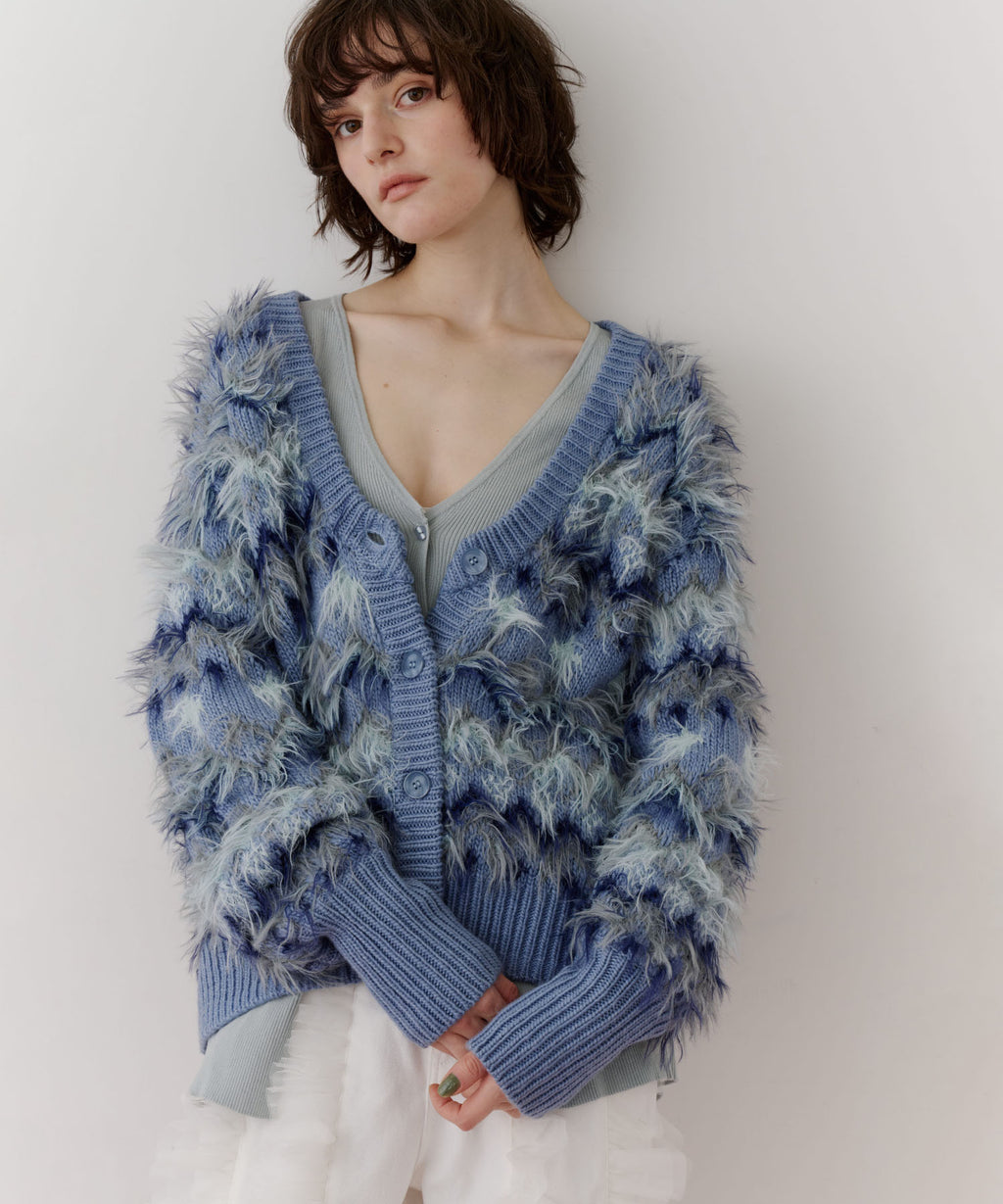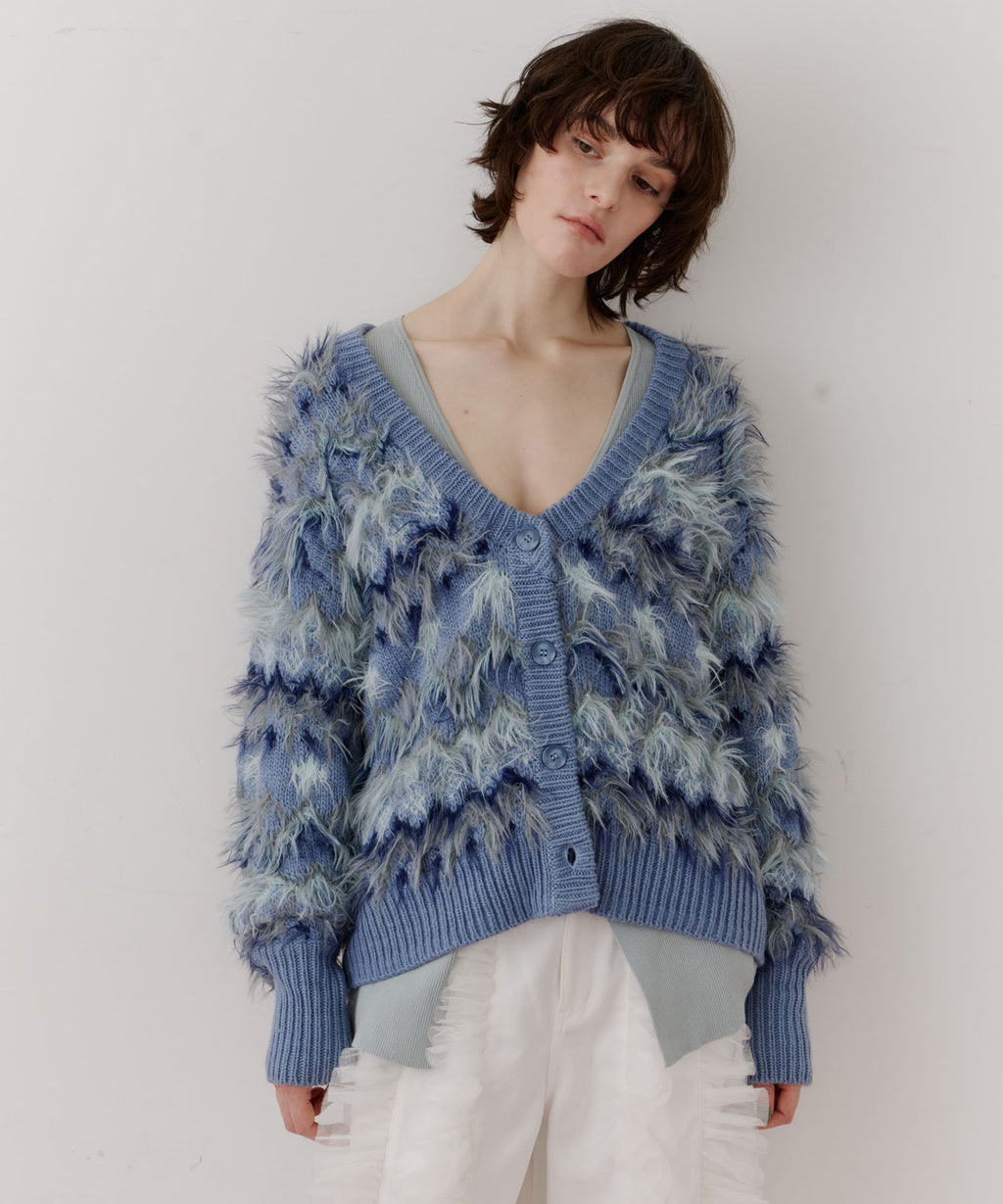 フェザーとウェーブ感のある糸を合わせることで、色差がでて奥行きのある色合いが完成。