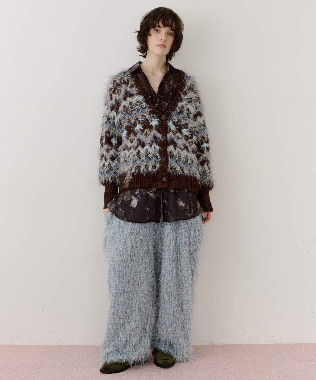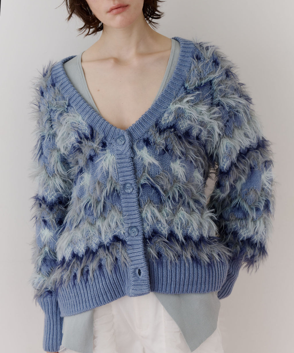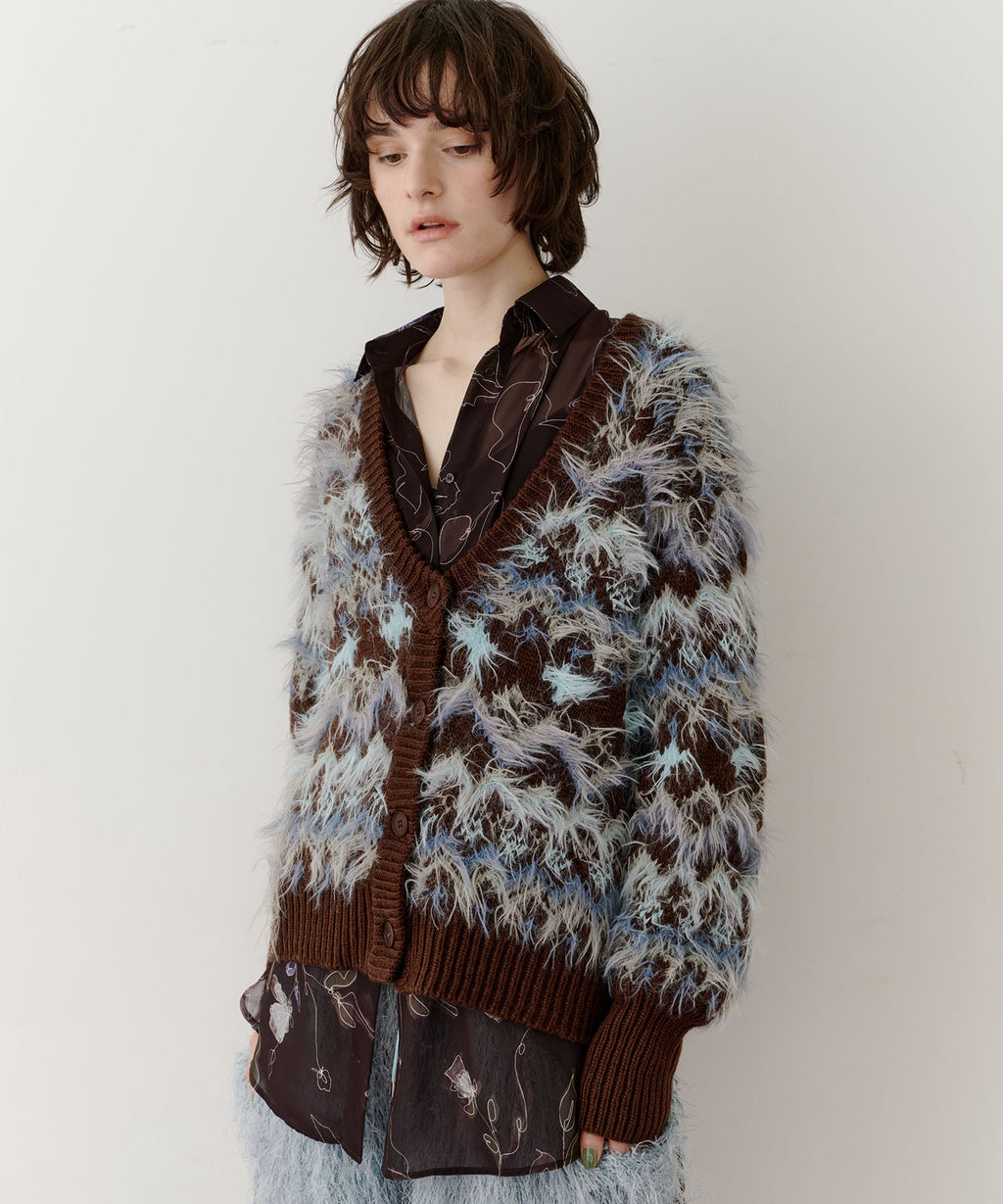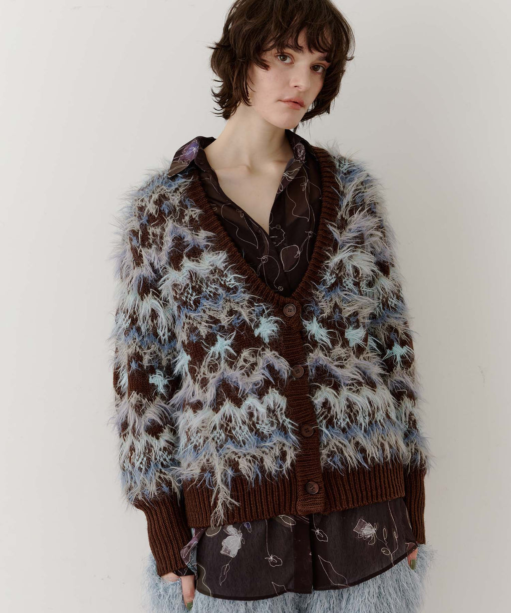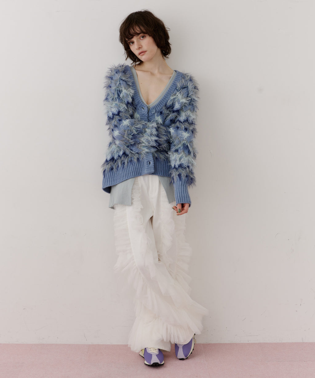 フェザーとウェーブ感のある糸を合わせることで、色差がでて奥行きのある色合いが完成。