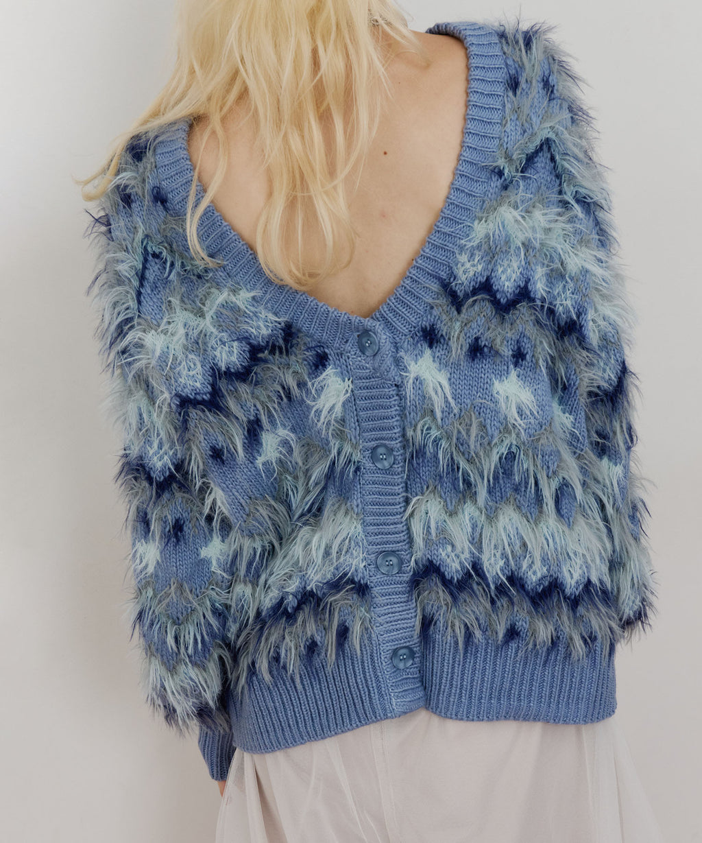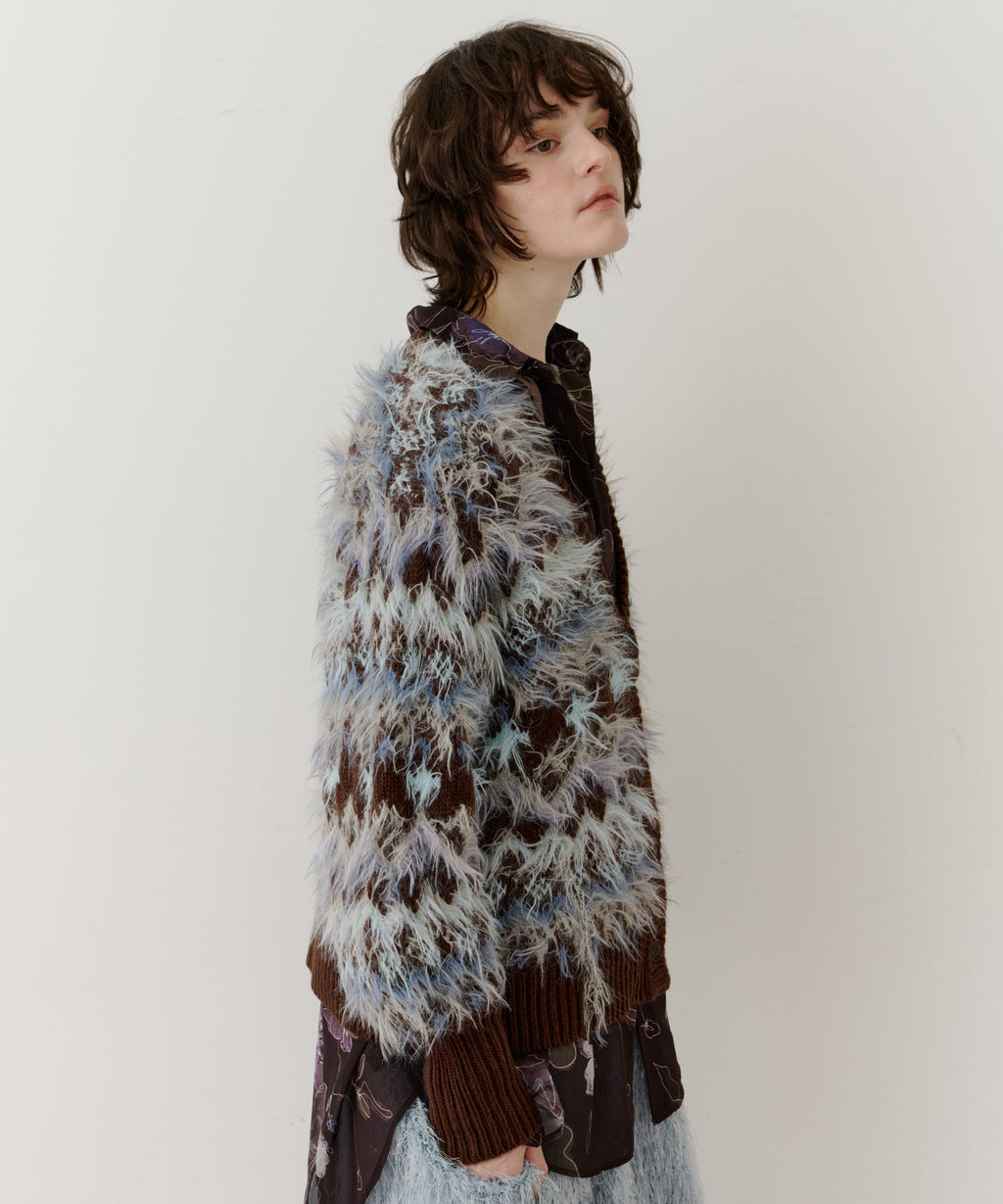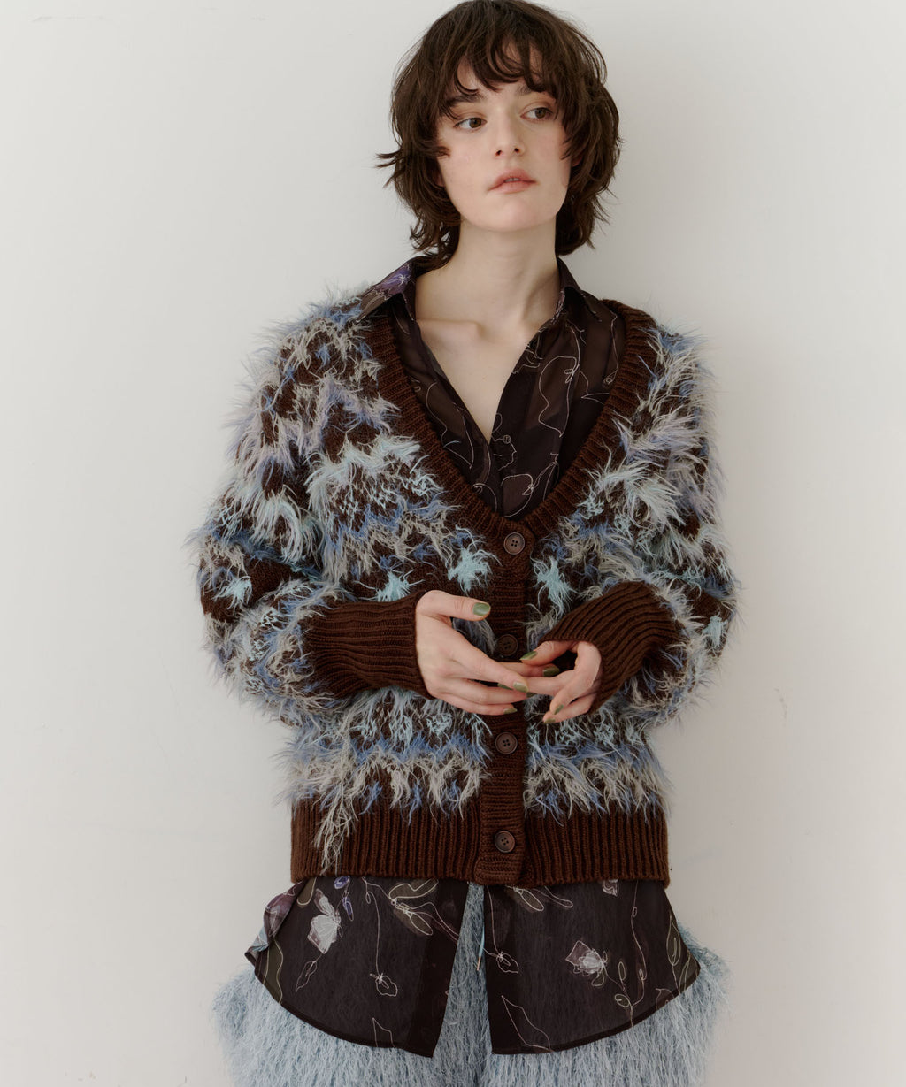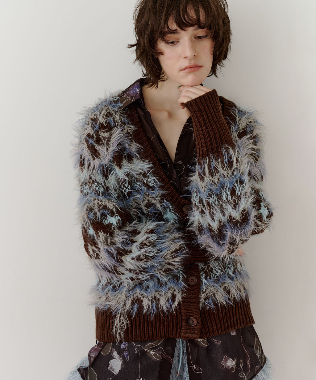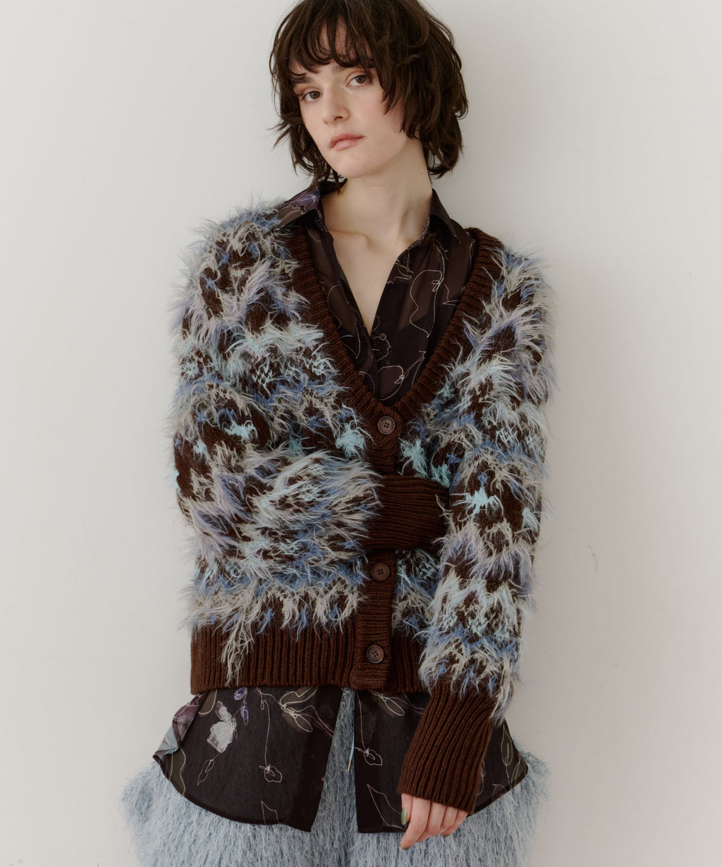 フェザーとウェーブ感のある糸を合わせることで、色差がでて奥行きのある色合いが完成。
