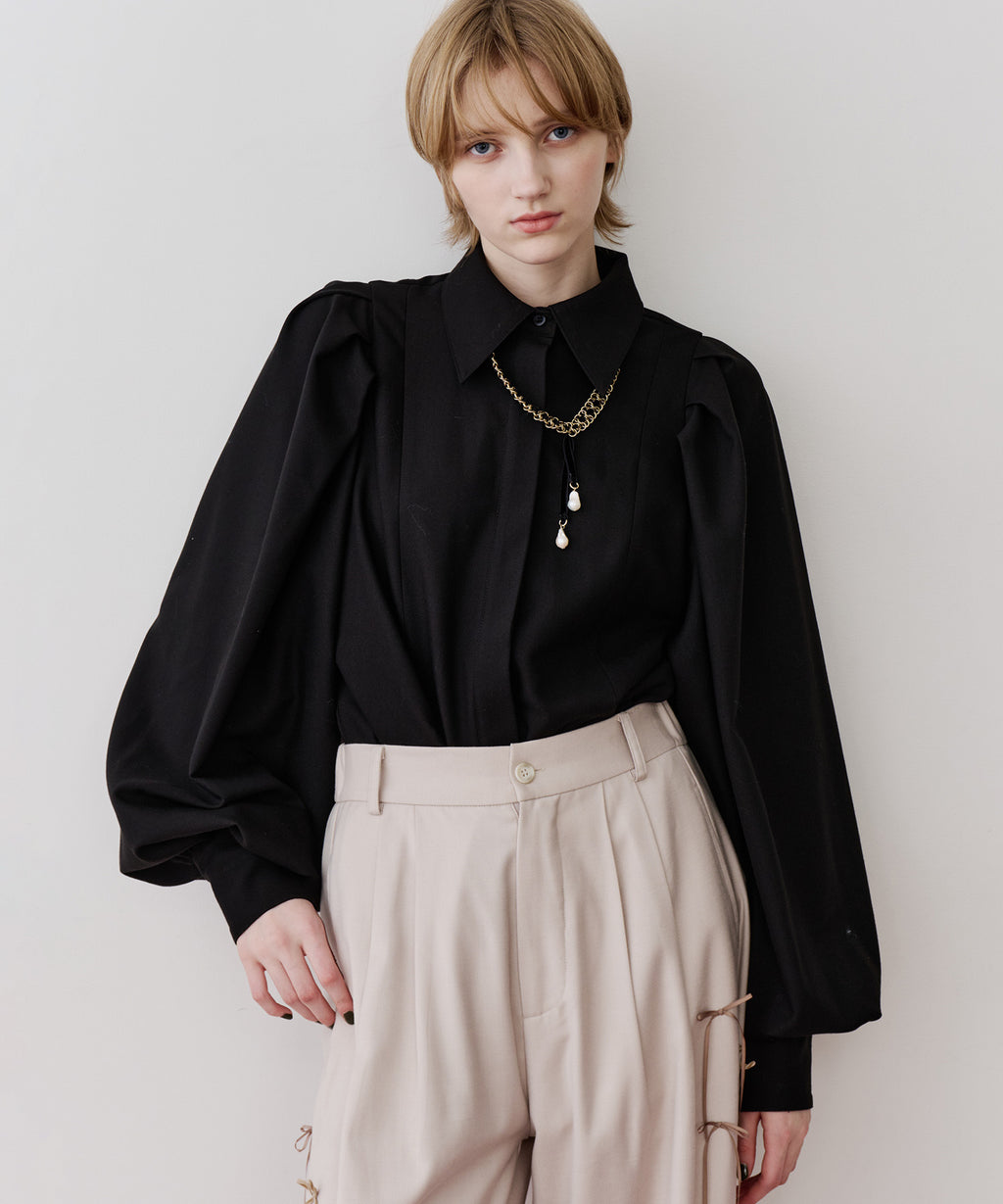 袖山にタック、手元にギャザーを入れてボリュームをしっかりとキープ。