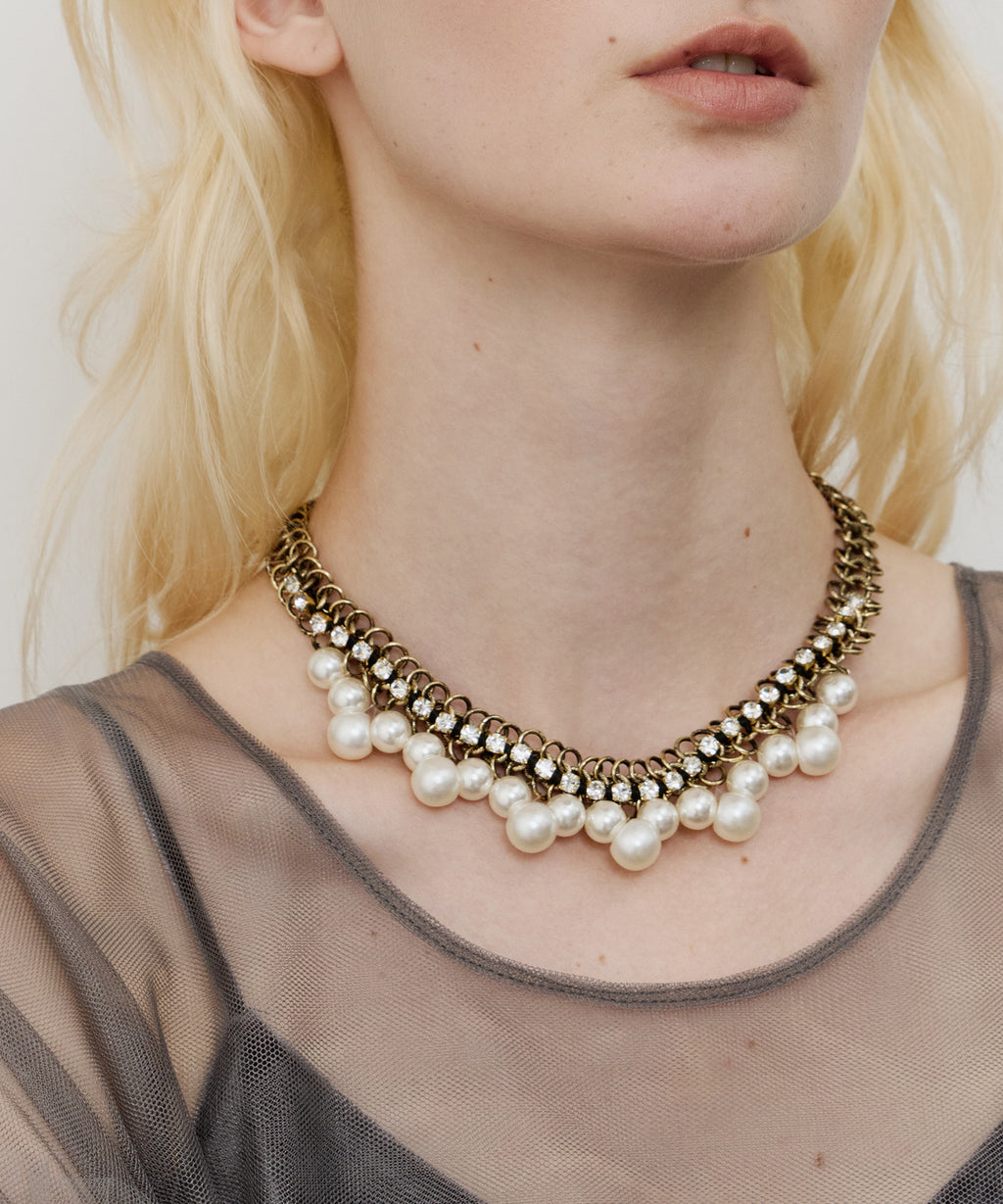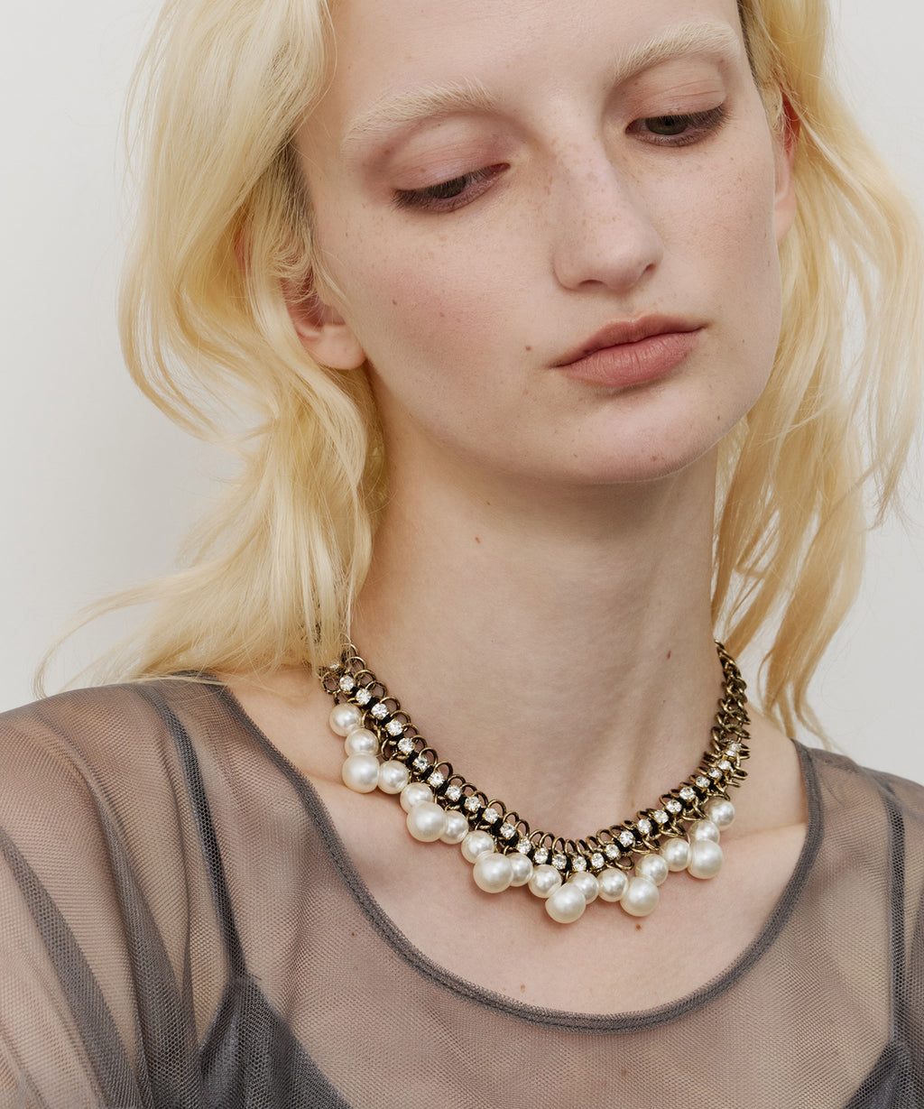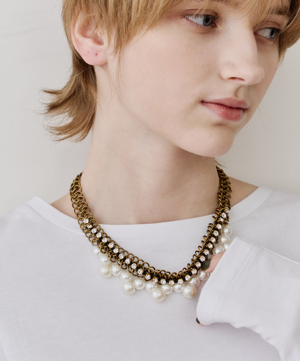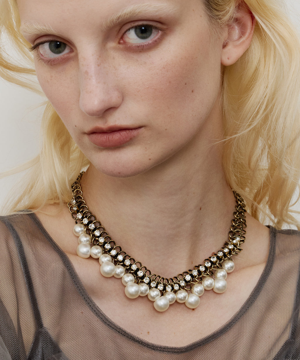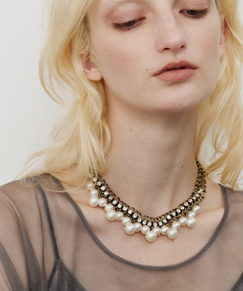 ビジューやパールを組み合わせたボリュームのあるネックレス。