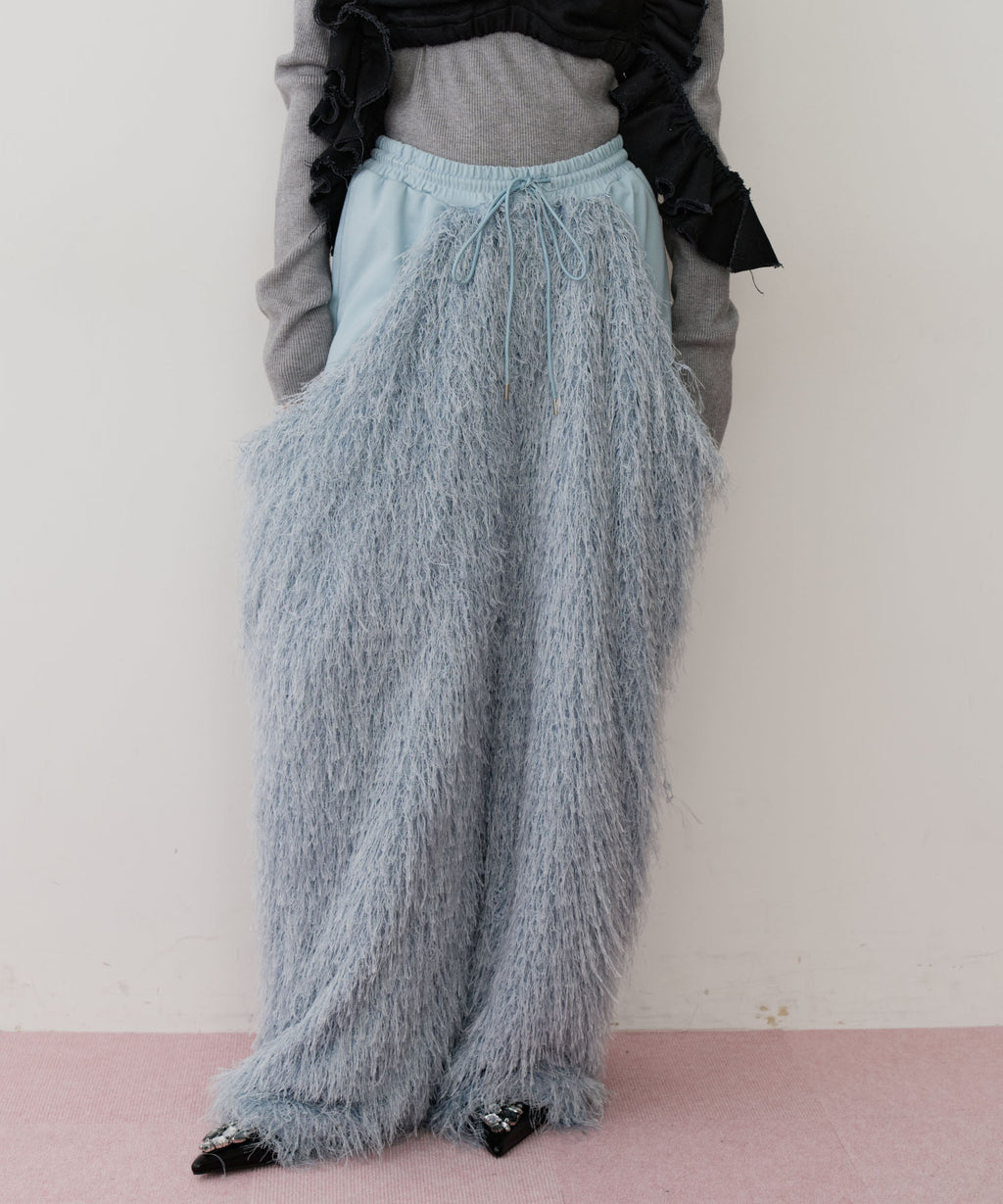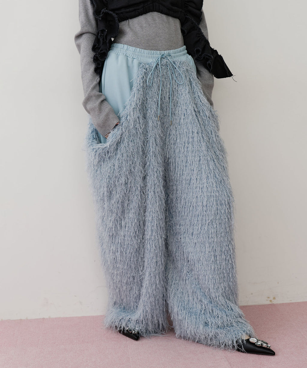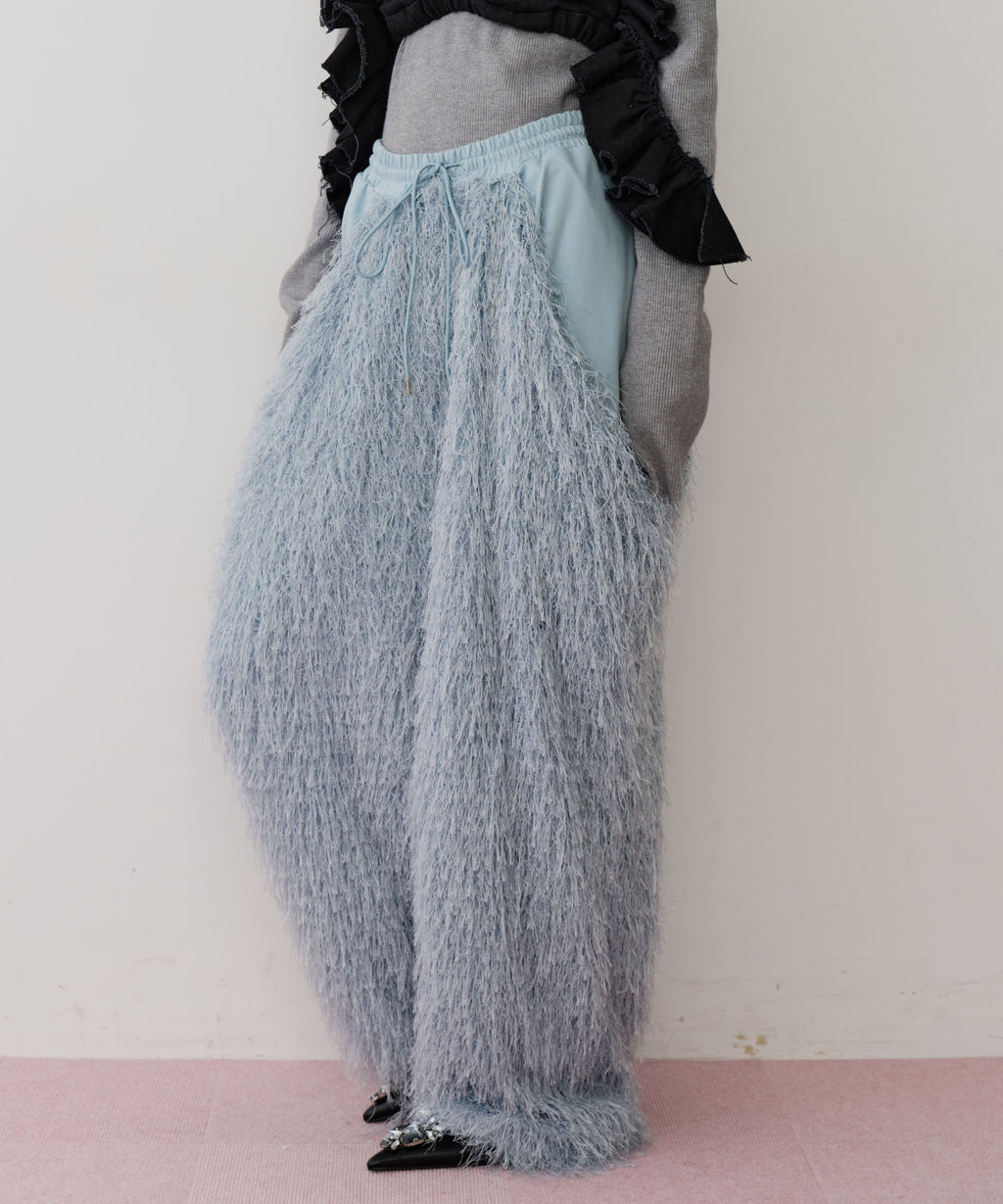 落ち感のあるベース生地に、フリンジ生地をドッキング。