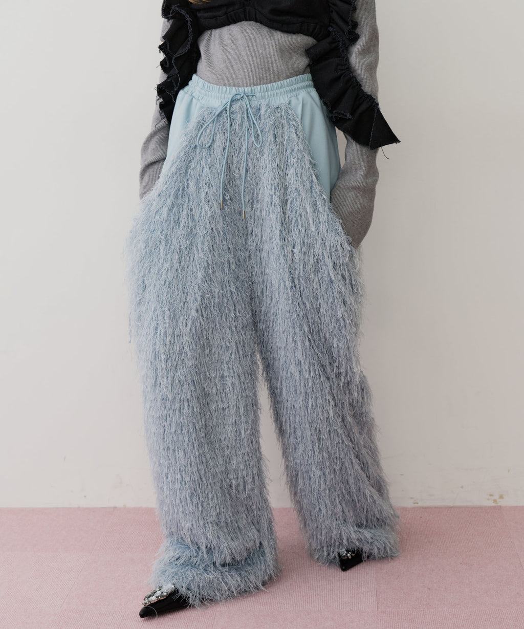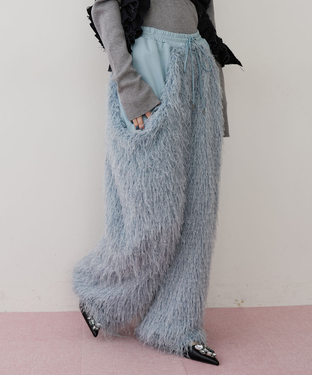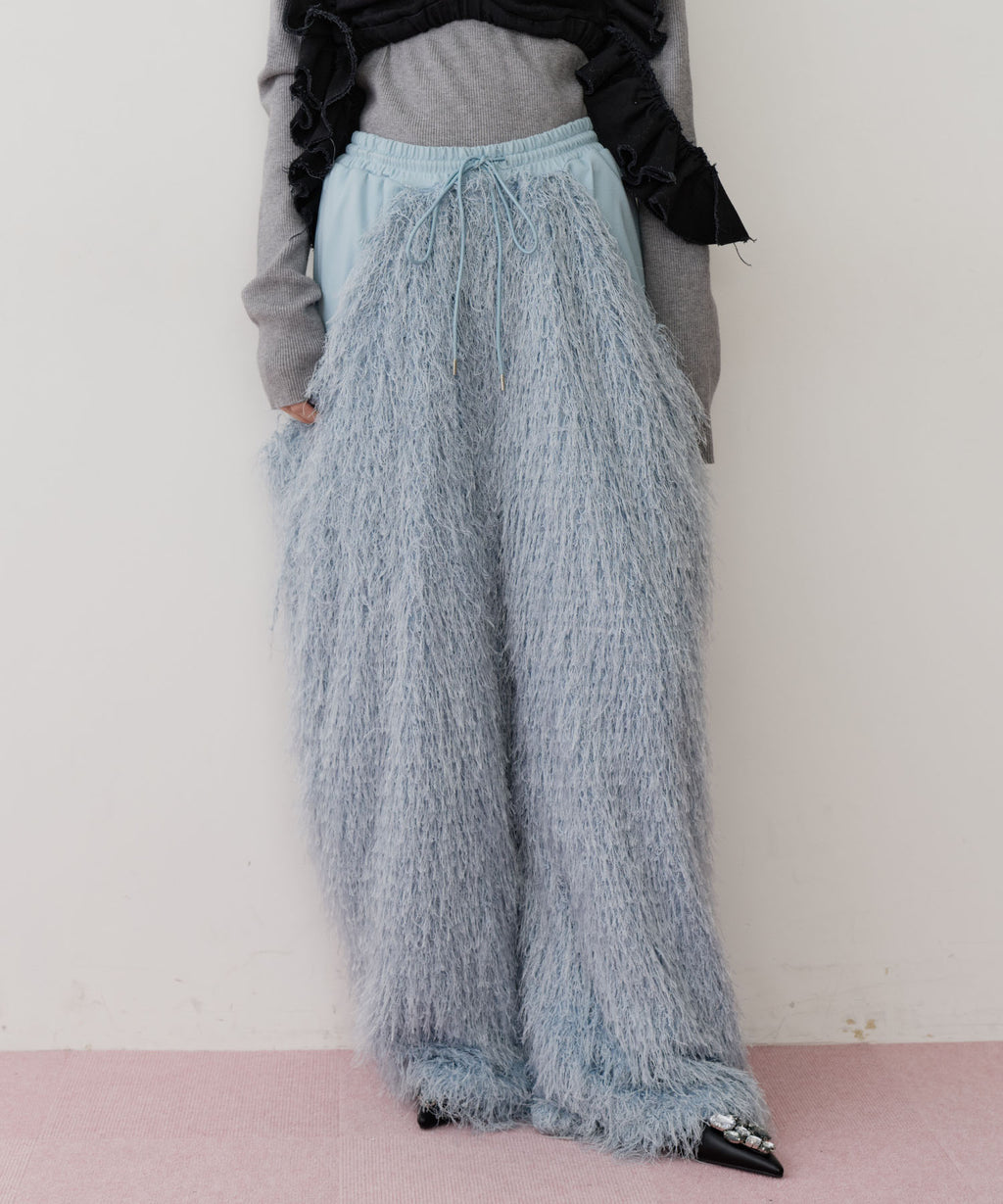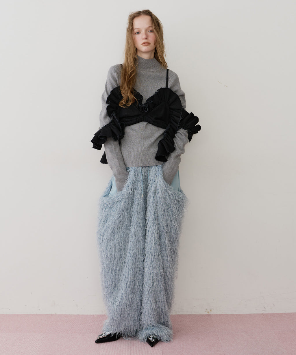 落ち感のあるベース生地に、フリンジ生地をドッキング。