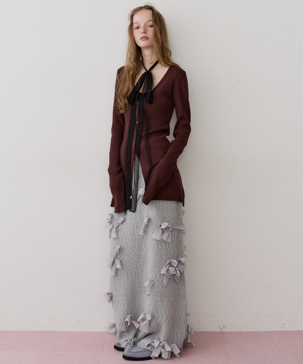 思い切ったロングデザインがポイントで蝶々結びにしたり、片結びにしたり、結び目を後ろ側に持ってきたりと、付け方をアレンジして楽しめるアイテムです。