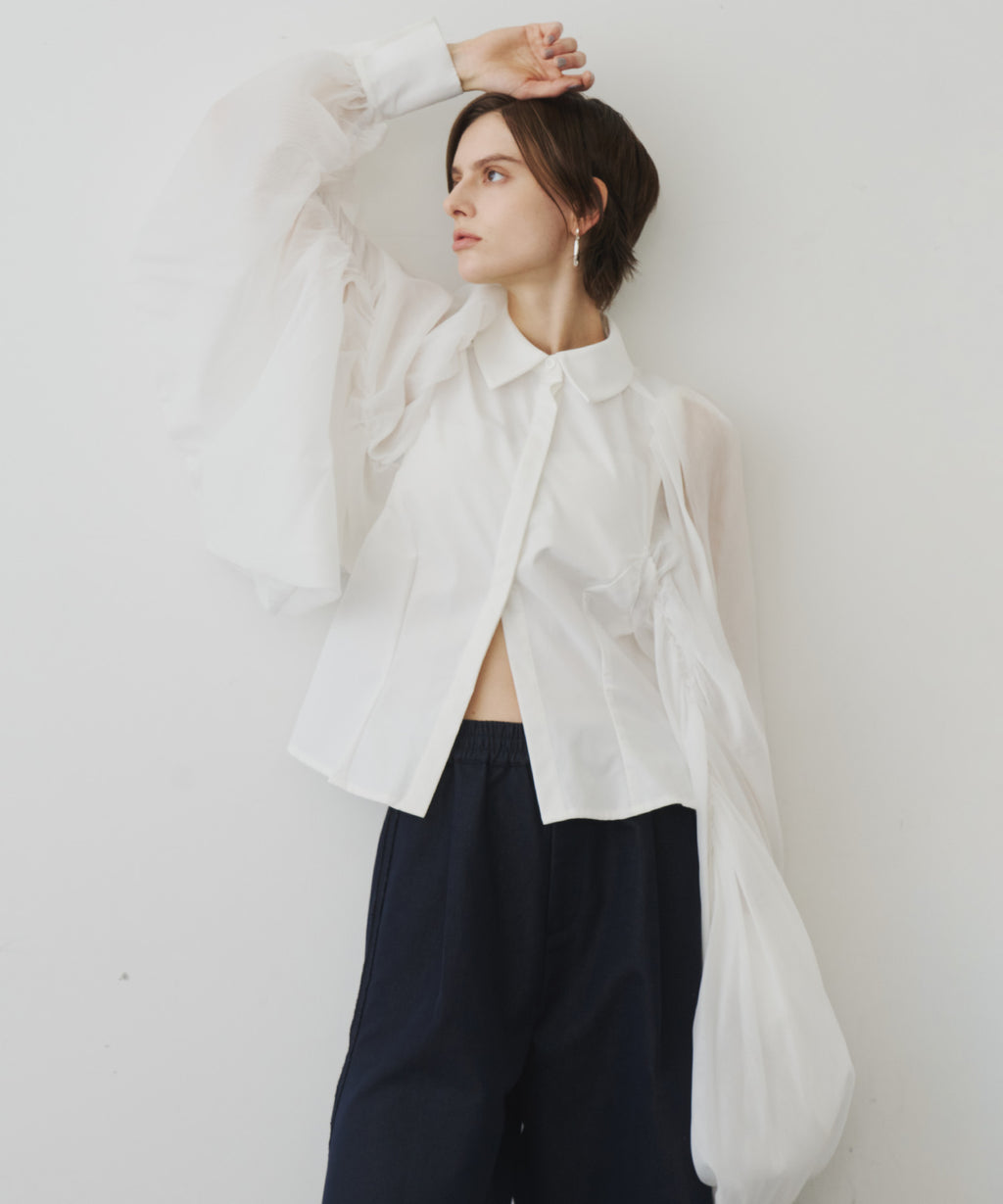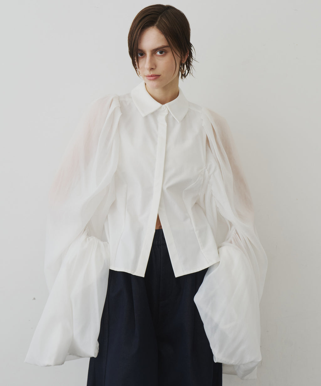 羽のように軽く、オーガンジーを使用したボリュームたっぷりな袖がポイント。