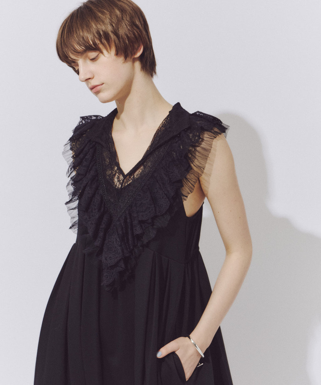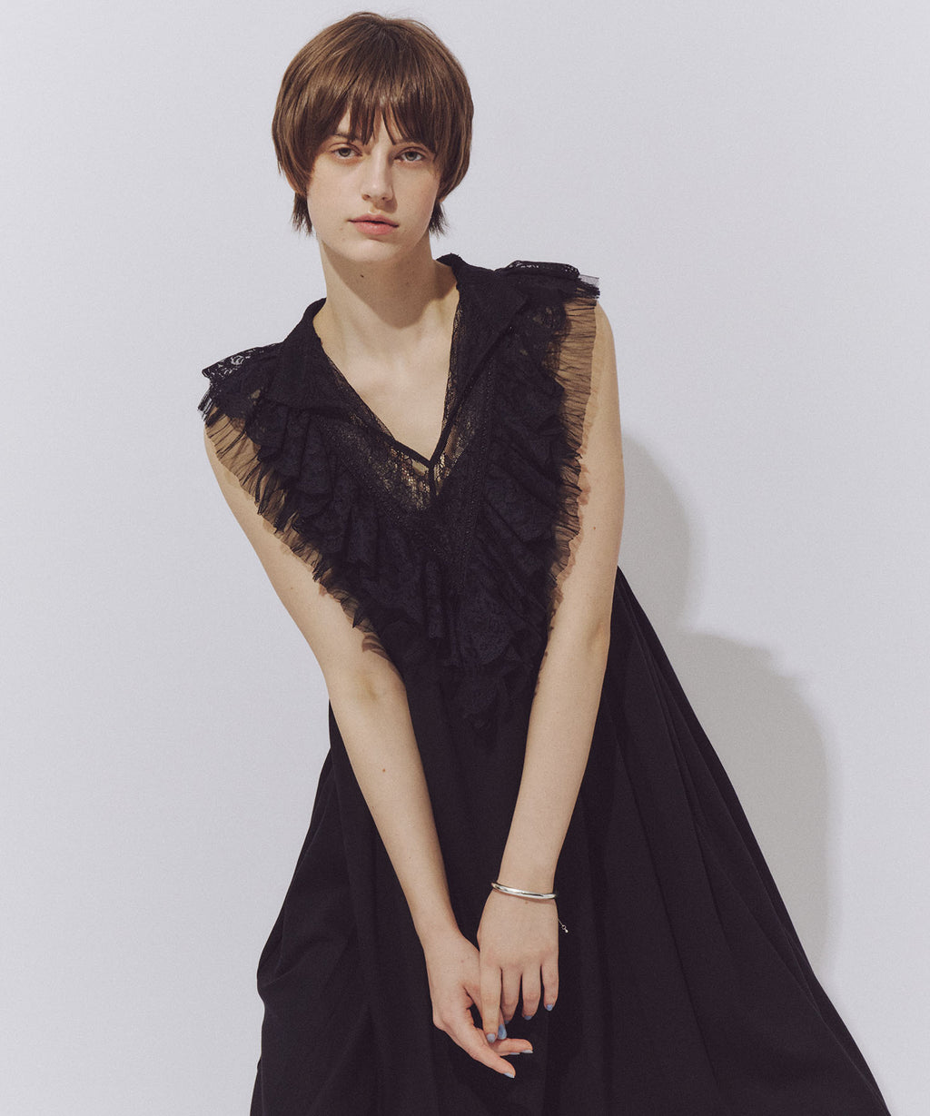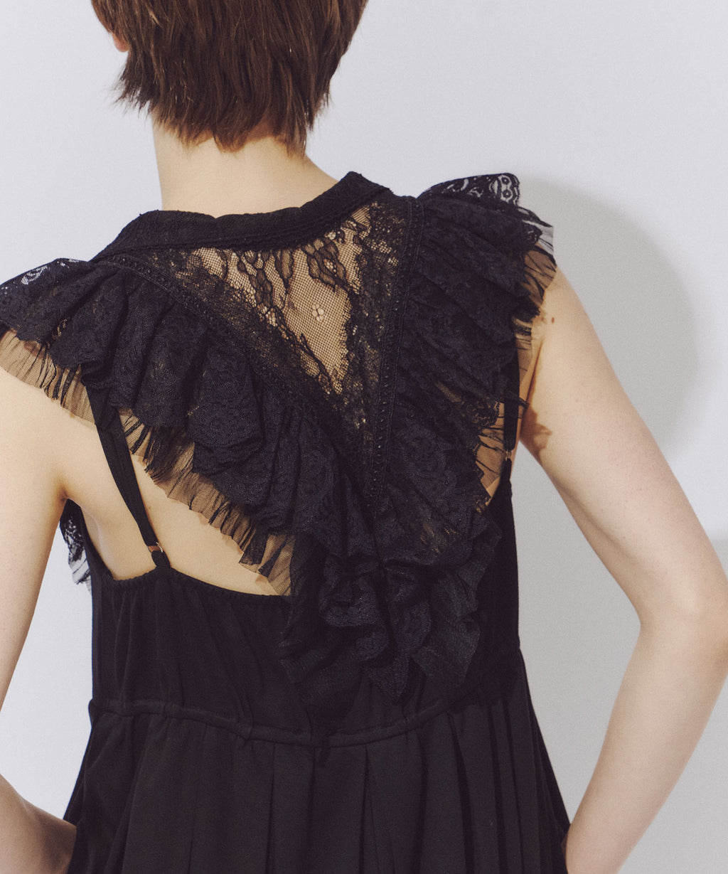 前後ざっくりと開けたVラインのレースの透け感がポイント。