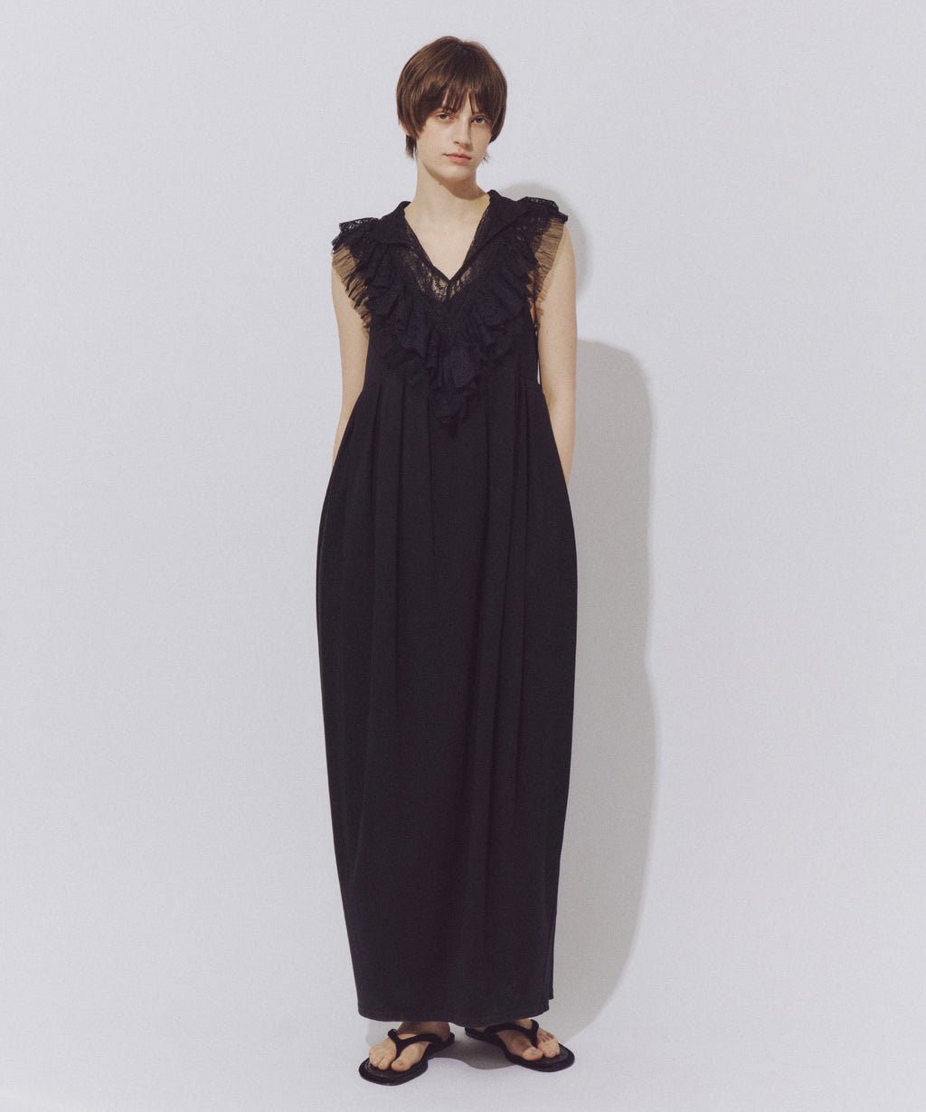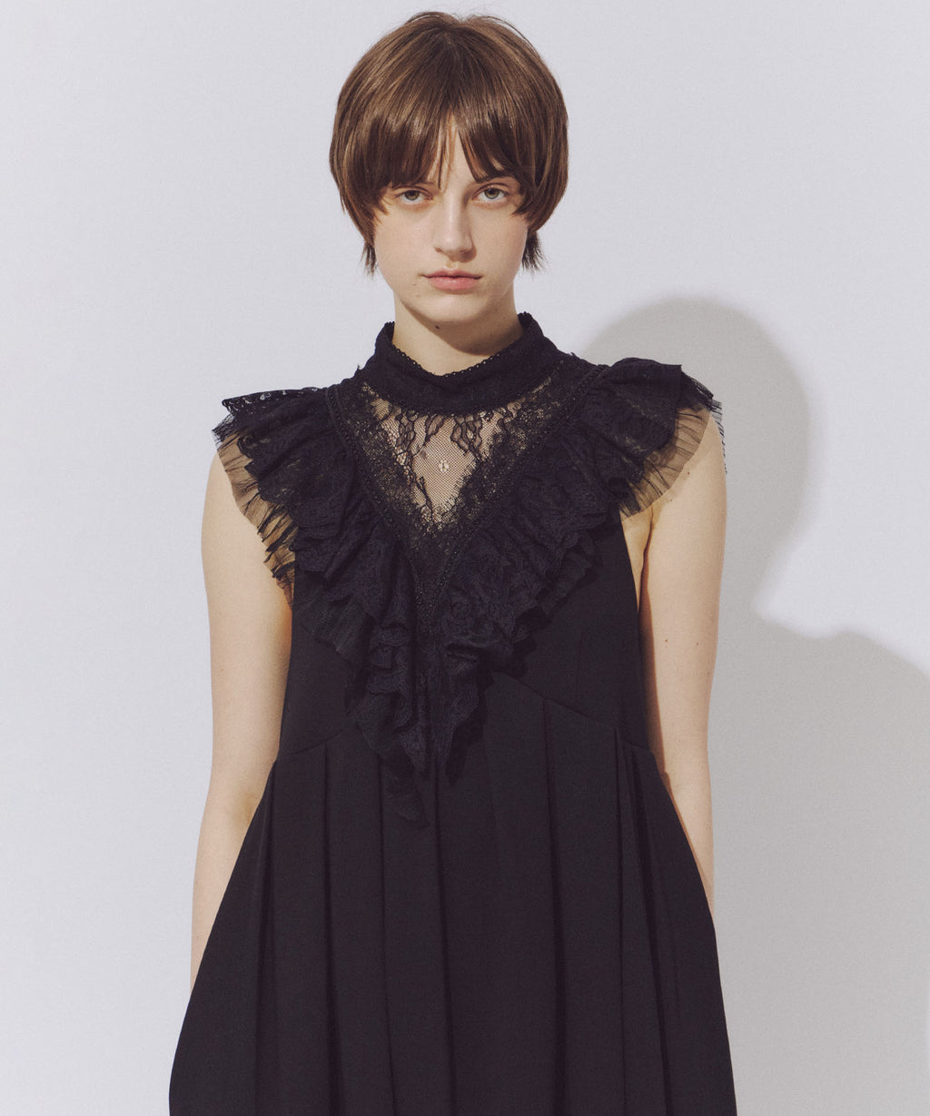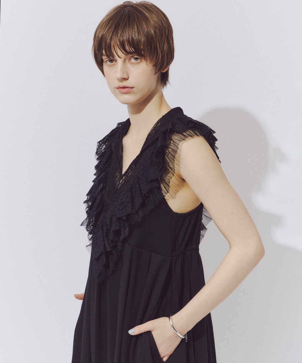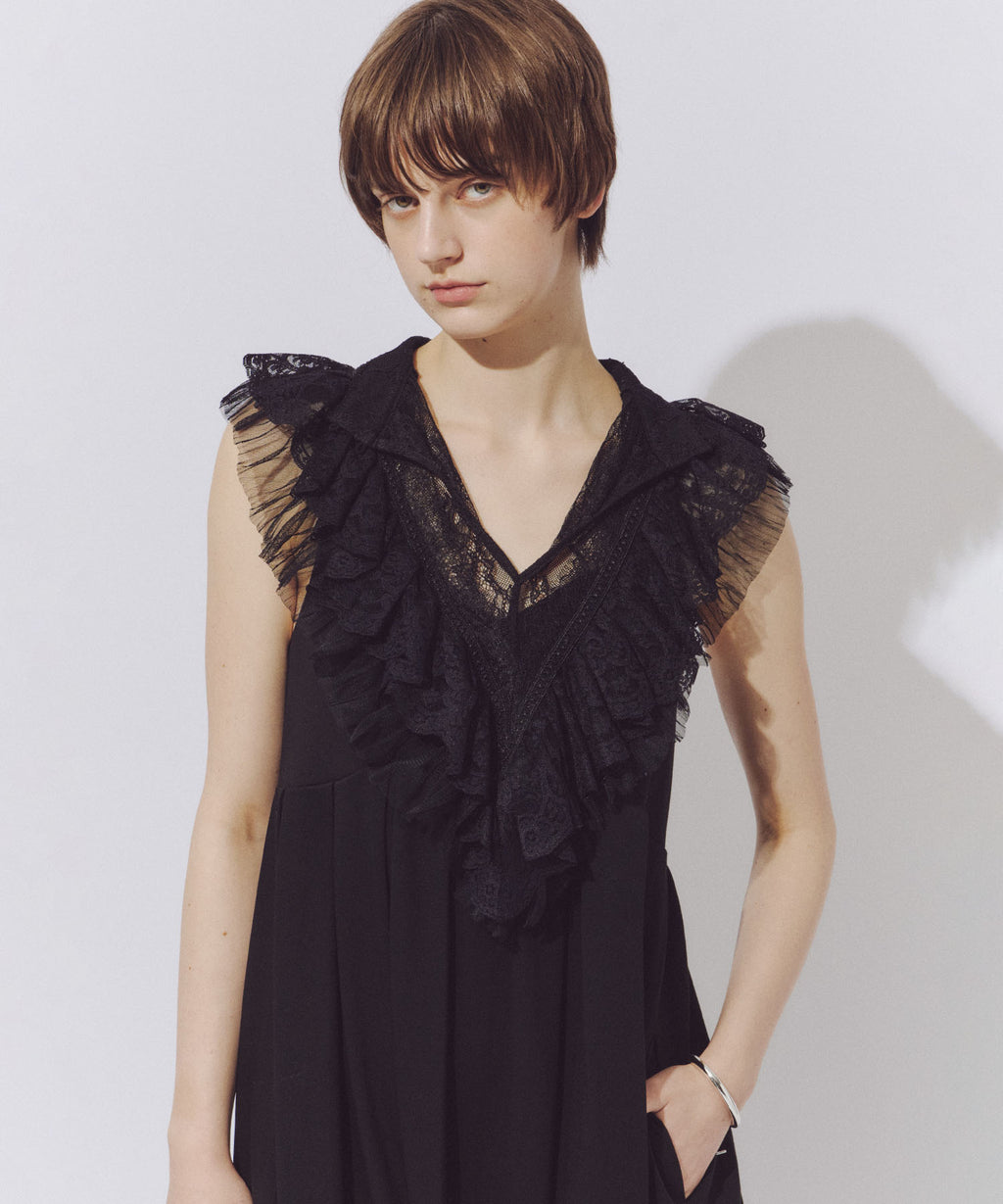 前後ざっくりと開けたVラインのレースの透け感がポイント。