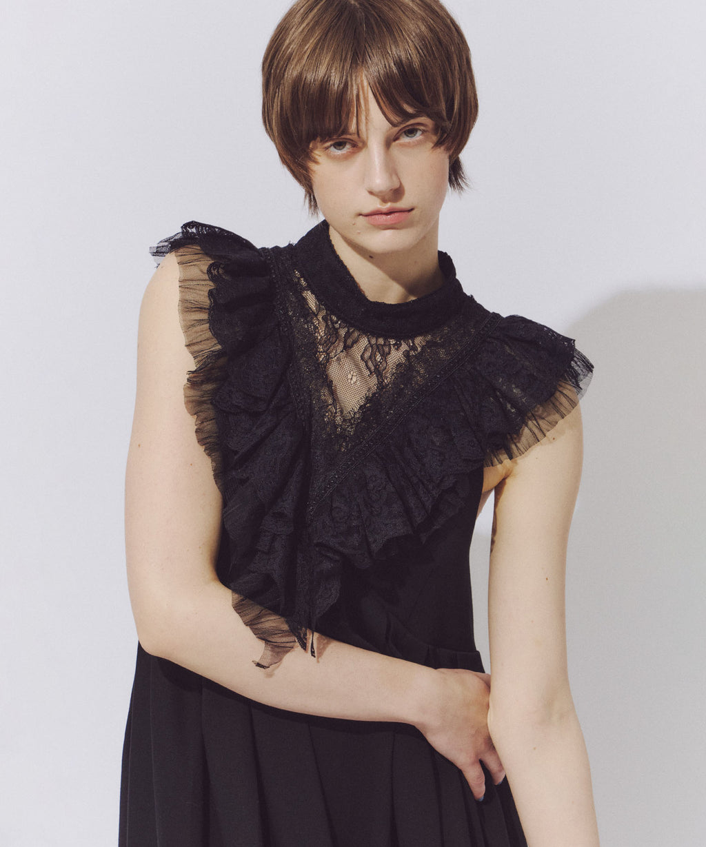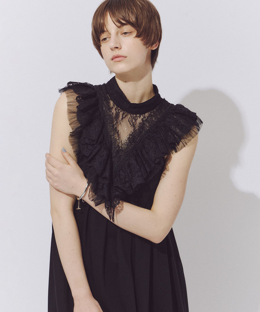 5種類のレースとランダムプリーツをかけたチュールを組み合わせ。