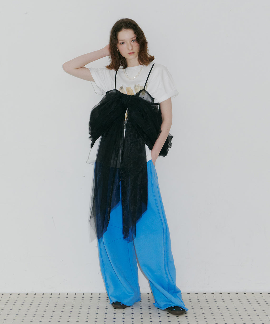 あえてレースやチュールなどのガーリーなアイテムと組み合わても◎