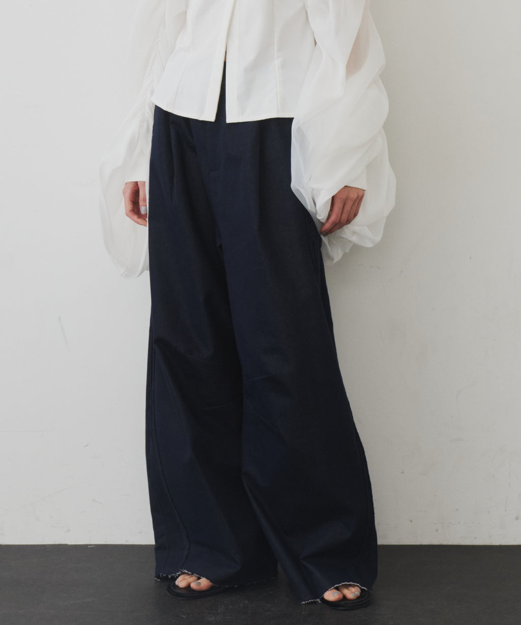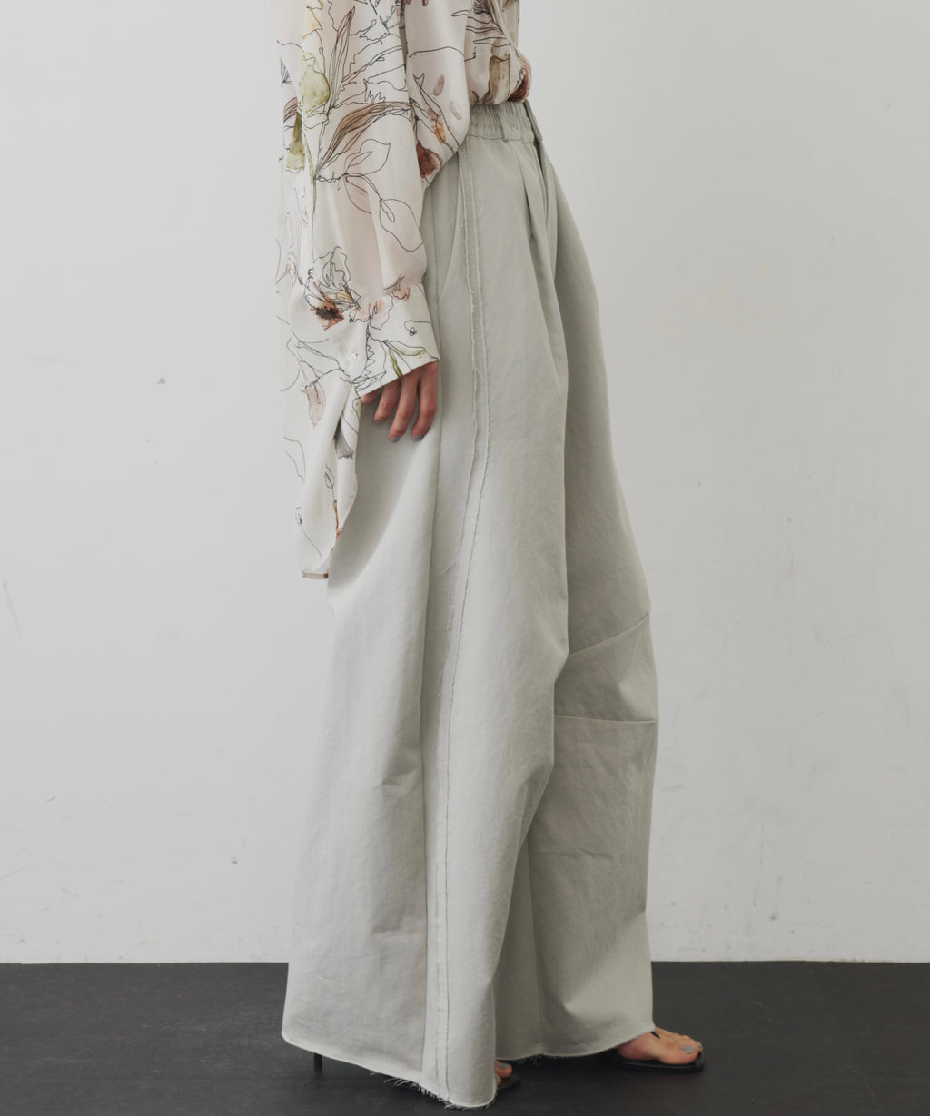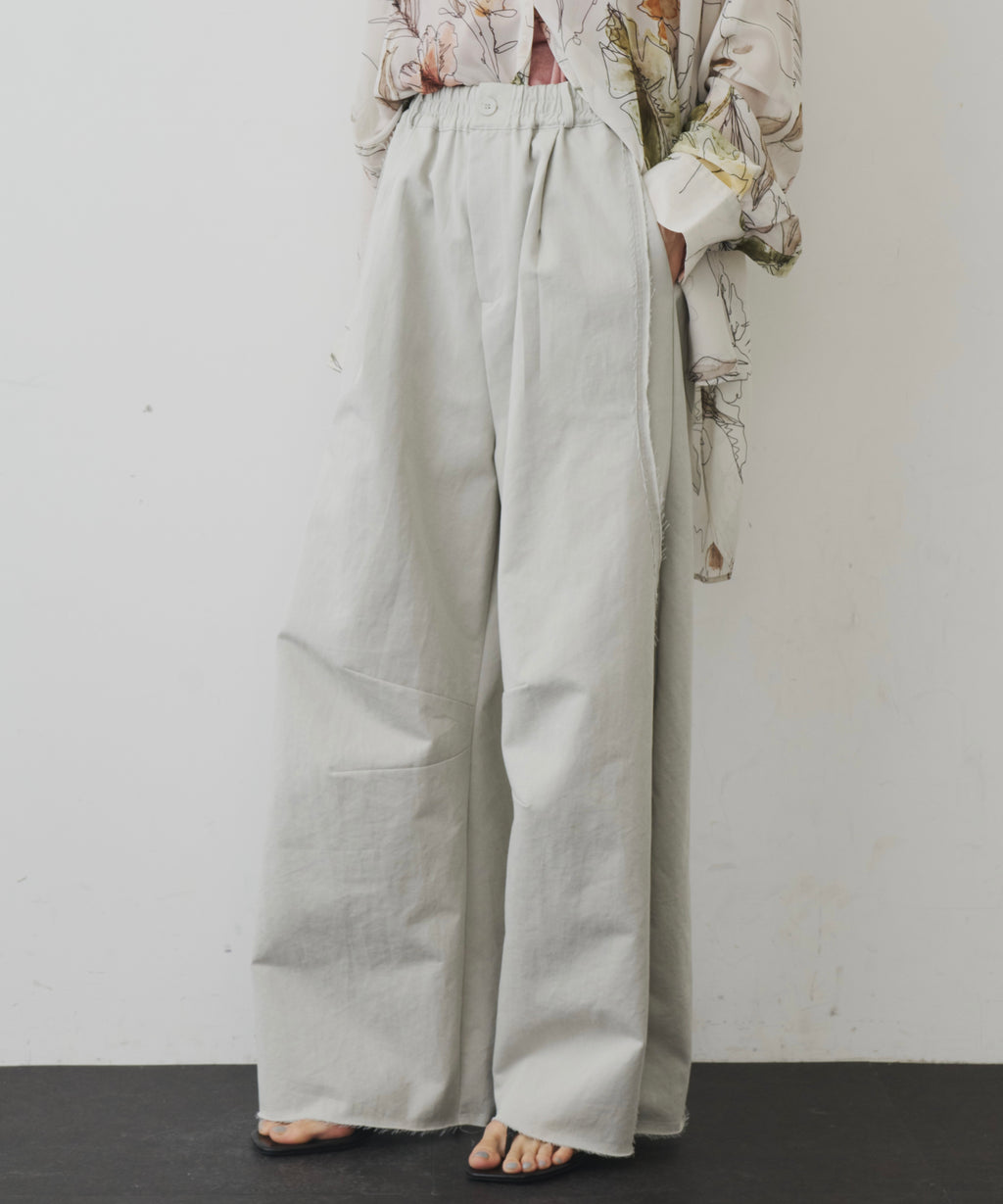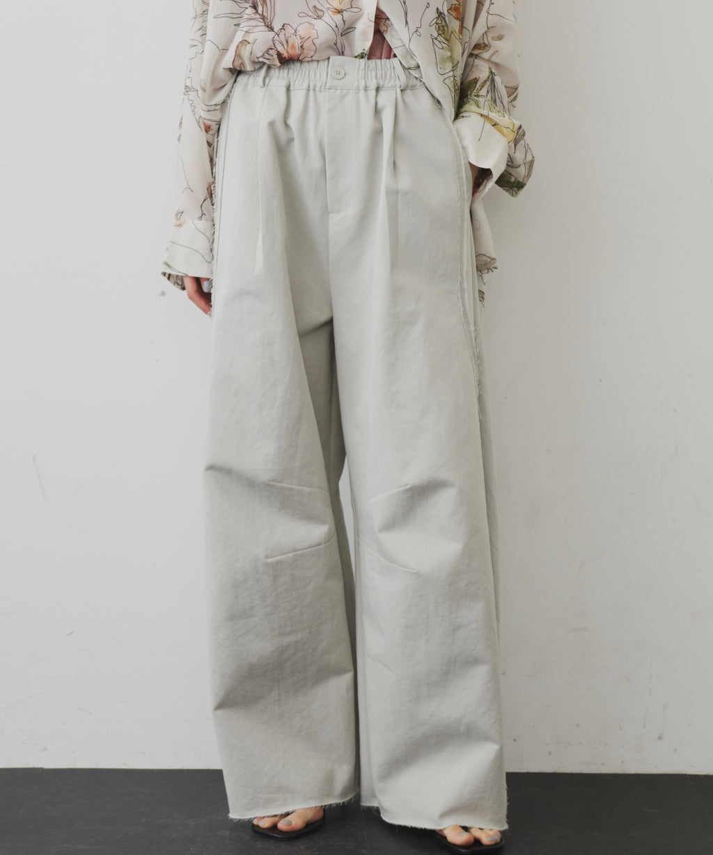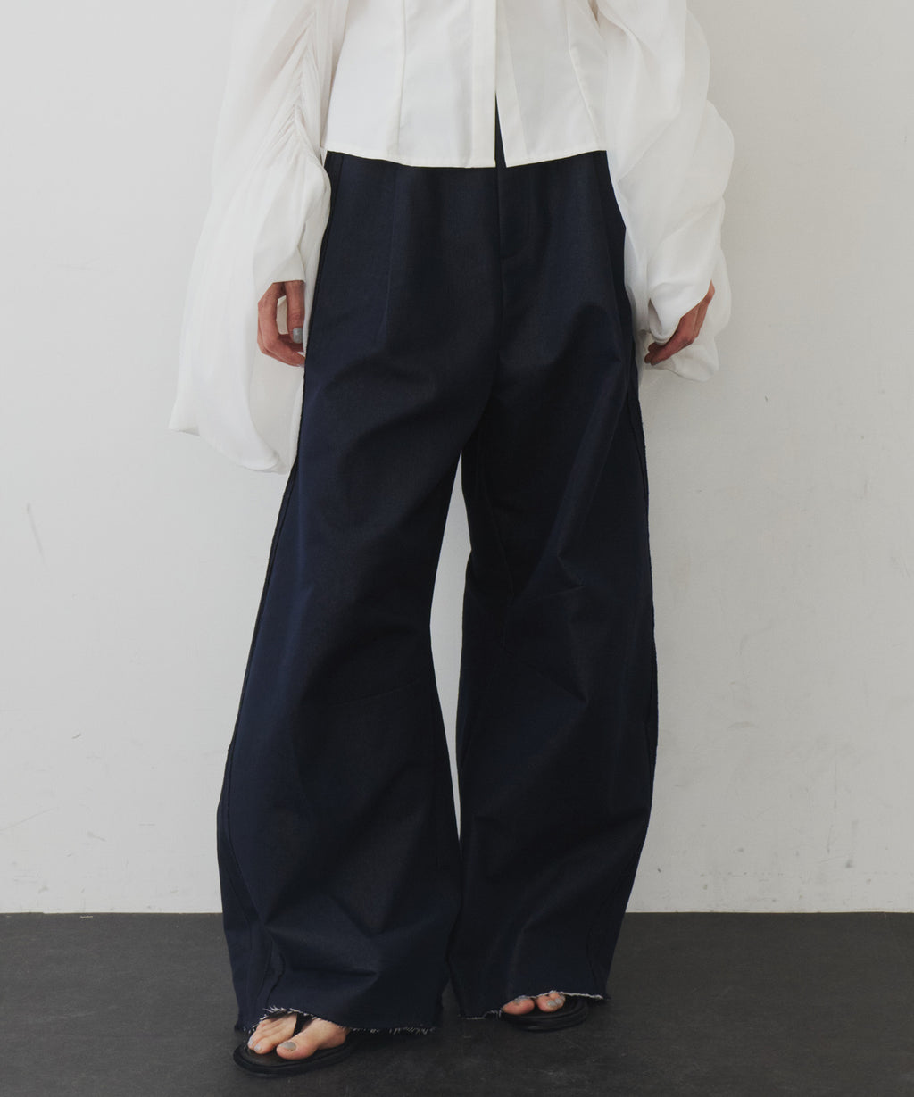 立体的なカーブを描いた、シルエットが魅力のスプリングパンツ。