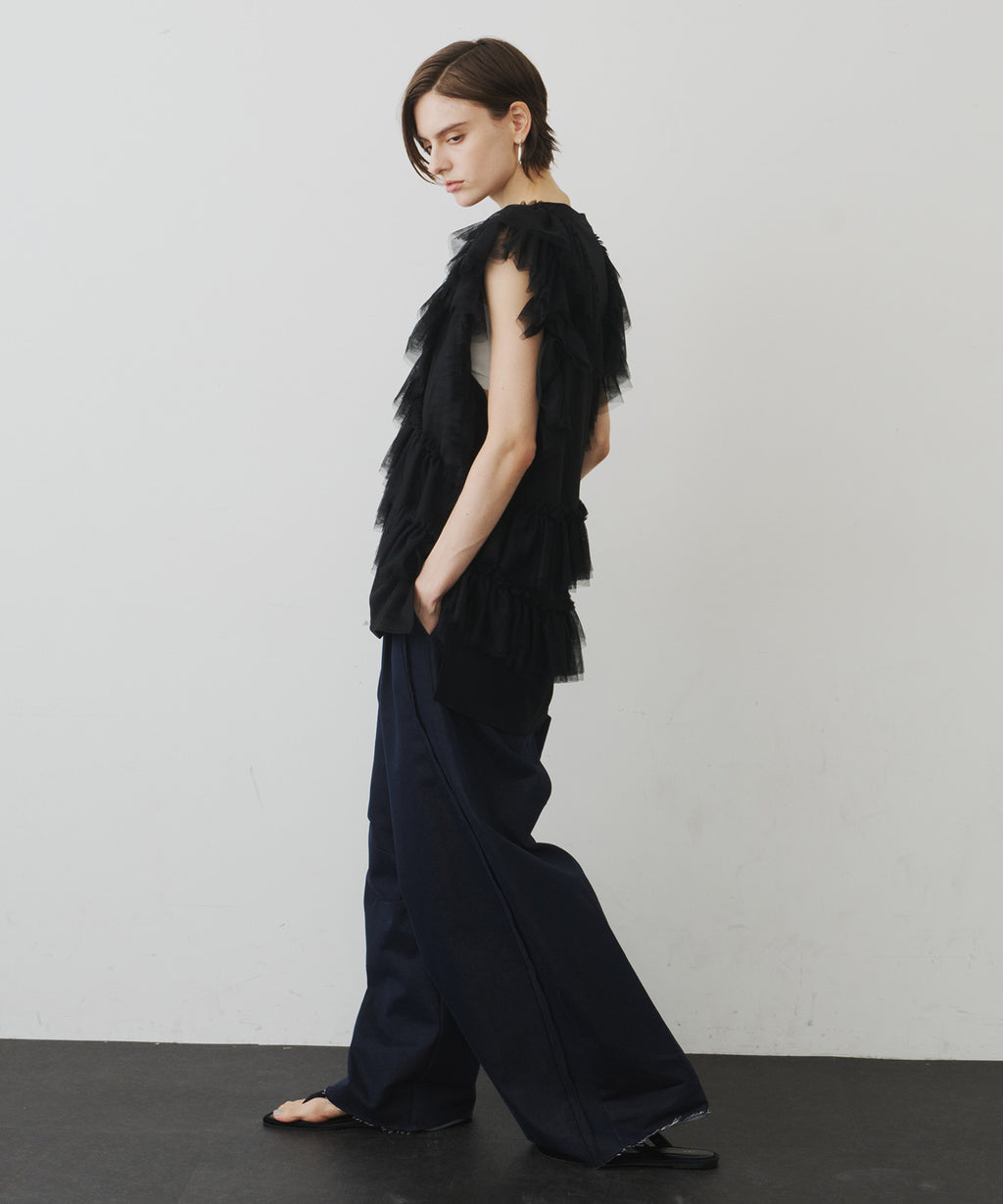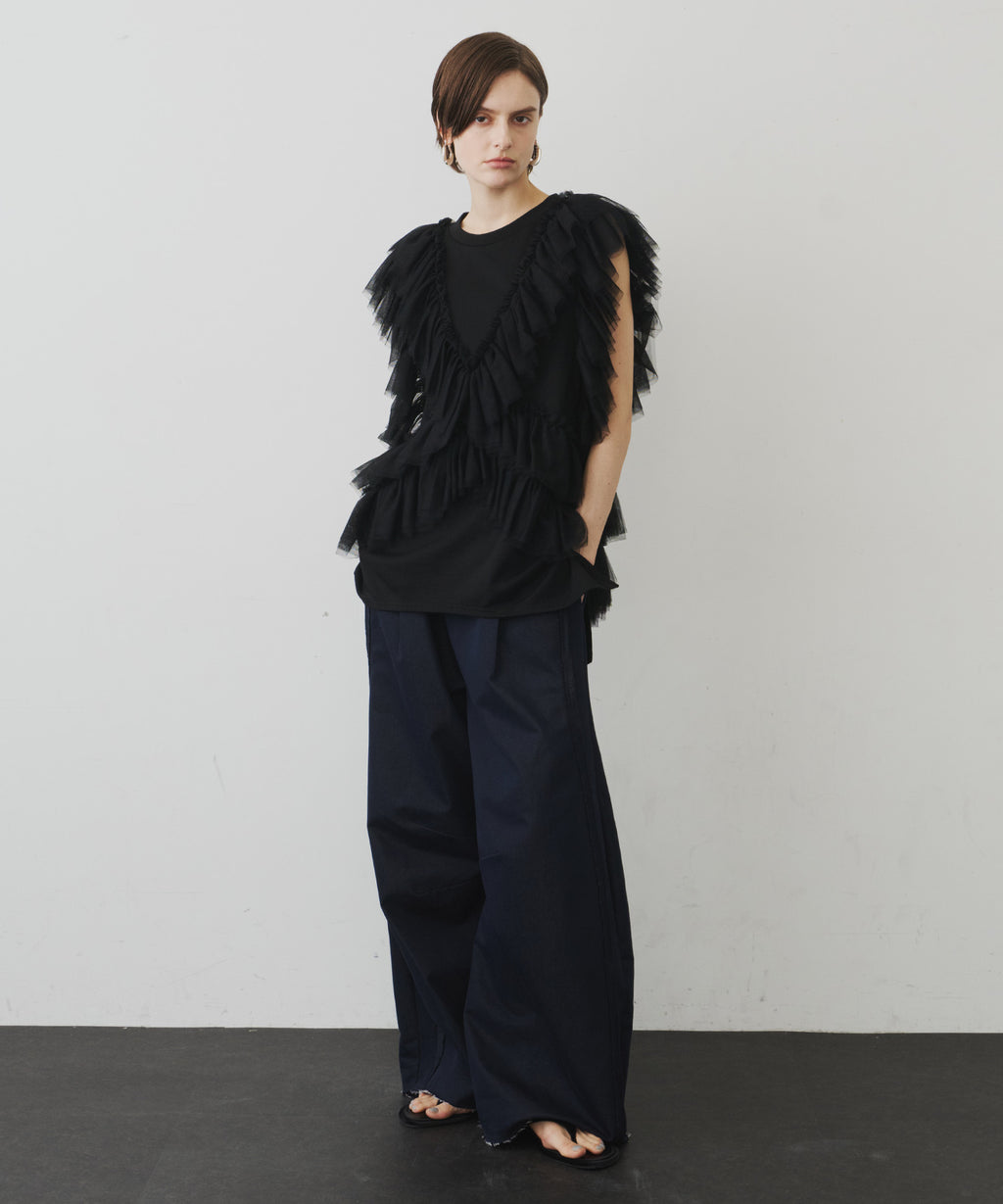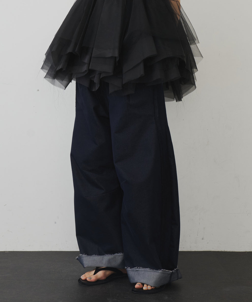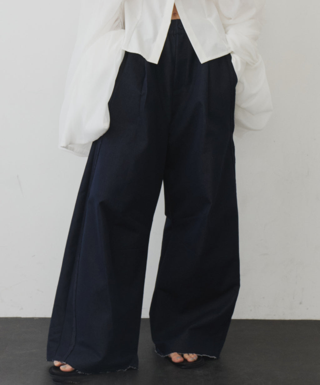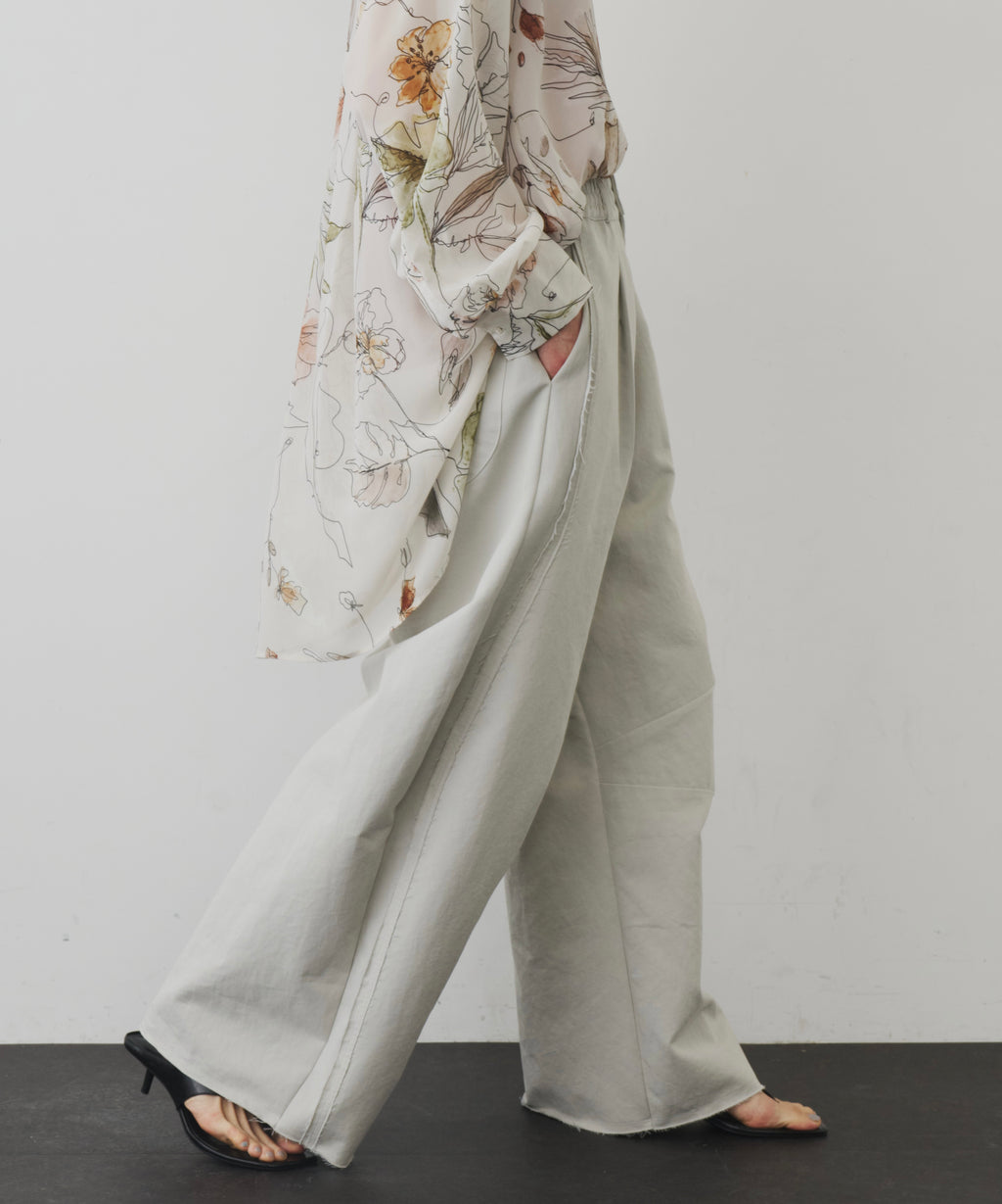 立体的なカーブを描いた、シルエットが魅力のスプリングパンツ。