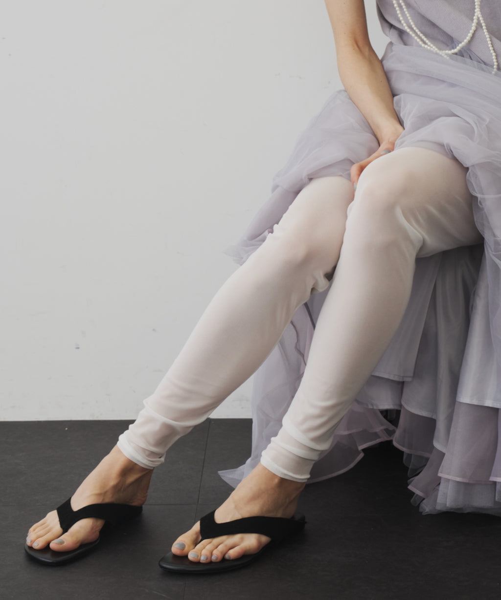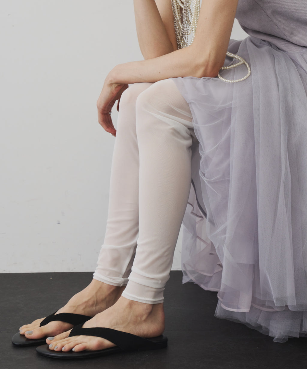 コーディネートに抜け感を与えるトレンドライクなシアーレギンス。