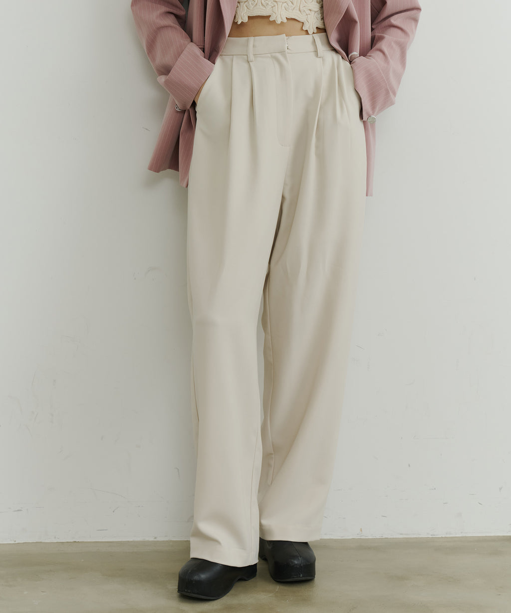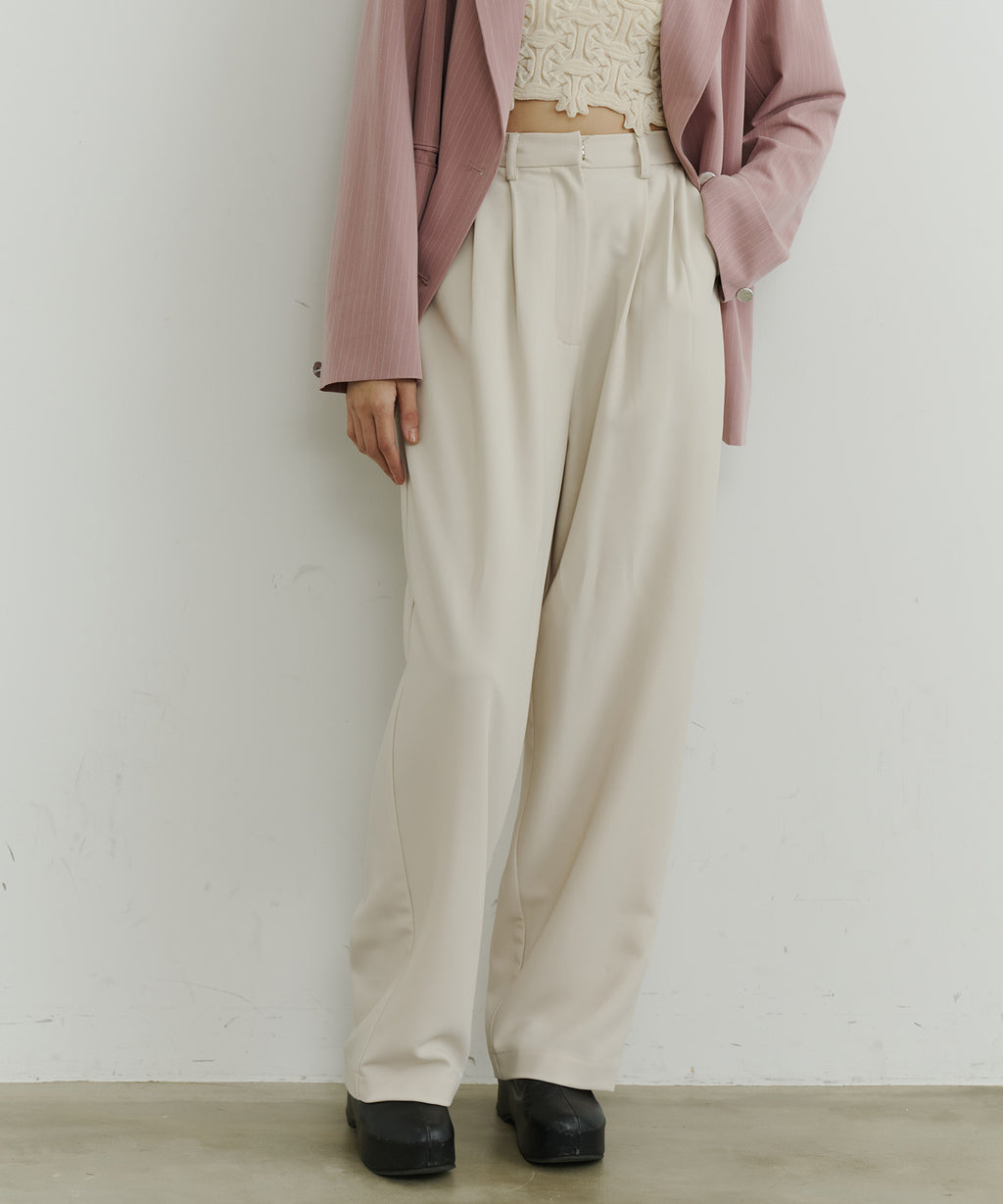 ハイウエスト&後ろのゴム仕様で、お腹まわりはすっきり、程よく落ち感のある素材で、