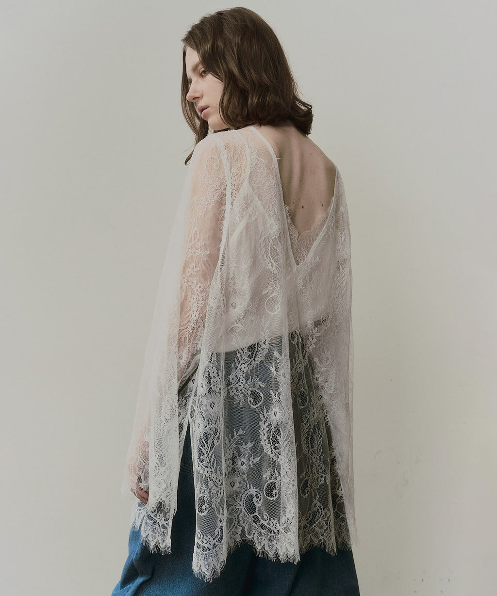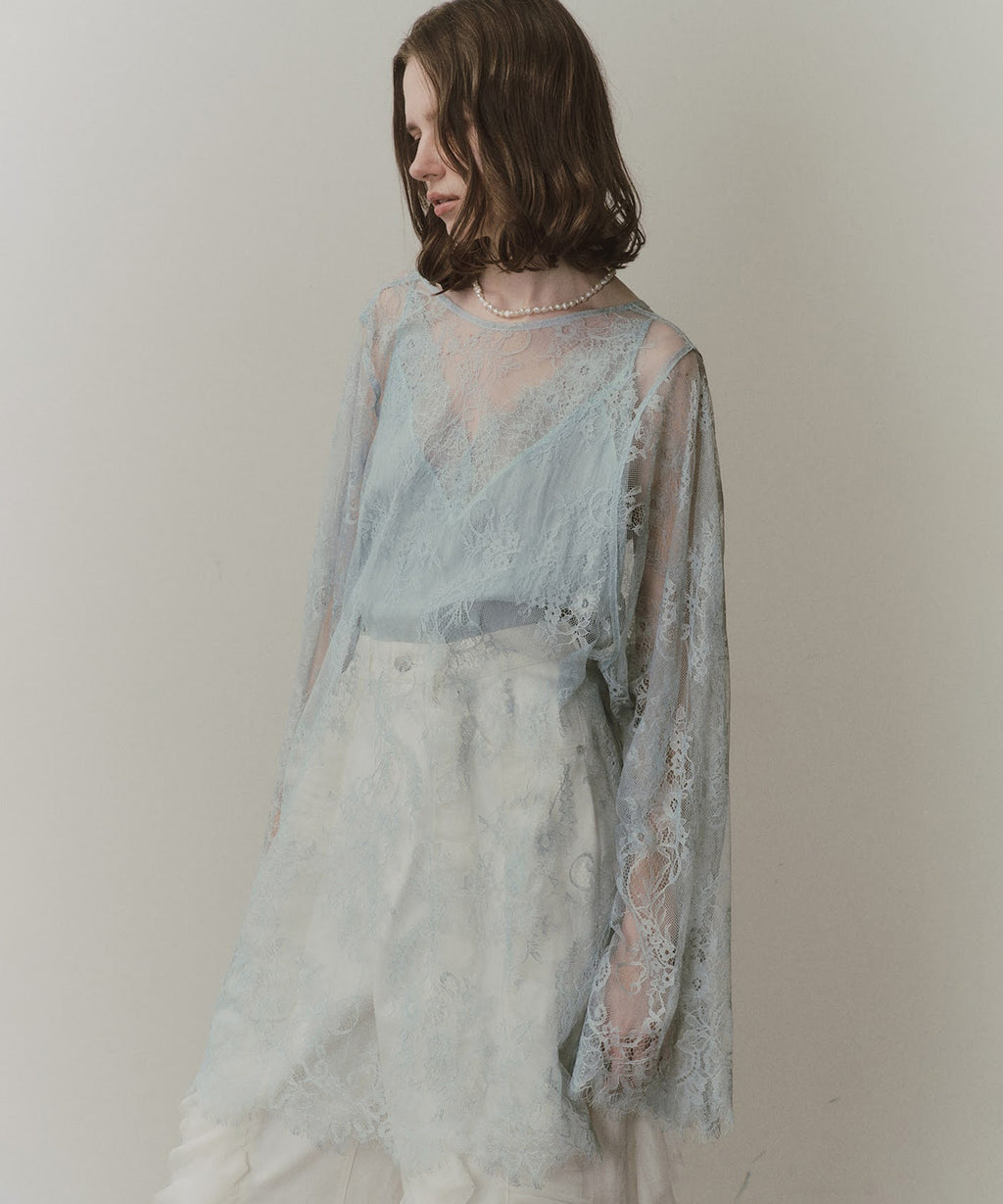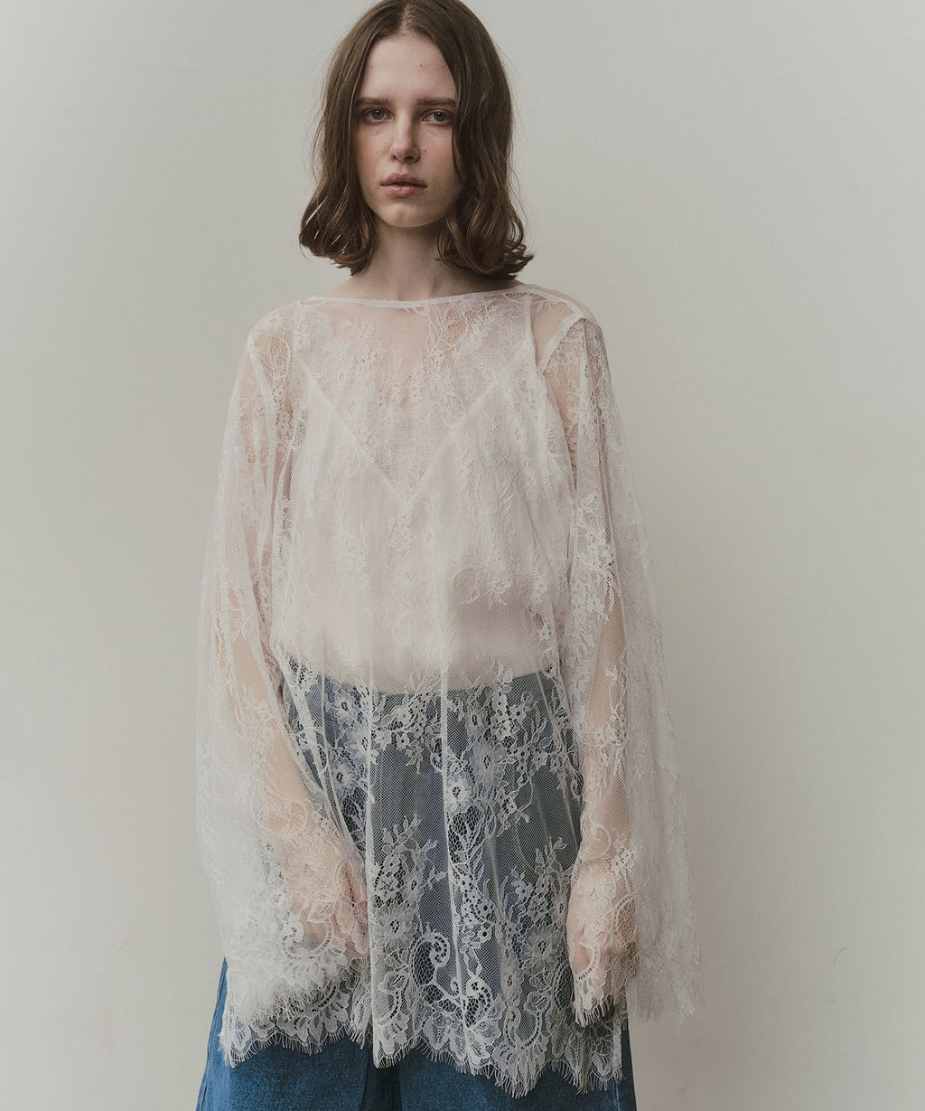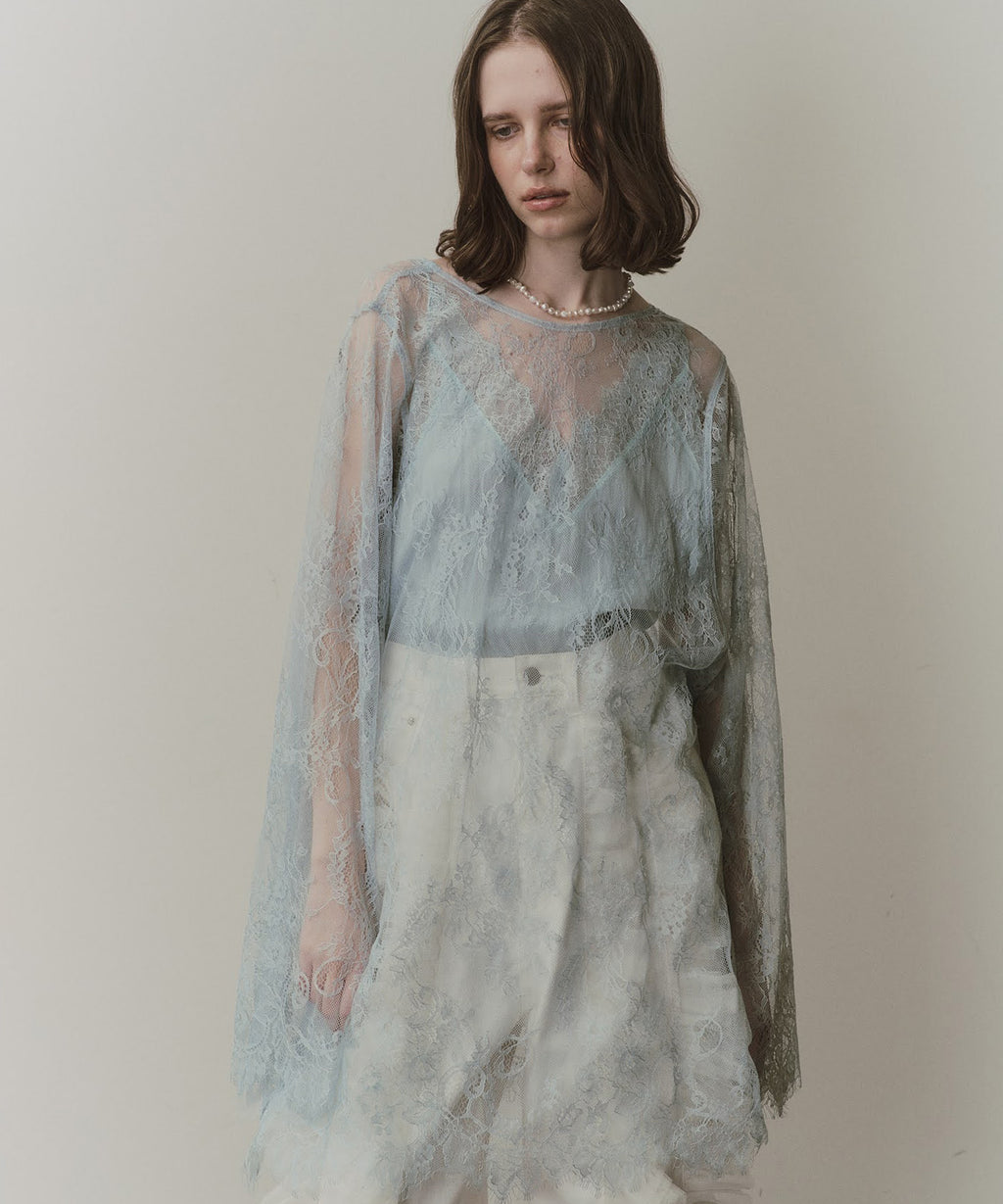 レイヤースタイルにかかせないエアリーなレースブラウス。