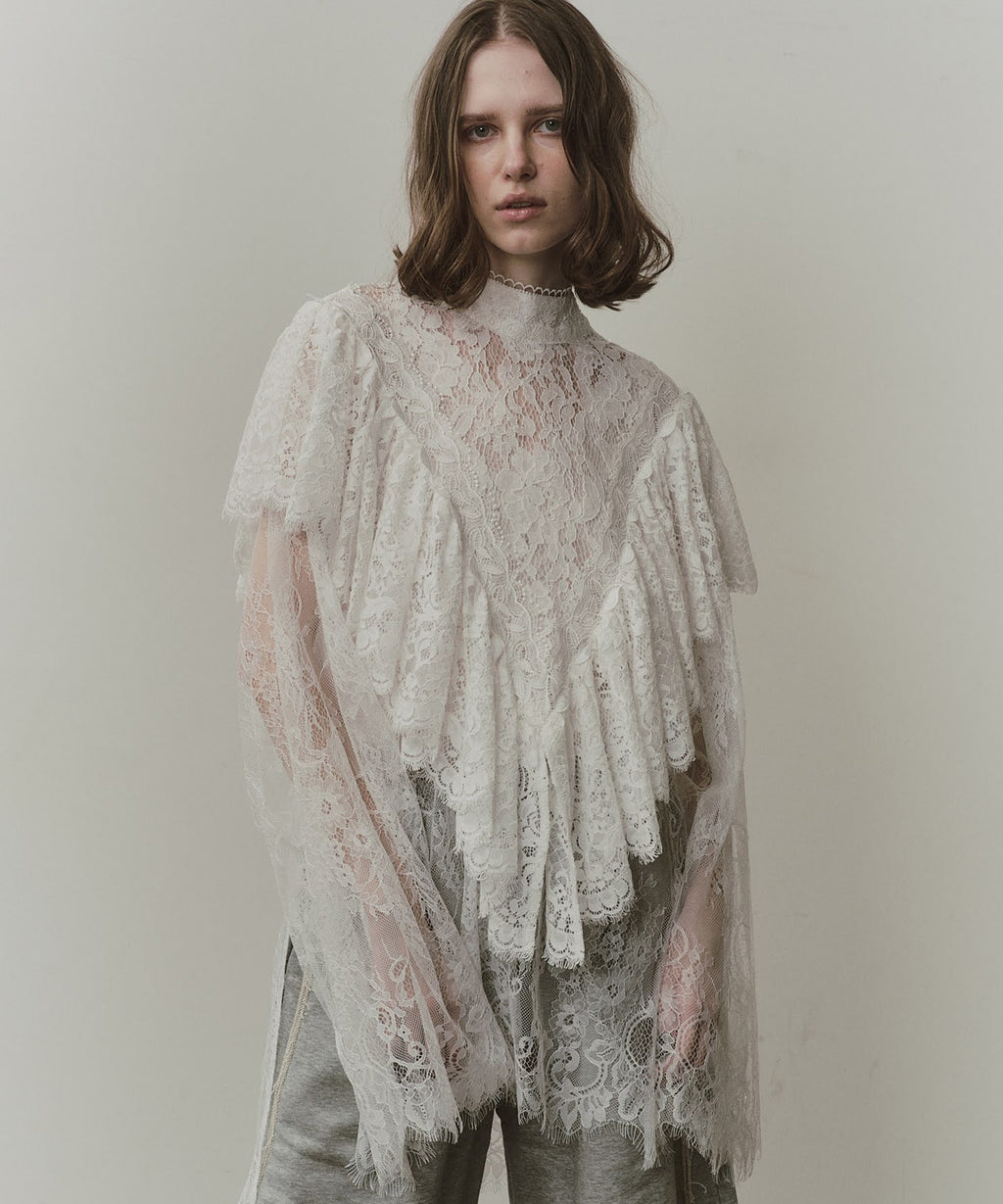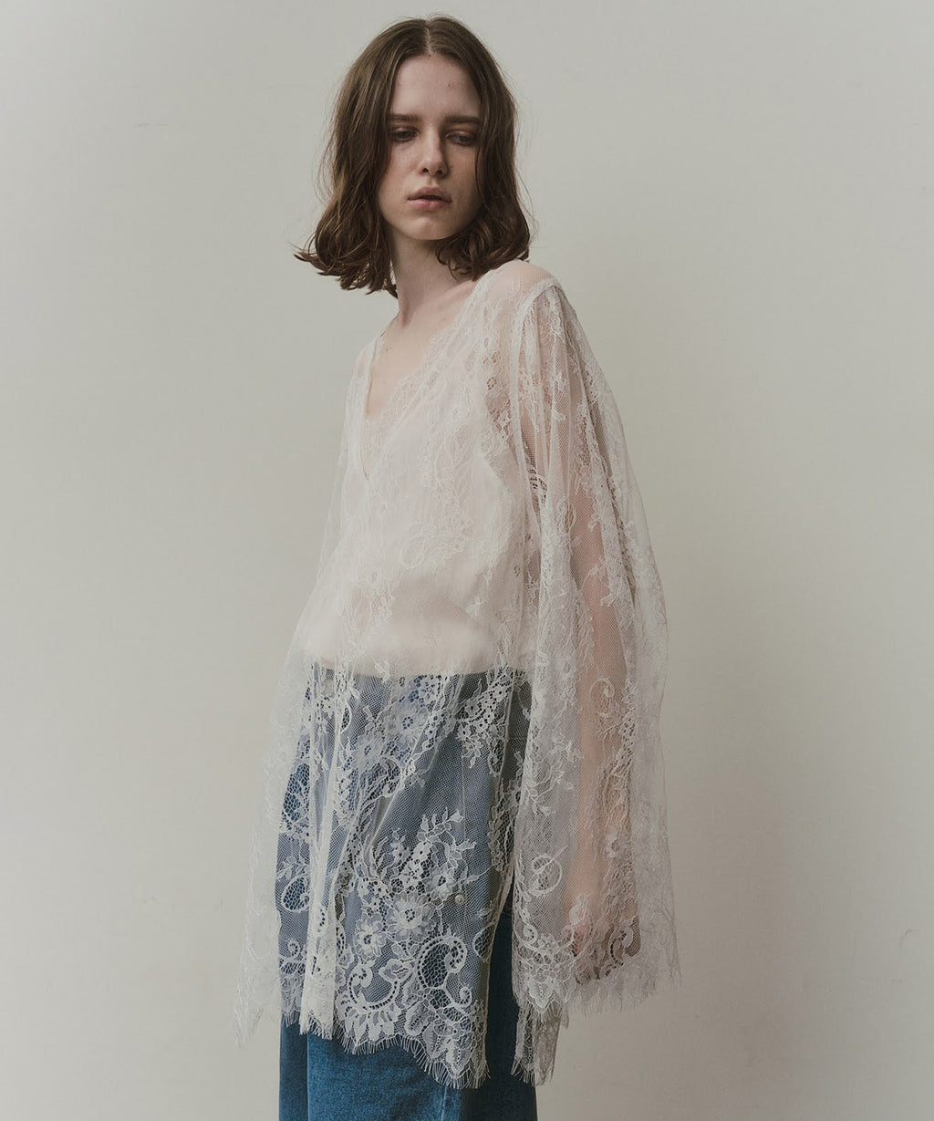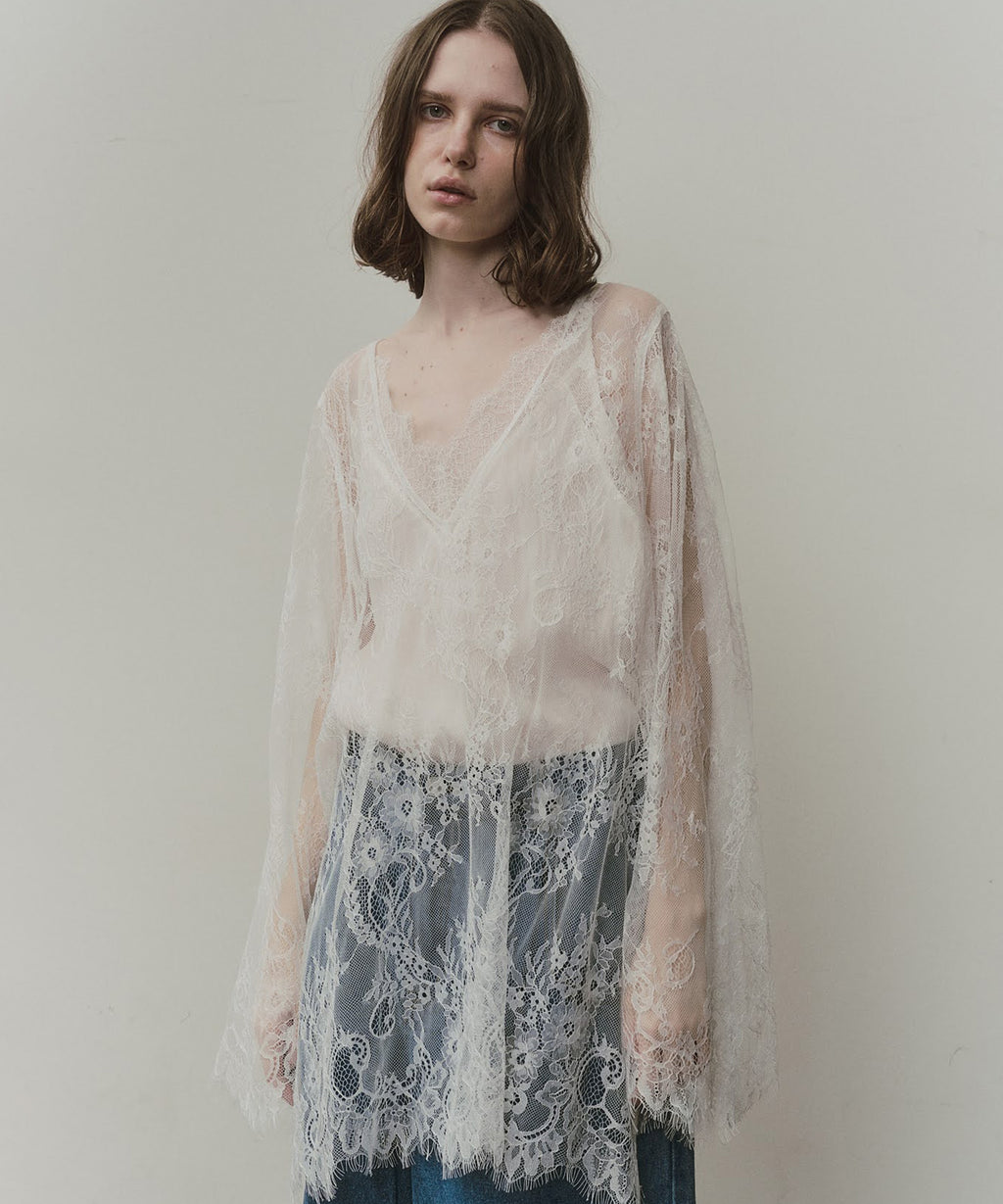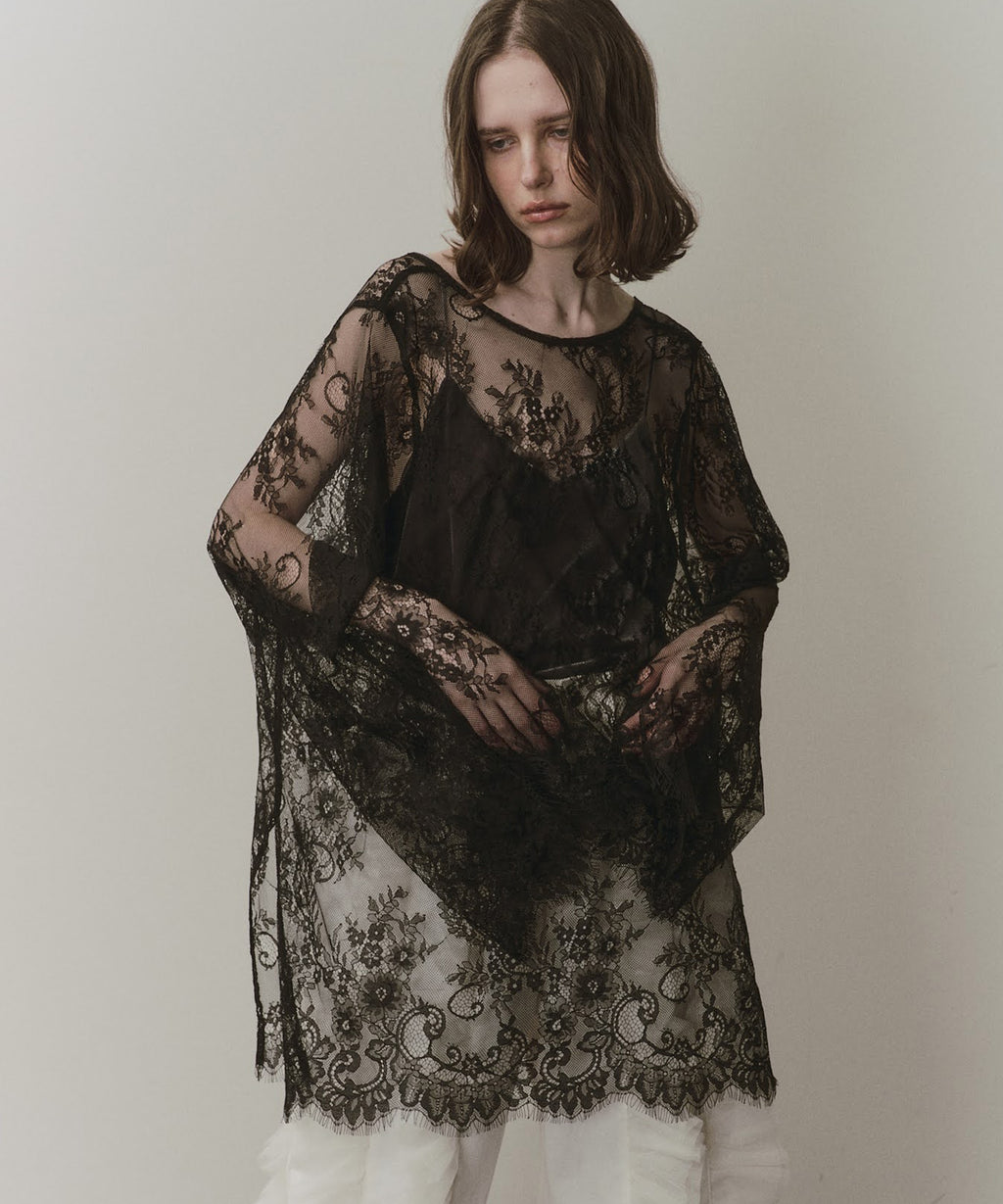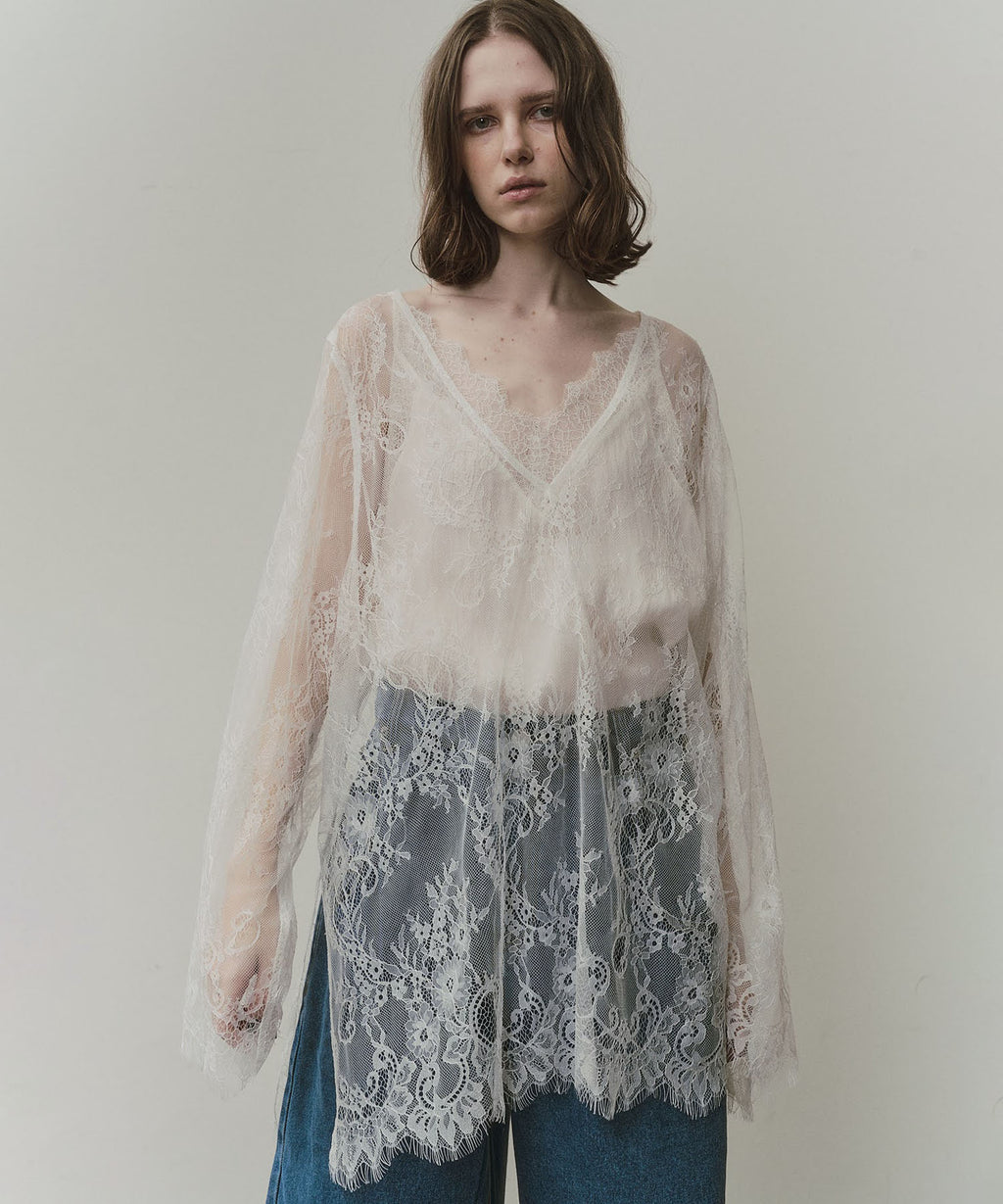 レイヤースタイルにかかせないエアリーなレースブラウス。