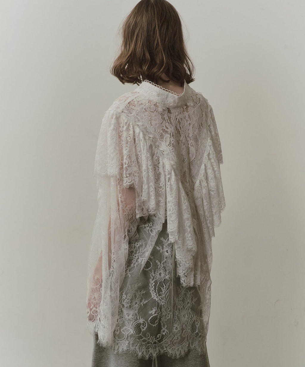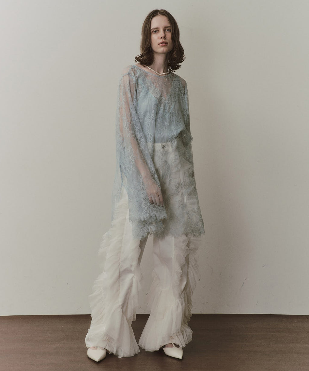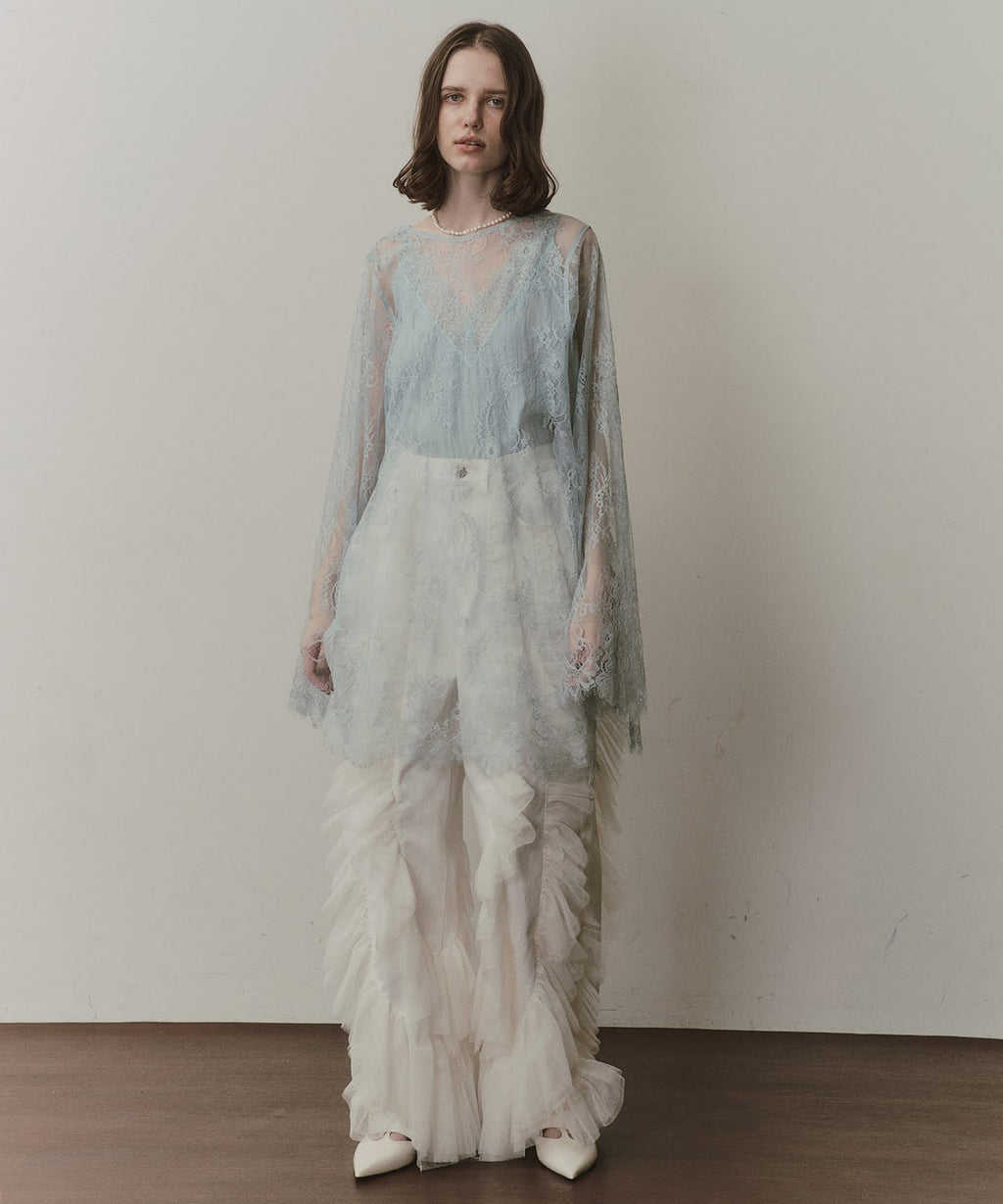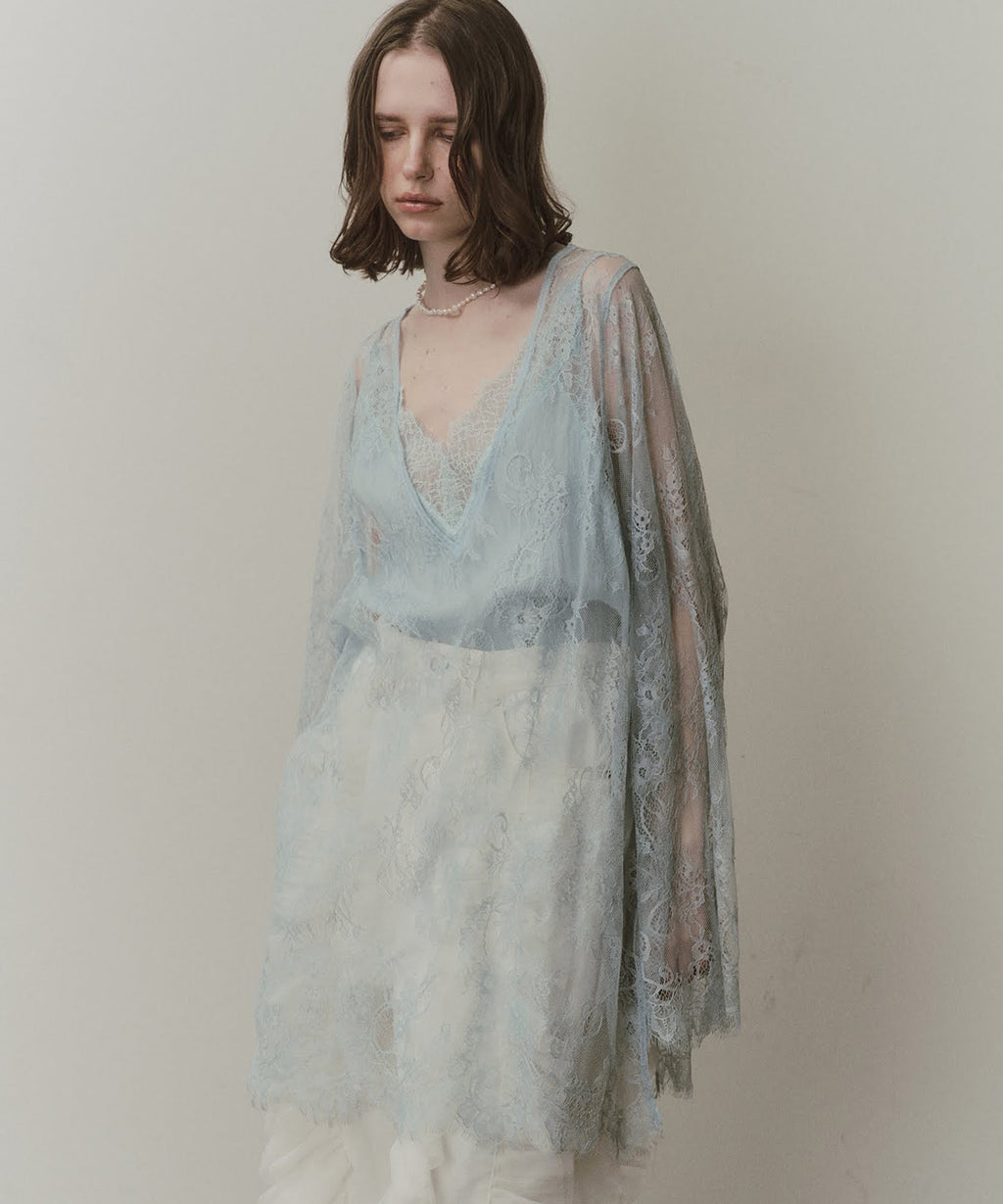 レイヤースタイルにかかせないエアリーなレースブラウス。