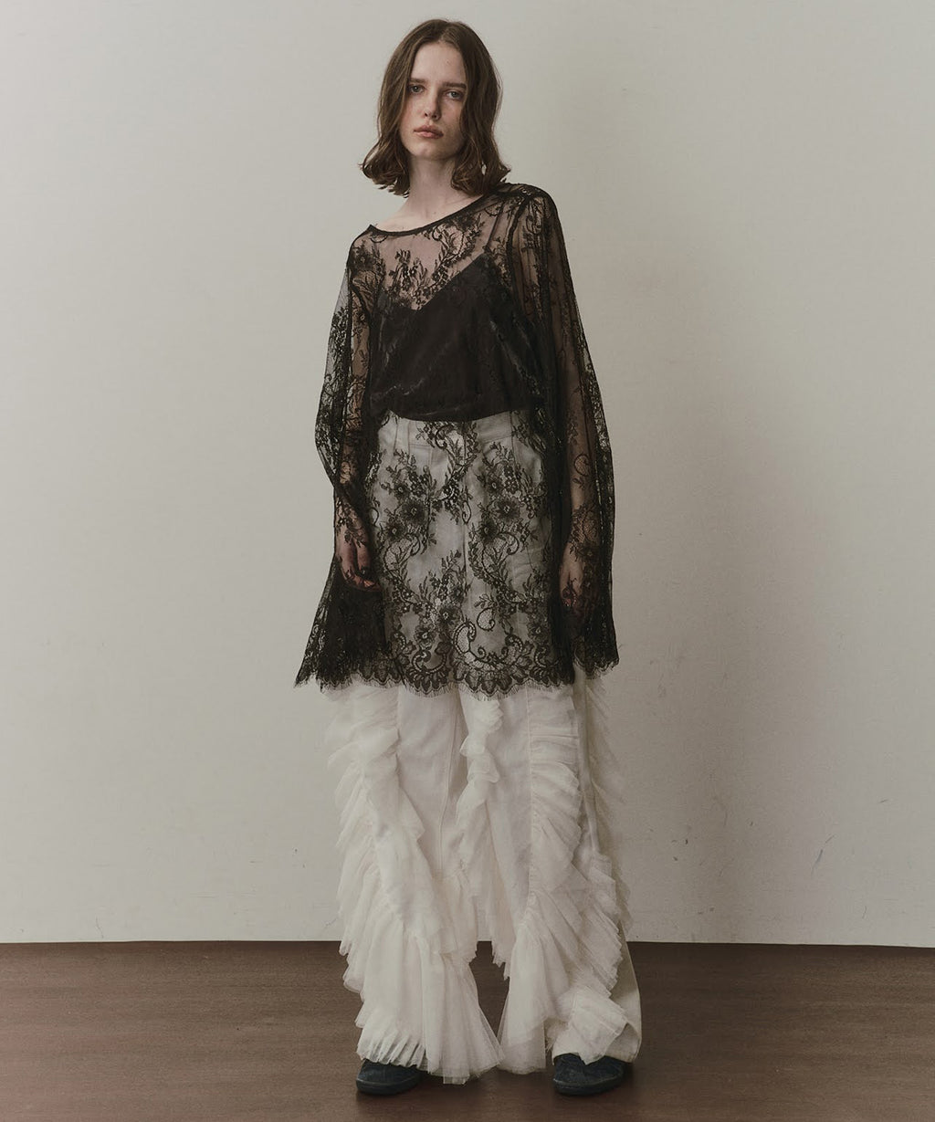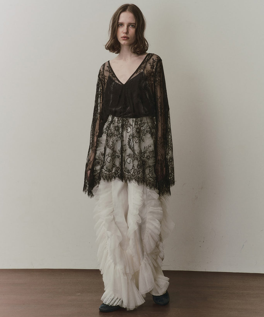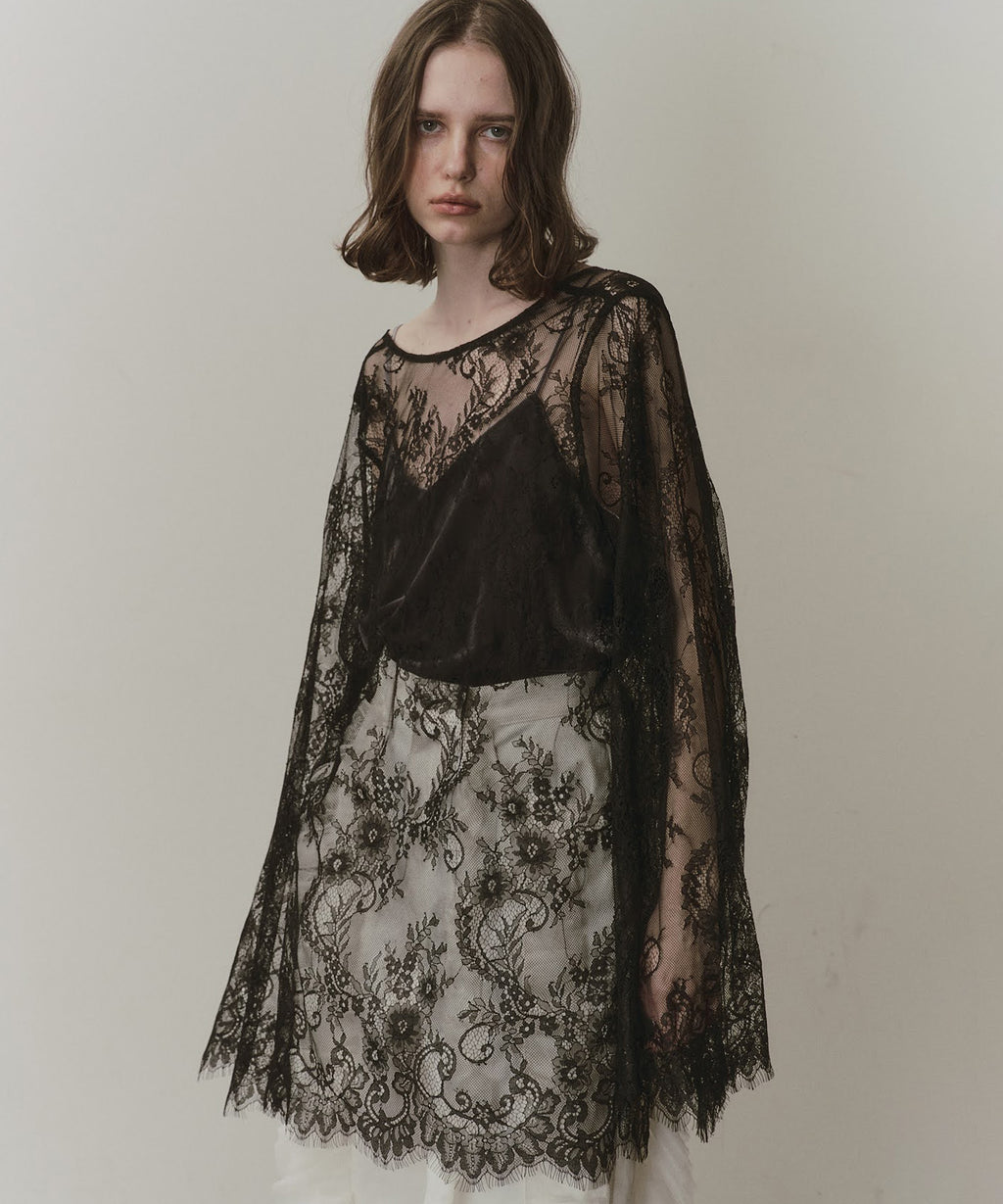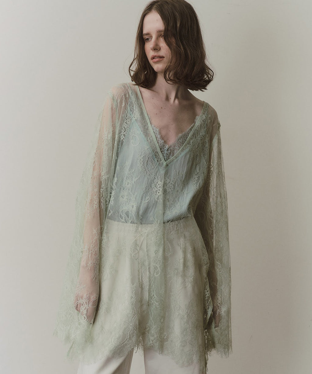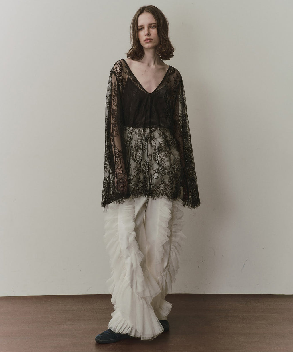 レイヤースタイルにかかせないエアリーなレースブラウス。