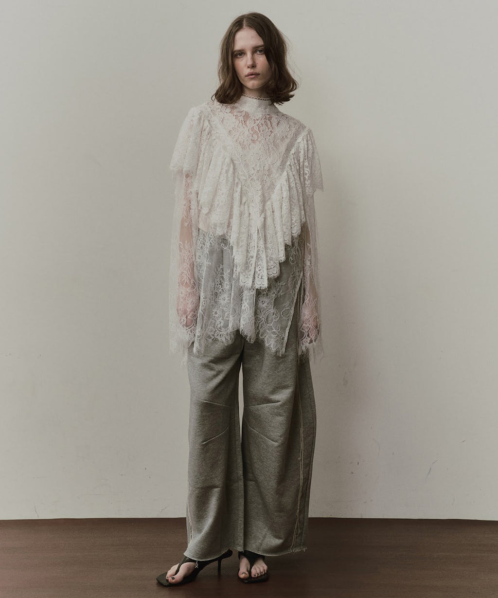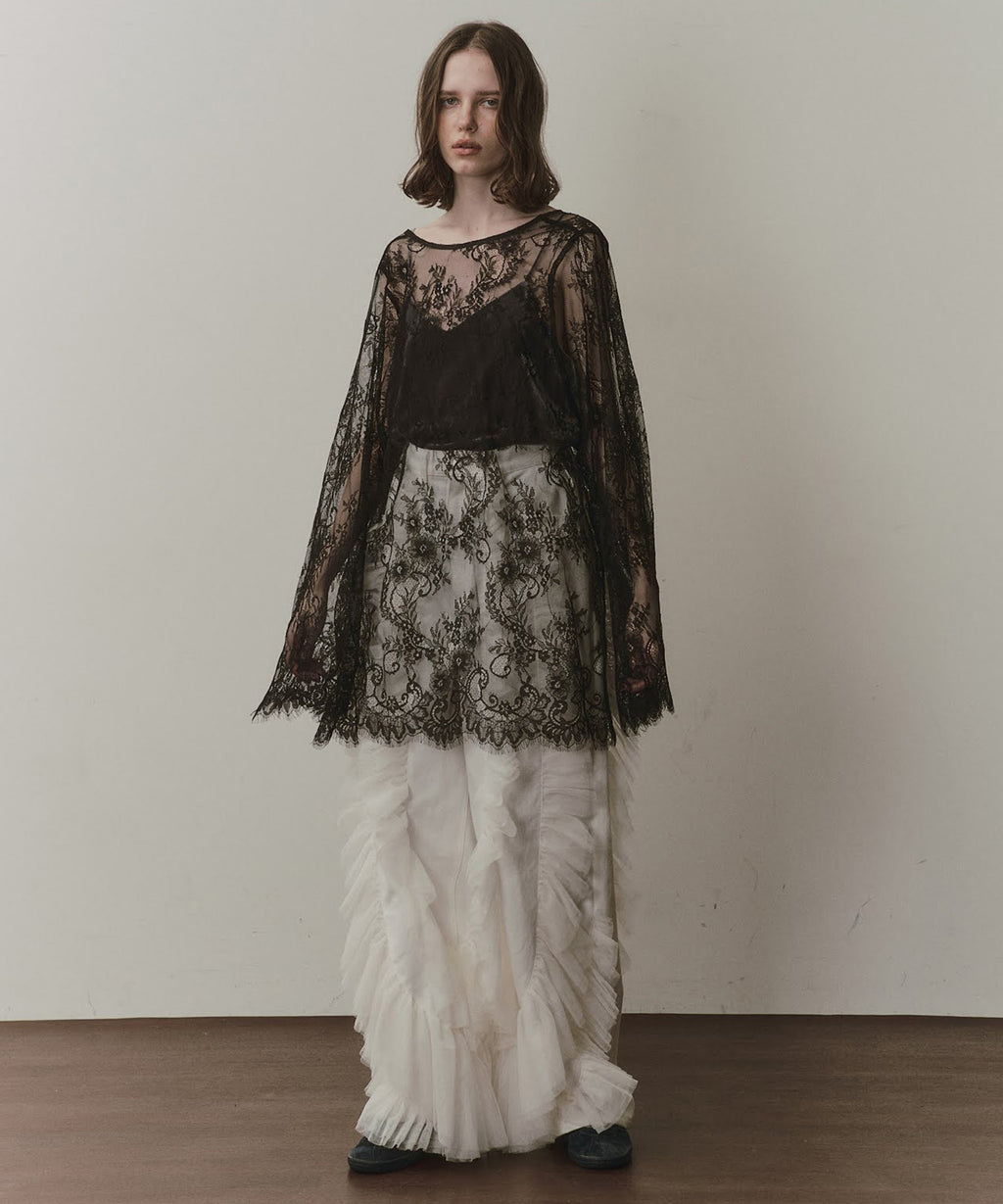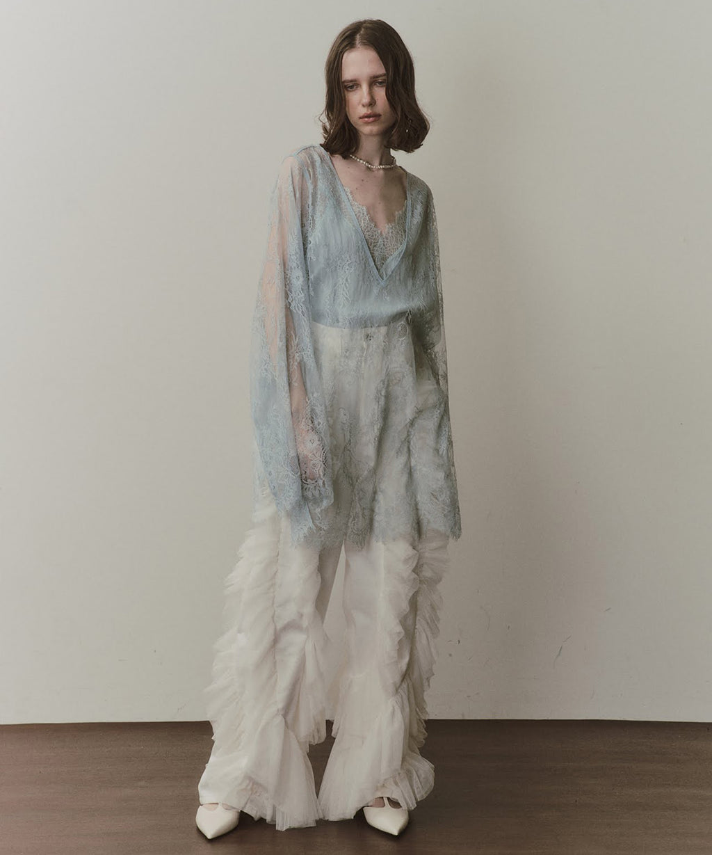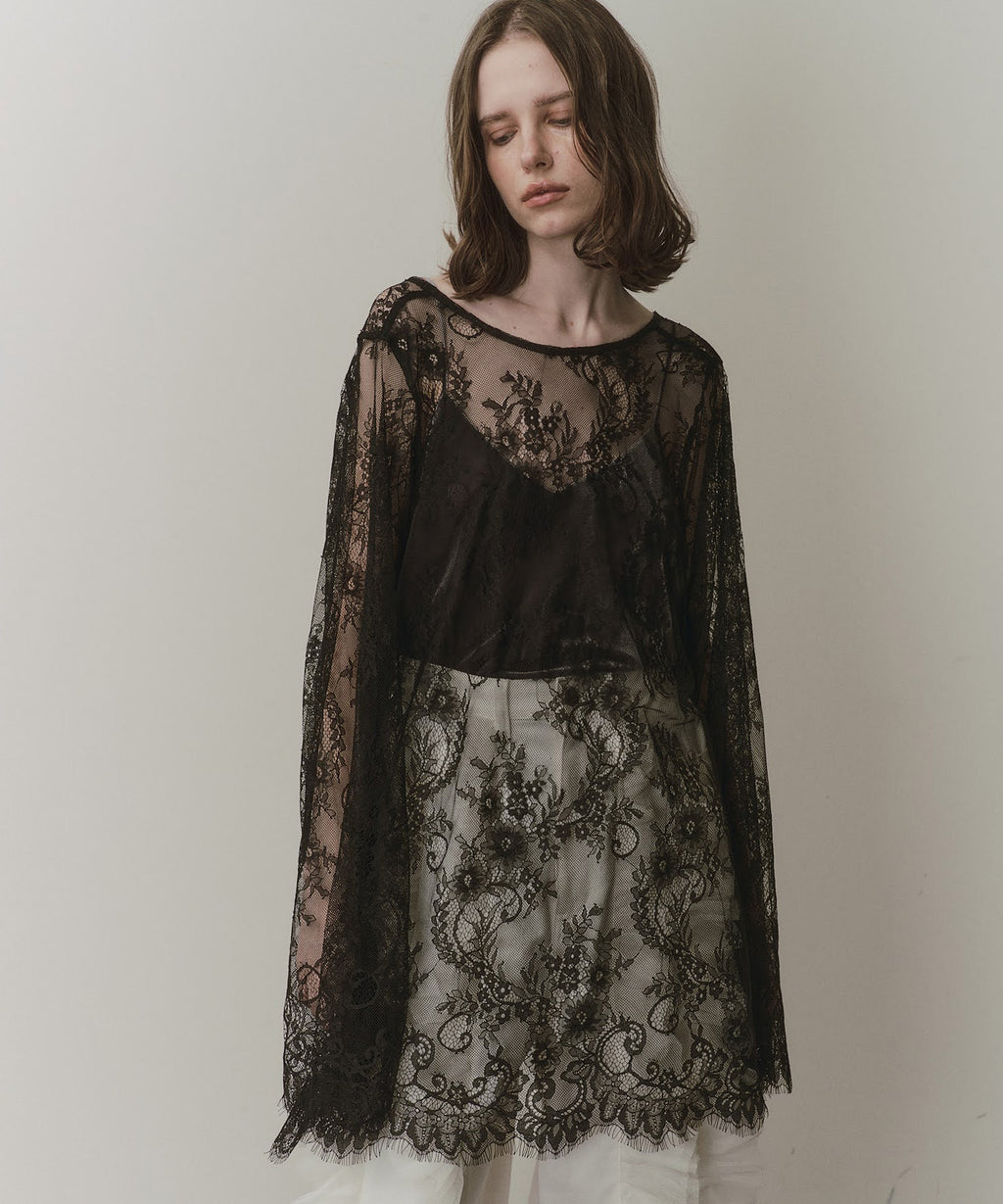 レイヤースタイルにかかせないエアリーなレースブラウス。
