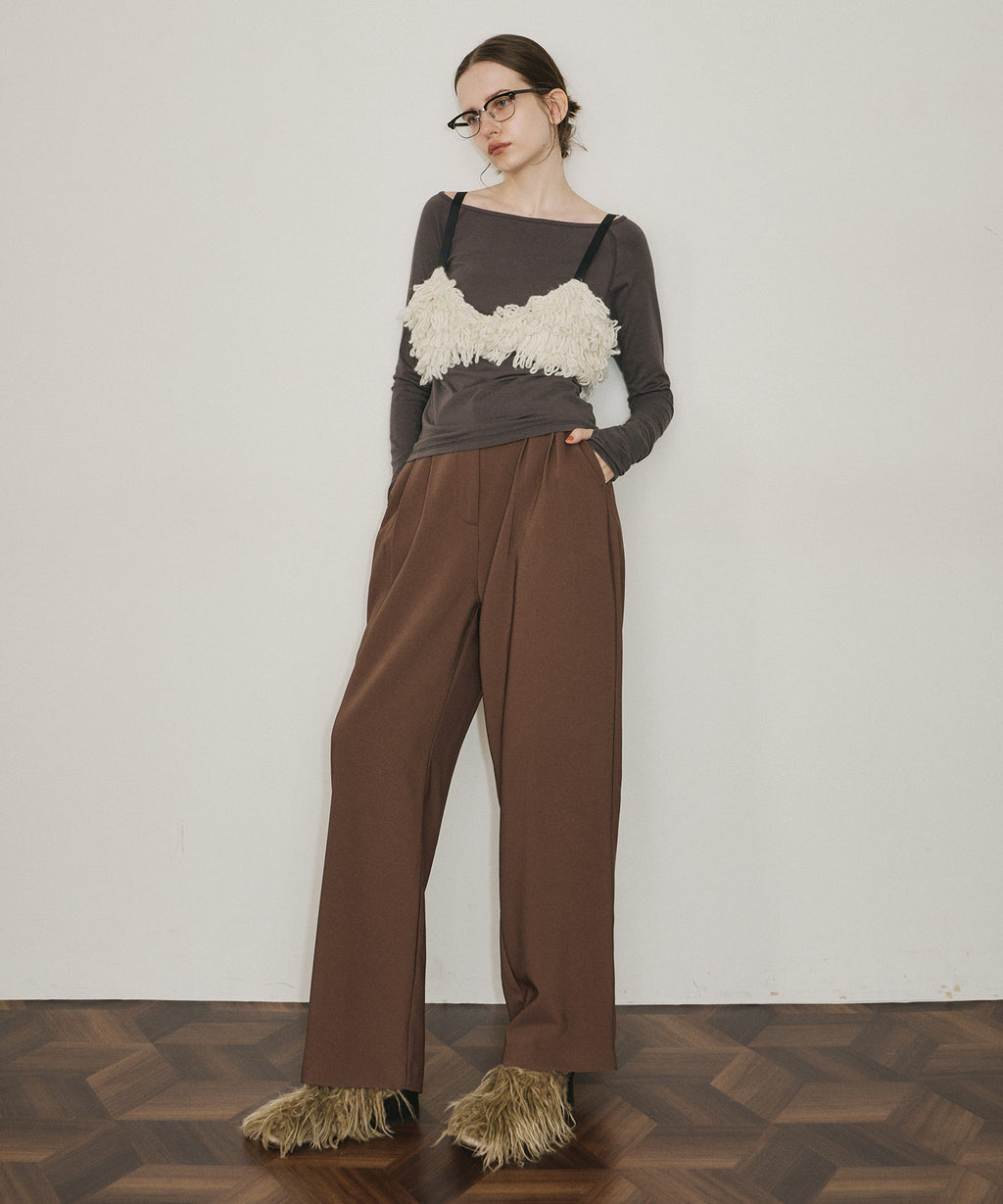 シンプルなトップスやワンピースとのスタイリングがおすすめ。