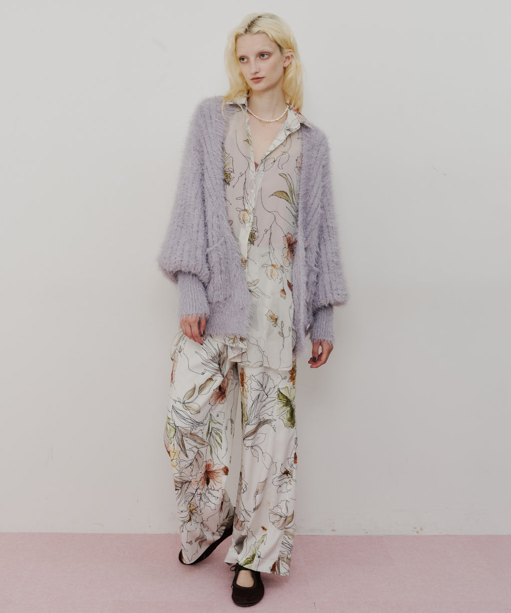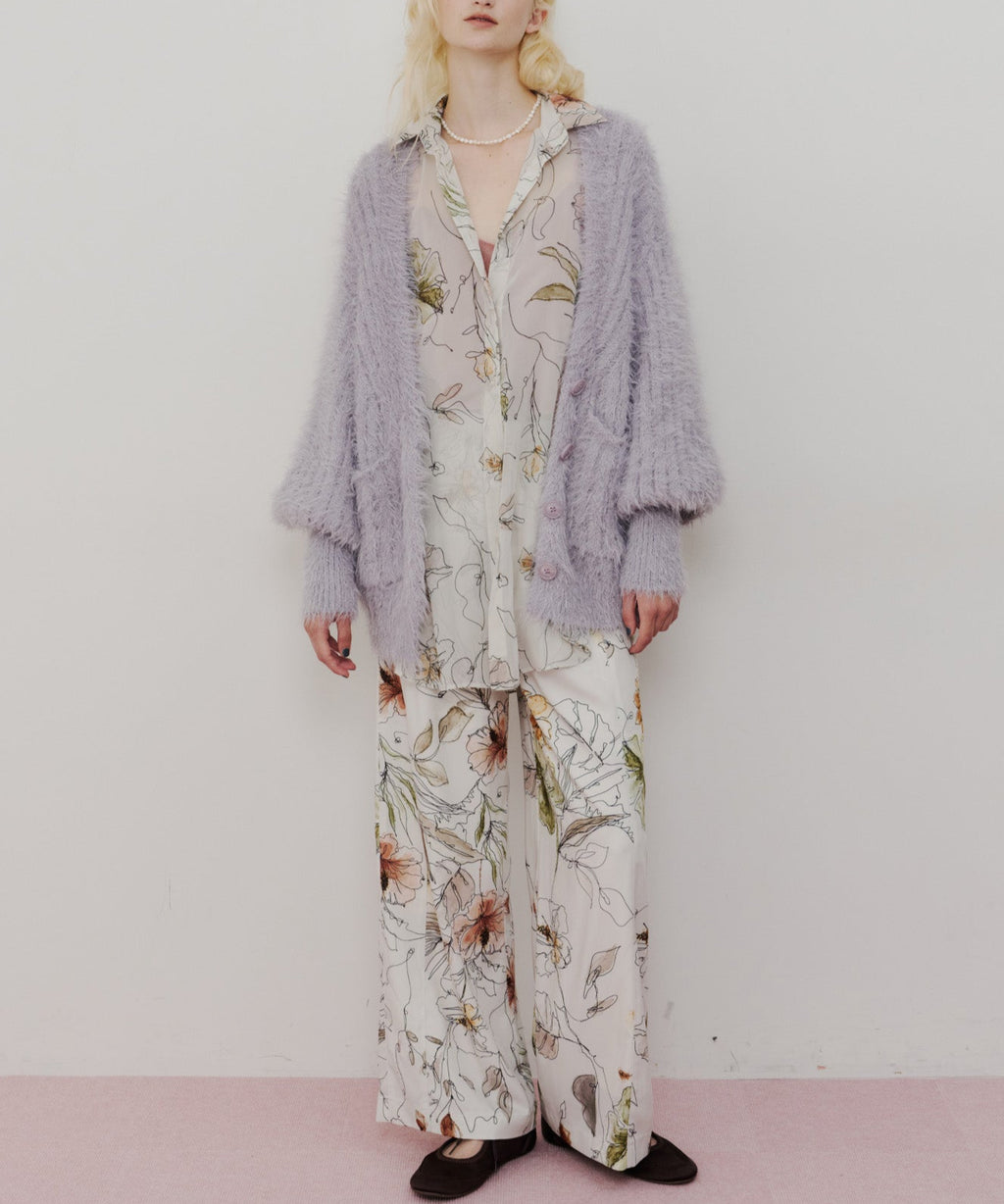 透け感のない柔らかな素材に、vintage感のある花柄と色の置き方を